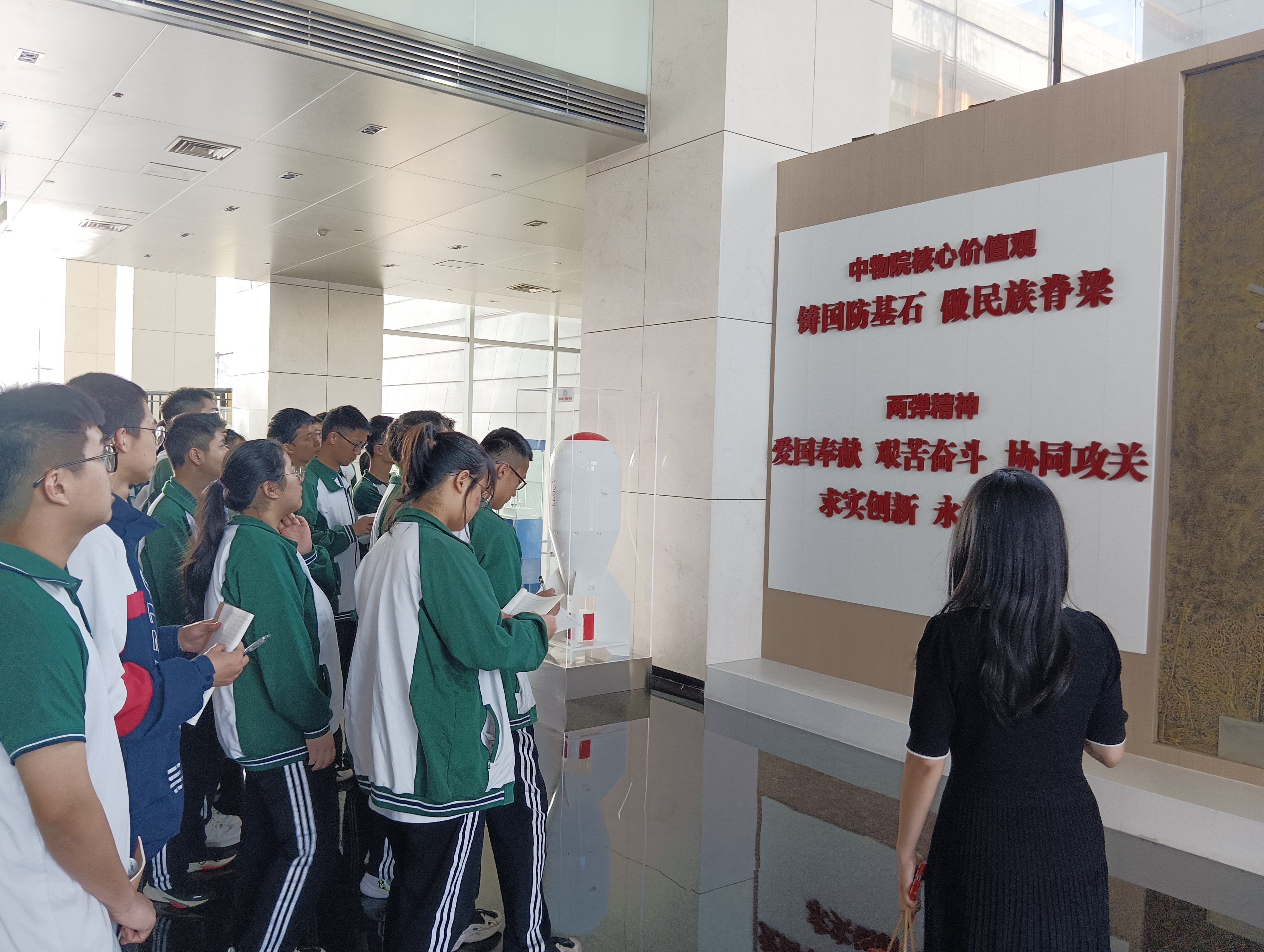 接著,同學(xué)們前往園區(qū)科技成果展廳,了解銀河596科技園的規(guī)劃、建設(shè)和發(fā)展歷程,同時(shí)近距離感受中物院尖端科技創(chuàng)新成果,深入感悟“愛國奉獻(xiàn)、艱苦奮斗、協(xié)同攻關(guān)、求實(shí)創(chuàng)新、永攀高峰”的兩彈精神。