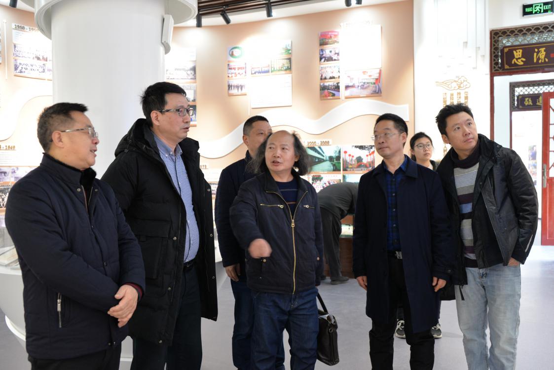 龍清明校長(zhǎng)帶領(lǐng)藝術(shù)家們參觀校史陳列館