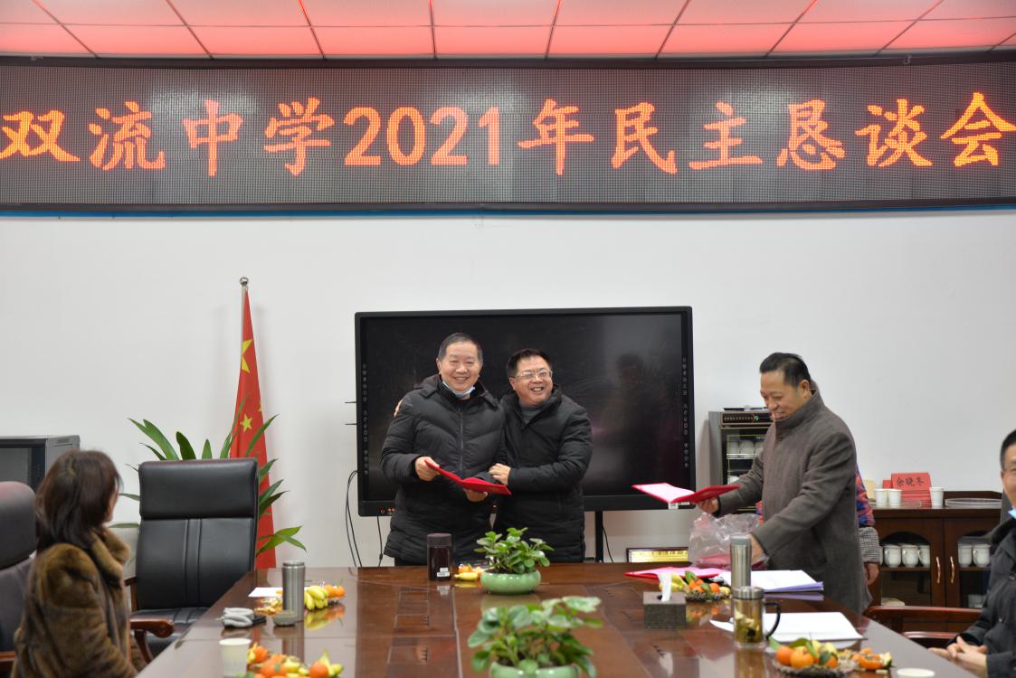 2021年1月13日星期三下午三點(diǎn),雙流中學(xué)于科技樓107會(huì)議室召開(kāi)了2021年民主懇談暨退休教職工慰問(wèn)會(huì)議。雙流中學(xué)總書(shū)記龍清明、副書(shū)記向發(fā)友、工會(huì)主席田明建等領(lǐng)導(dǎo)出席會(huì)議。