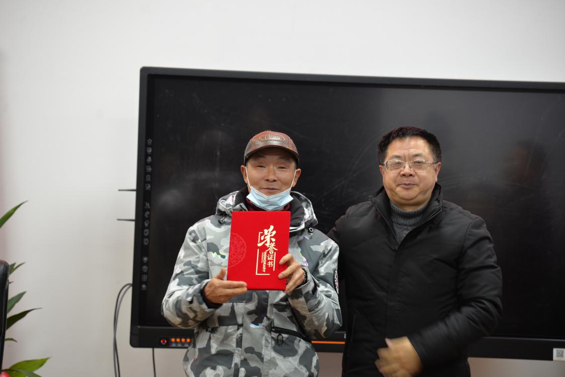 龍清明校長(zhǎng)給退休教師鄧忠濟(jì)頒發(fā)榮譽(yù)證書(shū)
