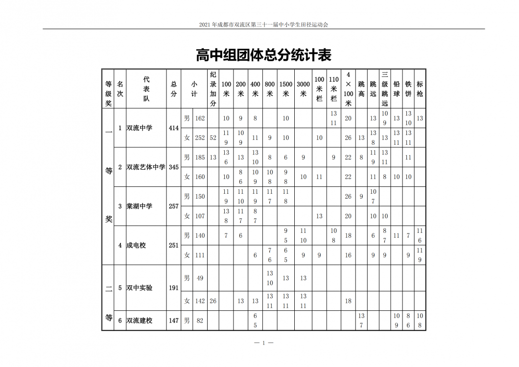2021年4月29日、30日雙流區(qū)第三十一屆中小學田徑運動會在雙流中學舉行。雙中田徑四破紀錄拿冠軍