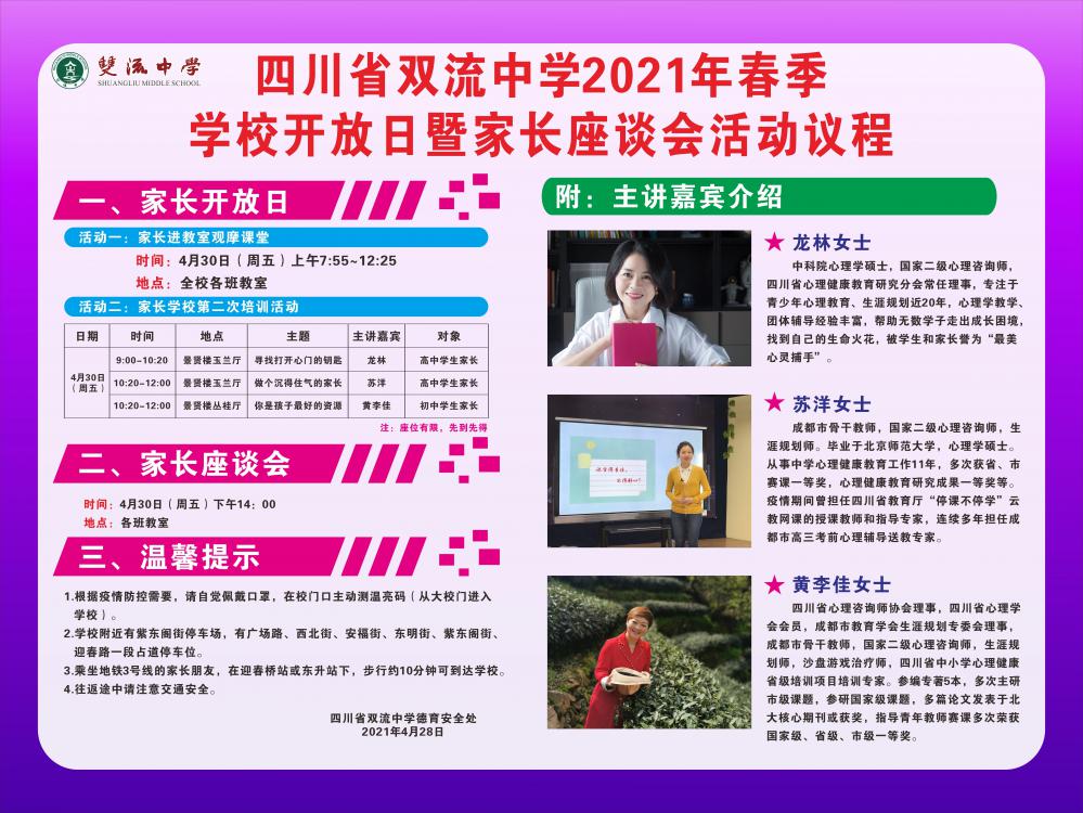雙流中學(xué)2021年春季學(xué)校開(kāi)放日議程