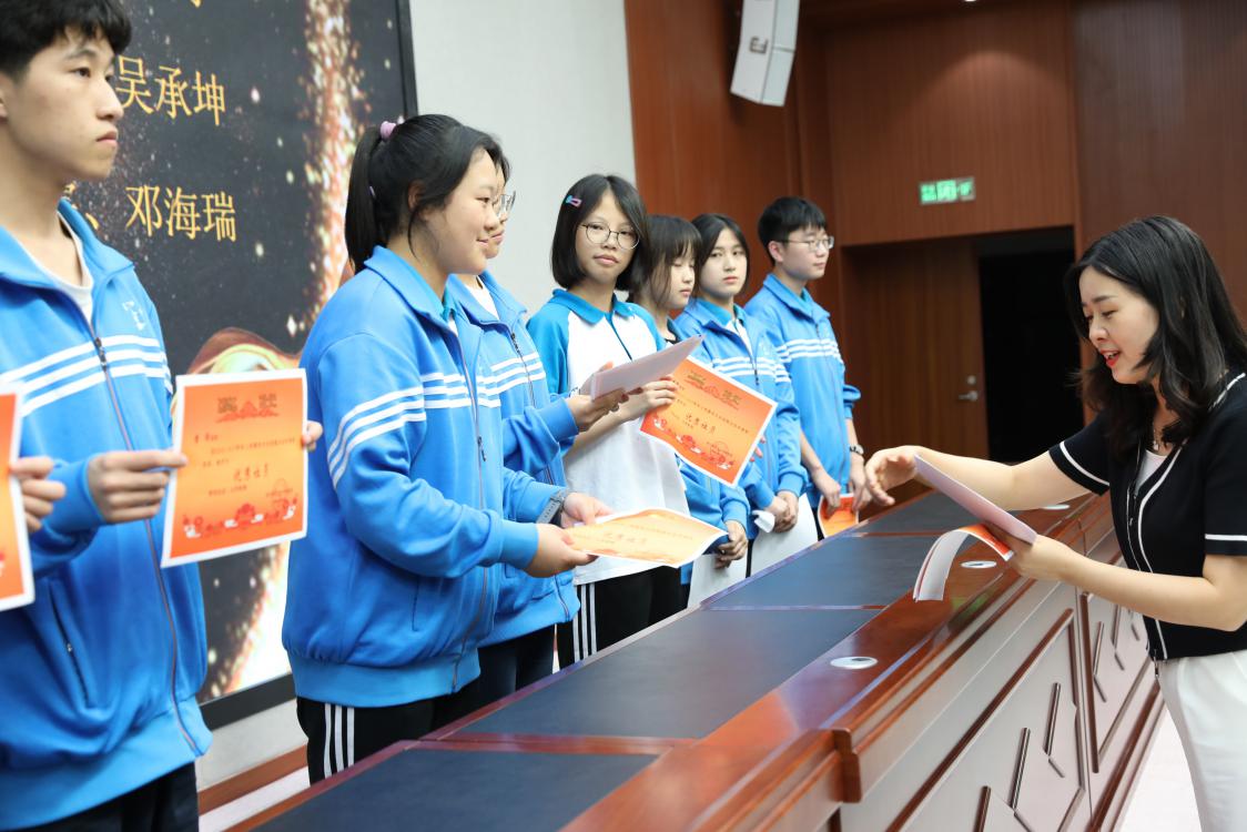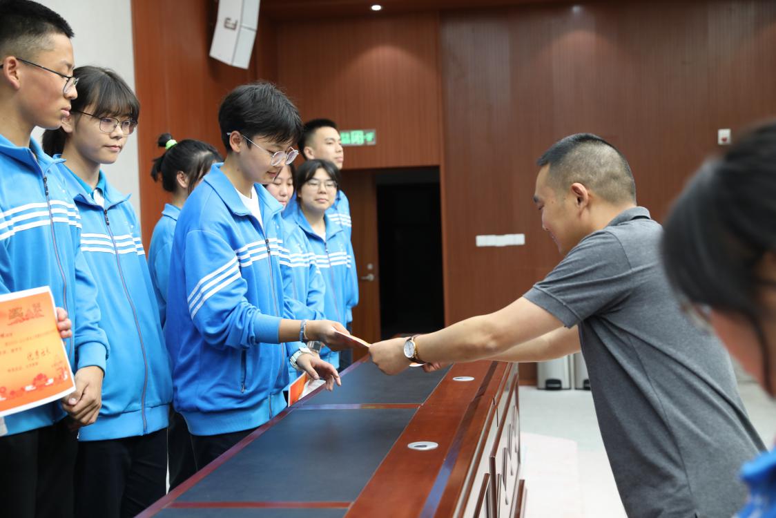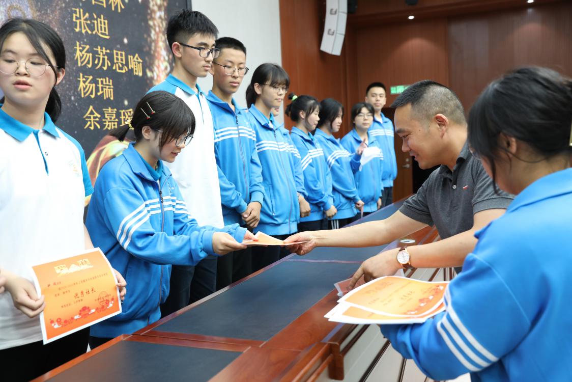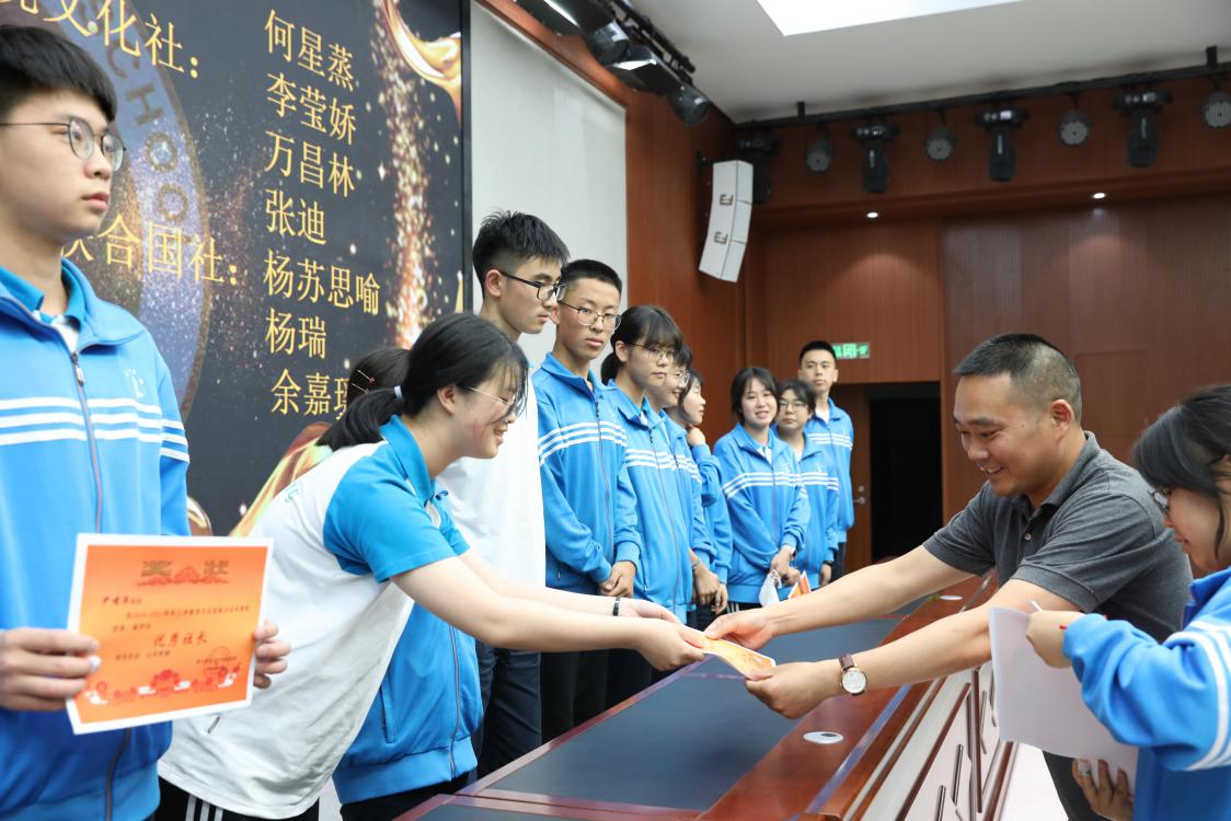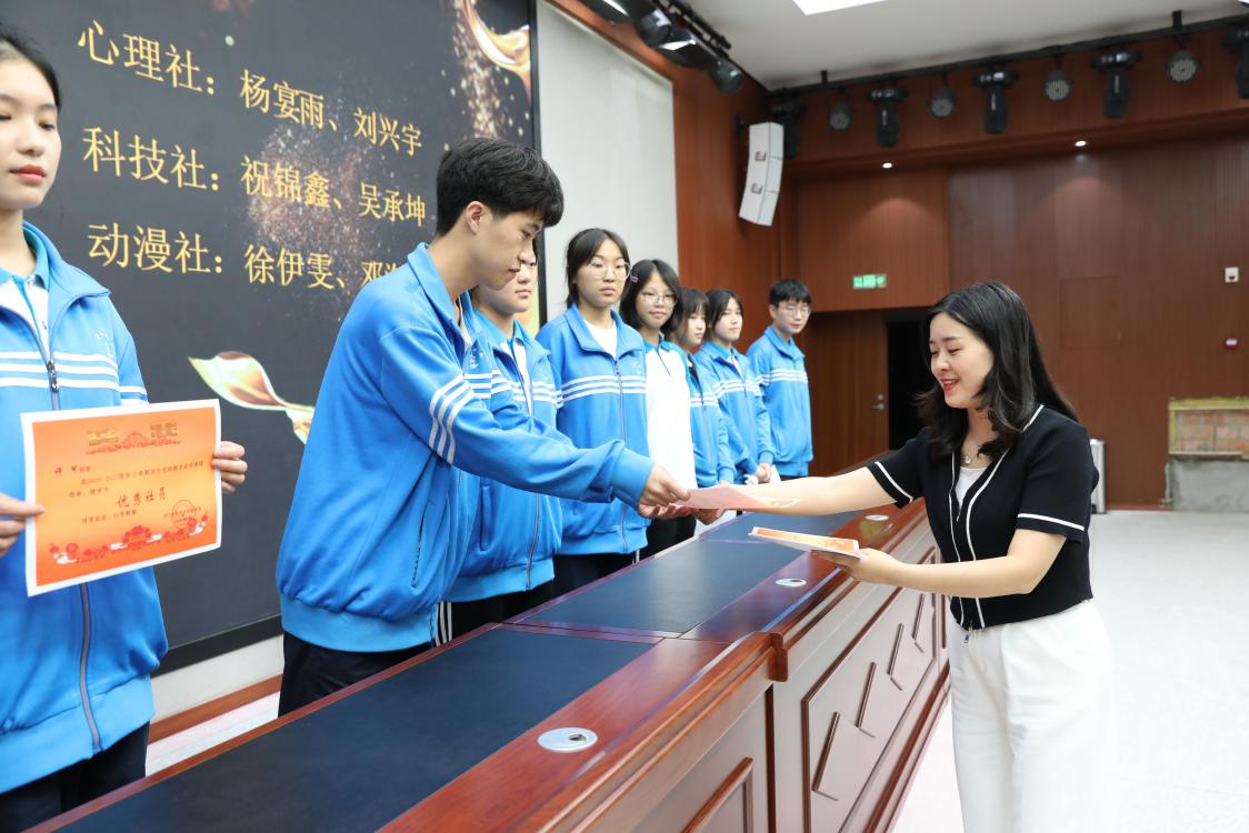 德育處副主任邱國界老師為優(yōu)秀社長頒獎