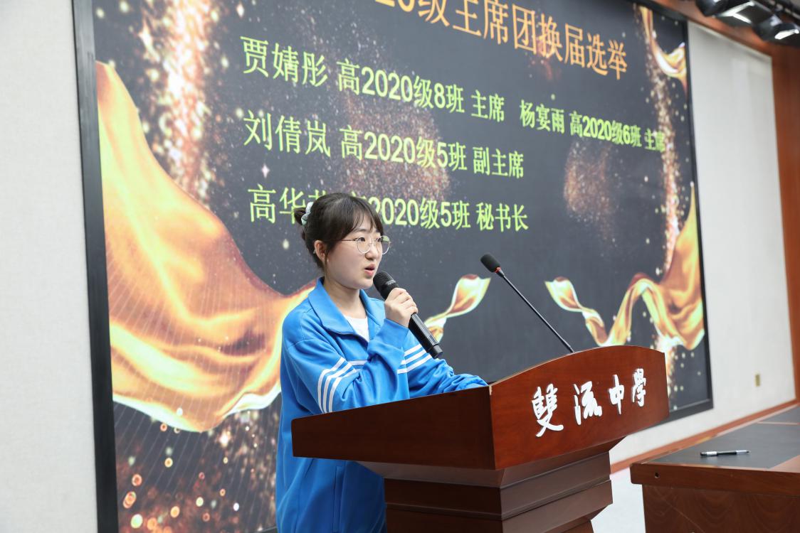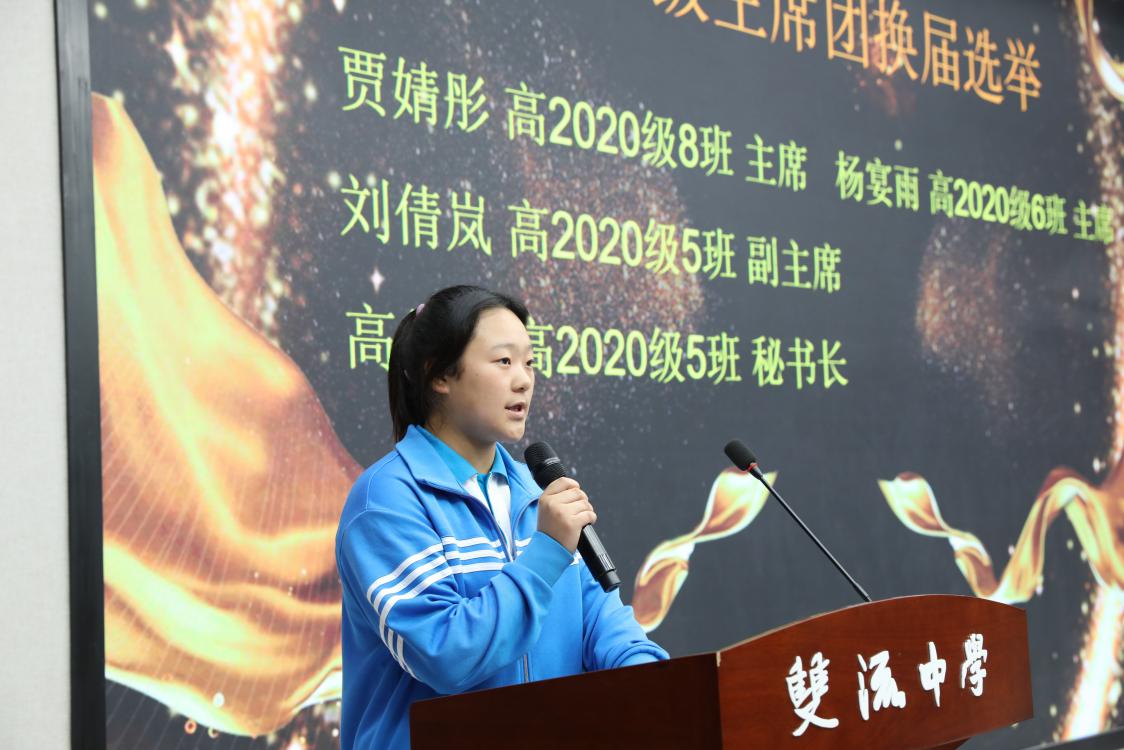 高2020級8班的賈婧彤發(fā)表競選演講