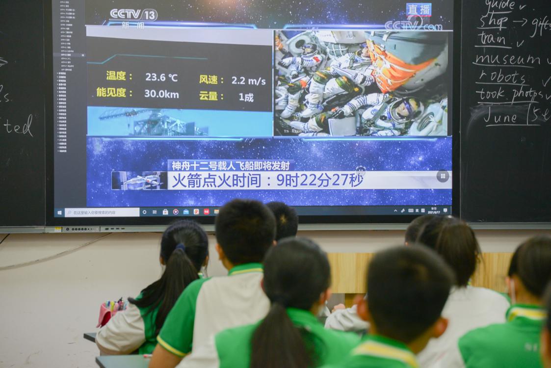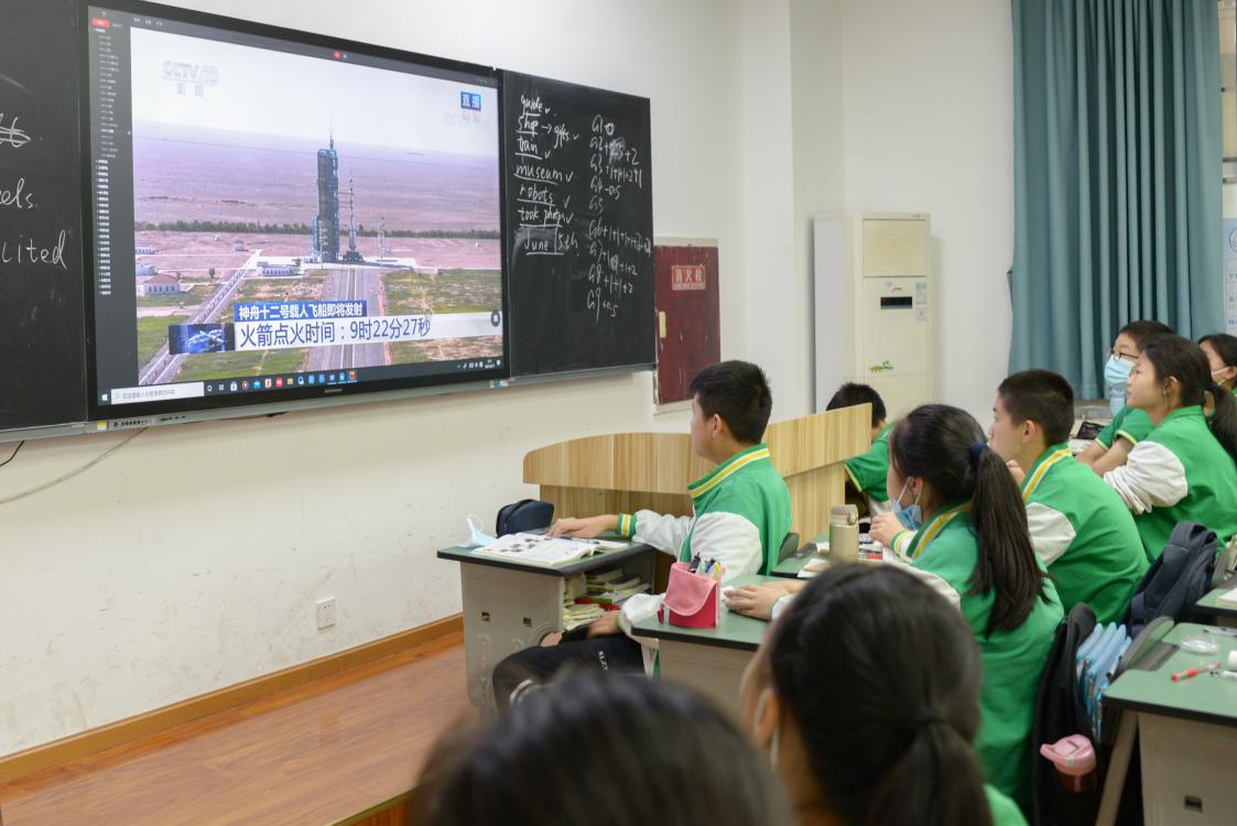 同學(xué)們觀看神舟十二號載人飛船發(fā)射直播