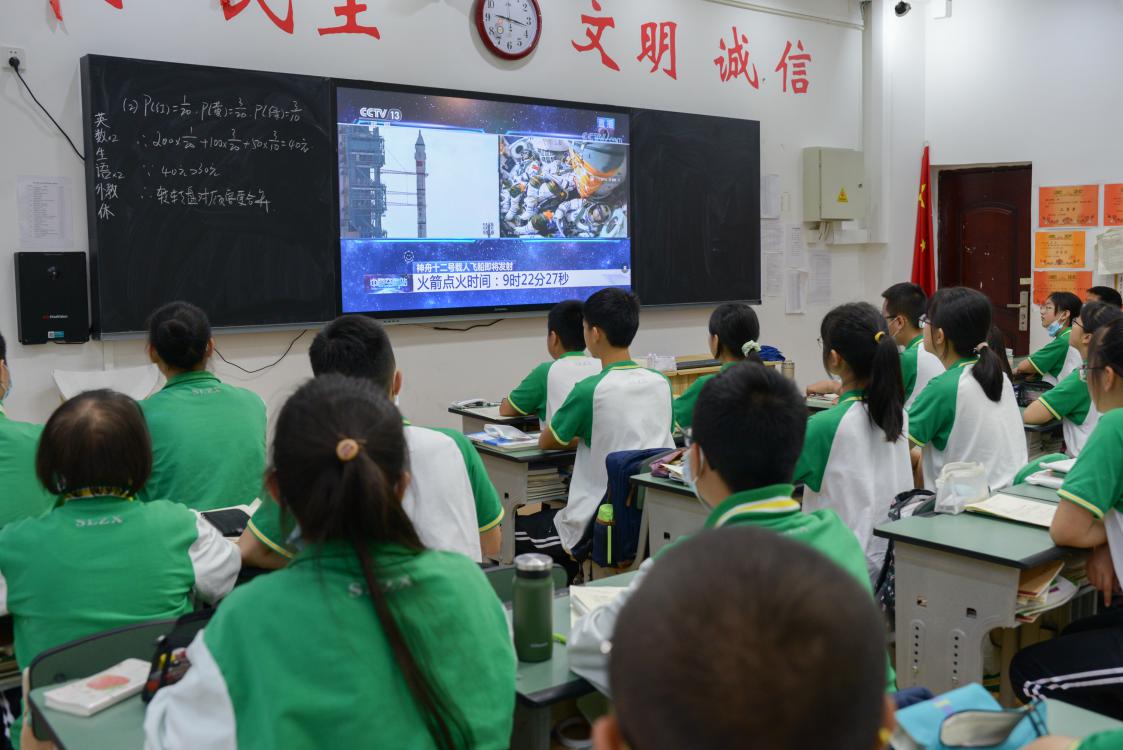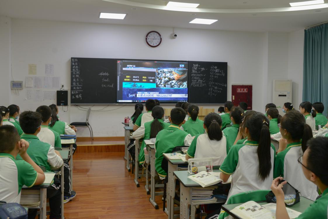 雙流中學(xué)初中同學(xué)觀看神舟十二號載人飛船發(fā)射直播