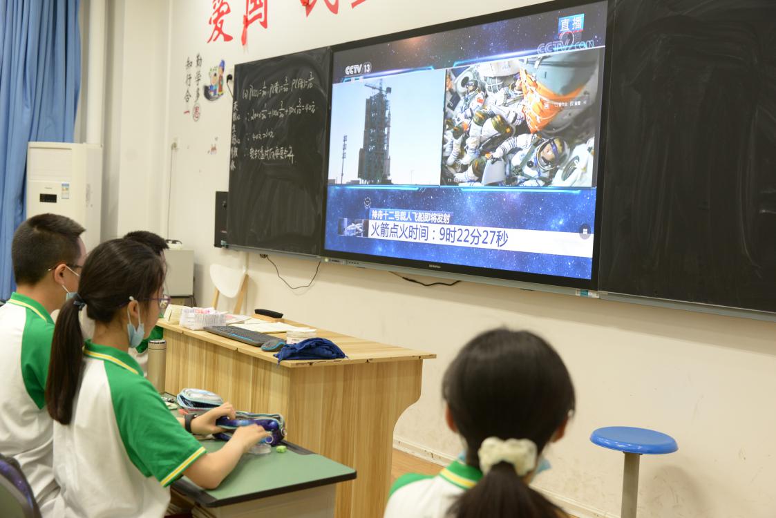 2021年6月17日上午,雙流中學(xué)組織全校同學(xué)在教室觀看神舟十二號載人飛船發(fā)射直播