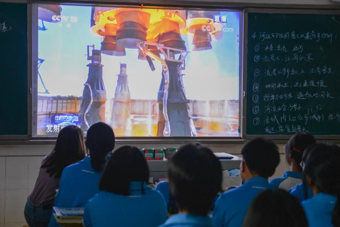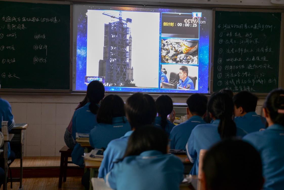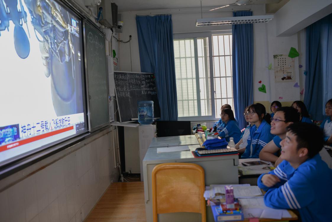 雙流中學(xué)高中同學(xué)觀看神舟十二號載人飛船發(fā)射直播
