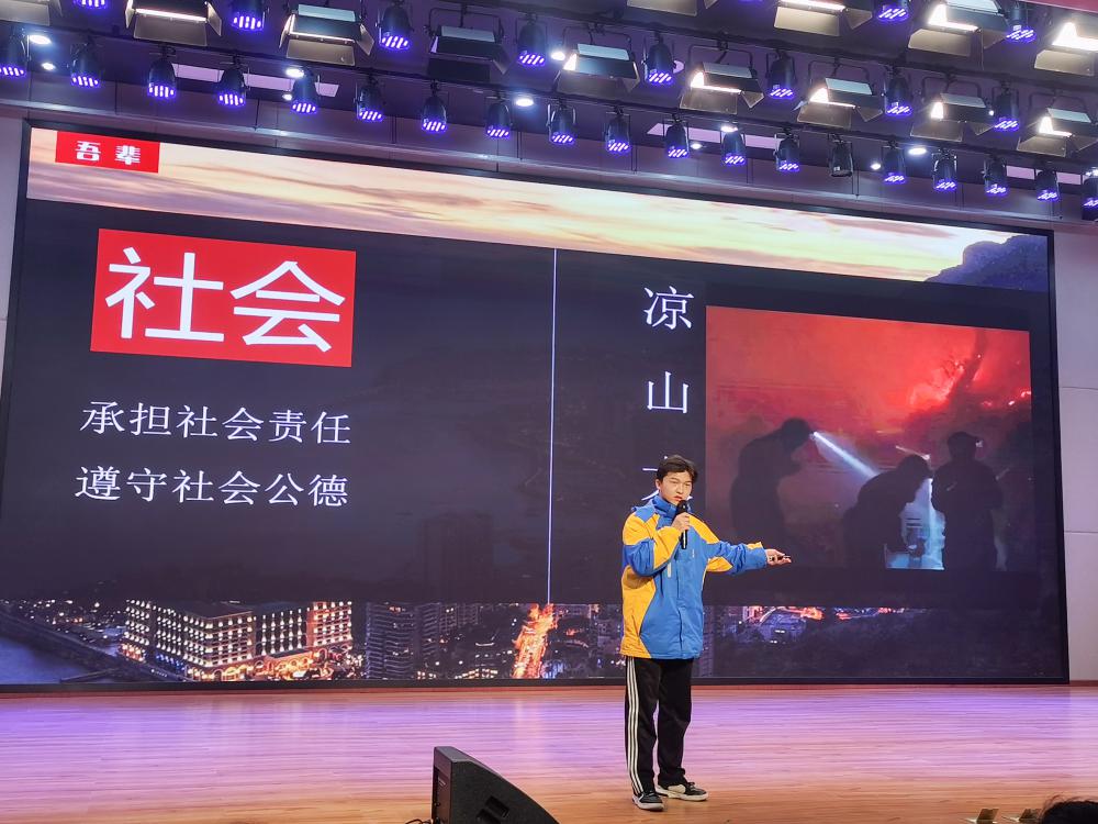 2021年11月23日晚18點(diǎn),雙流中學(xué)初中部在玉蘭廳開展了綜評(píng)引領(lǐng)示范展示活動(dòng)(圖為高一12班鄧鑫:奮斗)