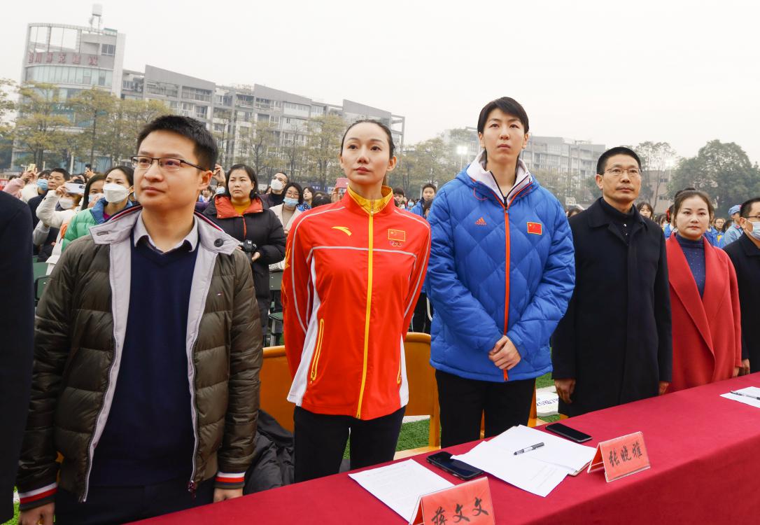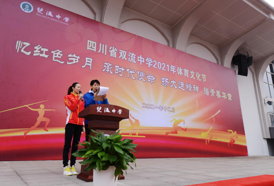 圖14 兩位世界冠軍一起宣布雙流中學(xué)2021年體育文化節(jié)正式開幕