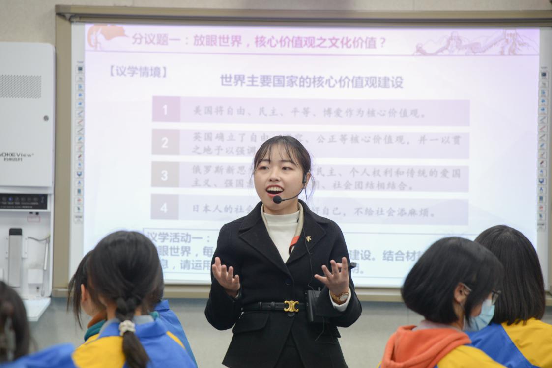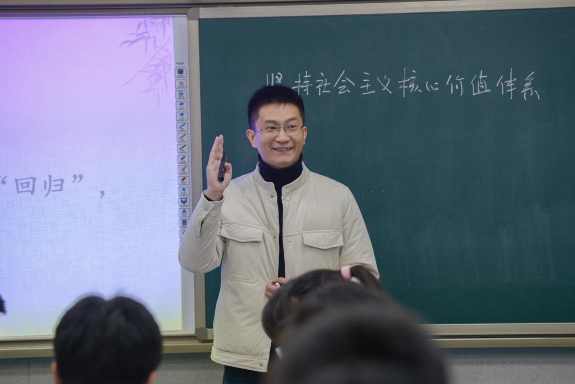 由成都市教育科學(xué)院主辦、雙流區(qū)教育科學(xué)院和四川省雙流中學(xué)承辦的聚焦“雙新”暨2021年度成都市高中思想政治優(yōu)質(zhì)課展評(píng)活動(dòng)于12月15日在四川省雙流中學(xué)成功舉行。(圖為樹德中學(xué)王寅老師授課)