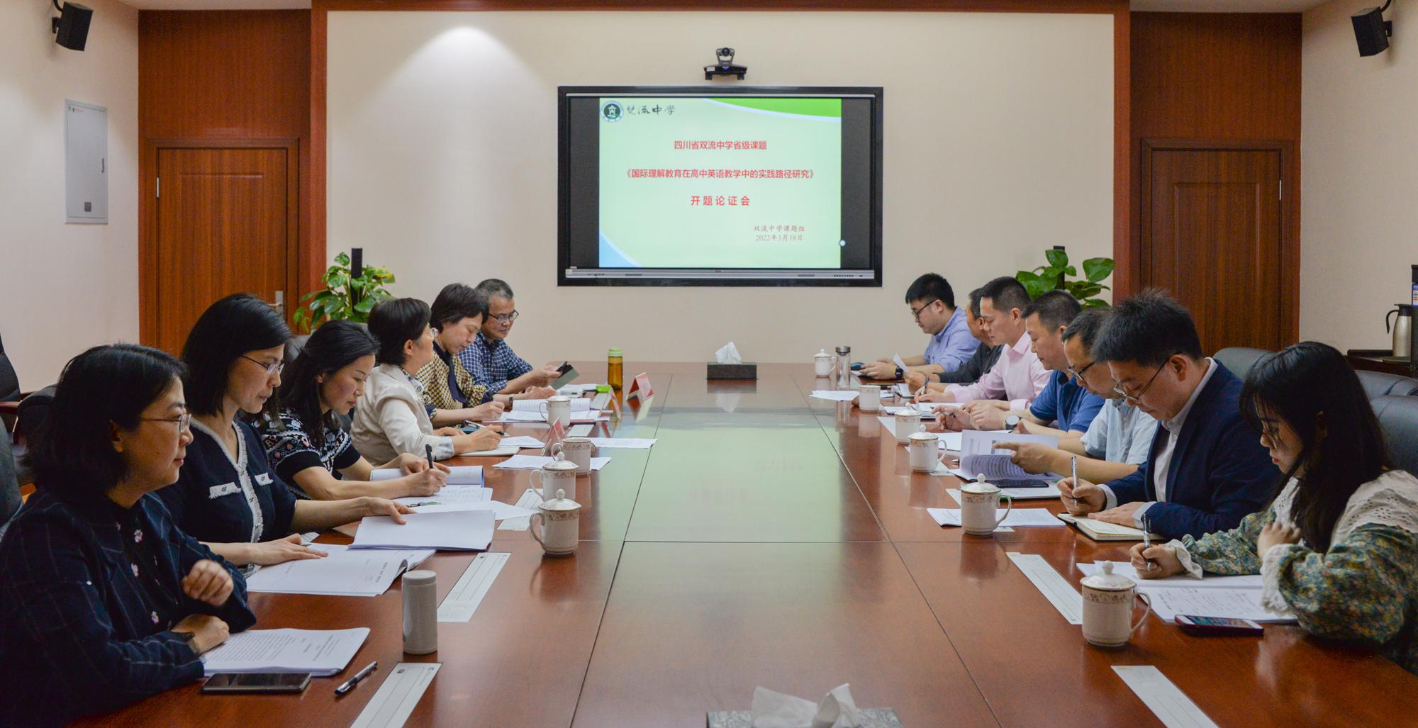 022年3月18日上午,課題組在雙流中學(xué)景賢樓521會(huì)議室舉行了《國(guó)際理解教育在高中英語(yǔ)教學(xué)中的實(shí)踐路徑研究》開題論證會(huì)。(圖為:論證會(huì)考場(chǎng)圖片)