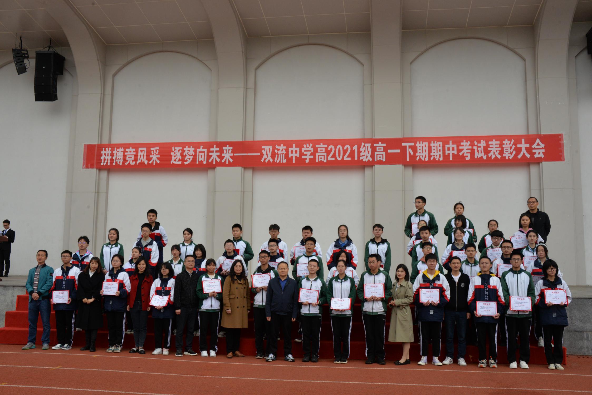 2022年4月16日上午,雙流中學(xué)高2021級(jí)在操場(chǎng)隆重舉行了“拼搏競(jìng)風(fēng)采,逐夢(mèng)向未來(lái)”主題表彰大會(huì)。副校長(zhǎng)徐天福、高一年級(jí)管理團(tuán)隊(duì)全體成員、科任老師和全體學(xué)生參加了本次表彰大會(huì)。