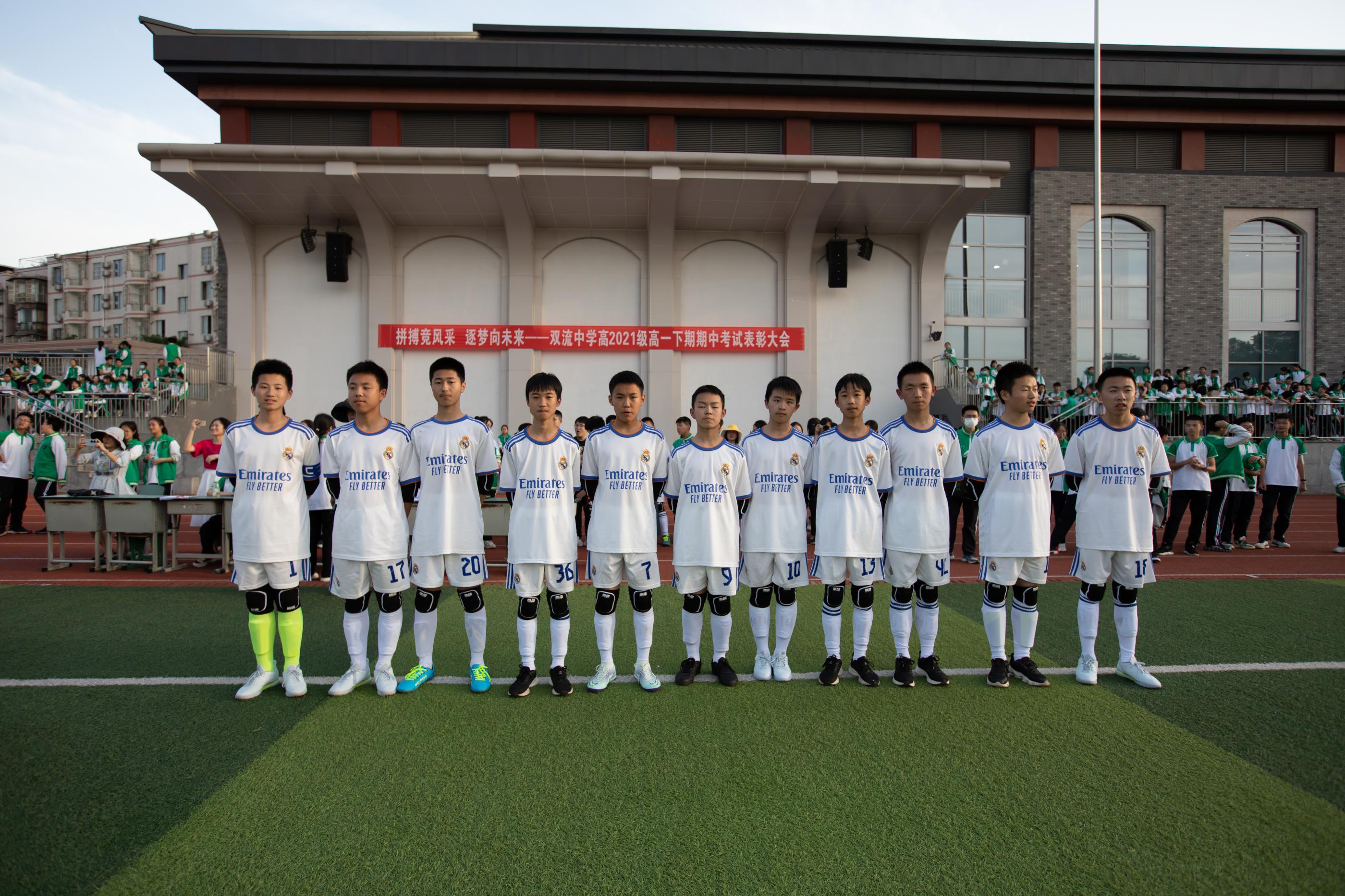 2022年4月28日,雙流中學(xué)舉行初中八年級足球聯(lián)第一場比賽。(圖為:八年級2班隊足球隊員)