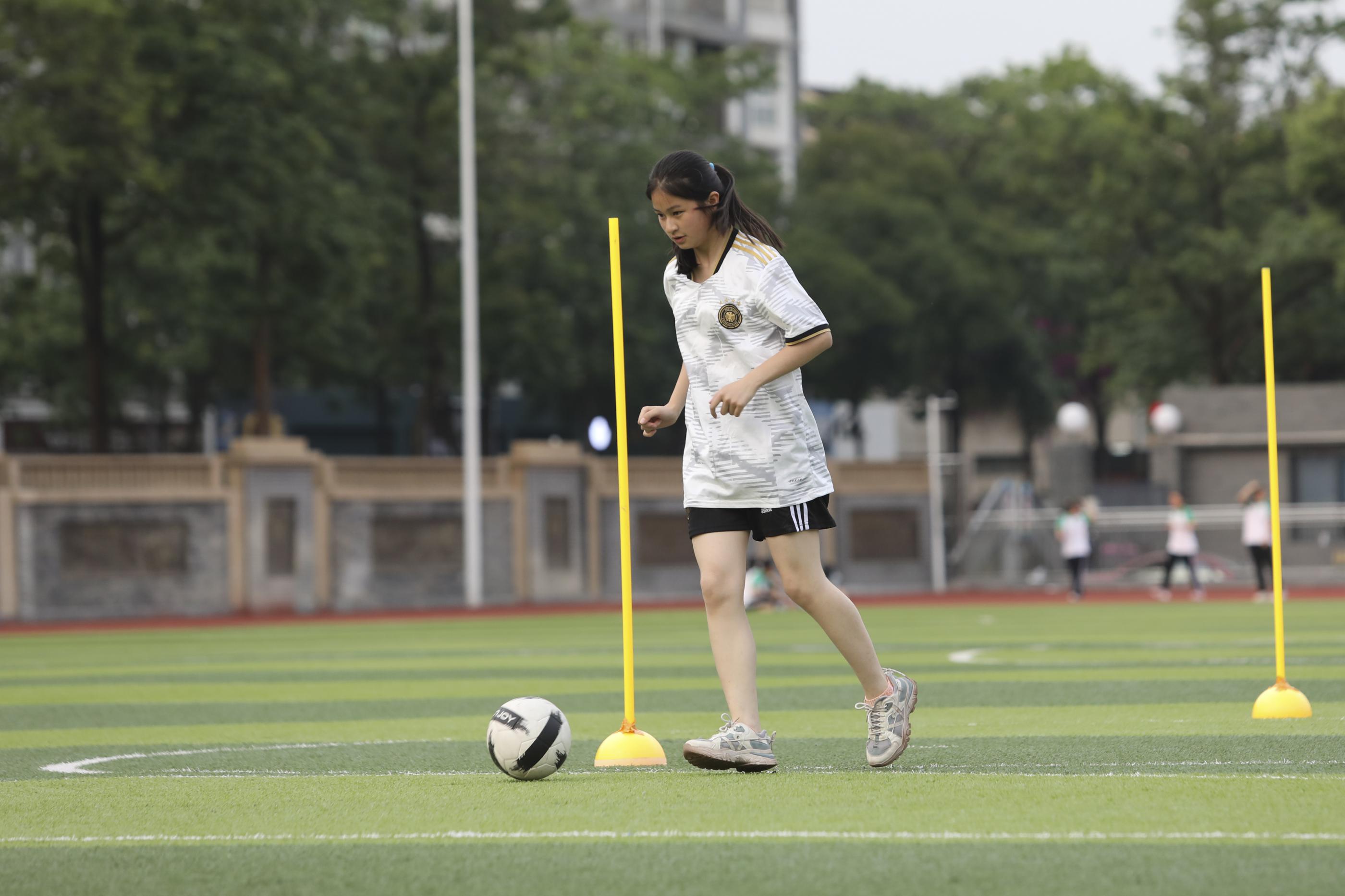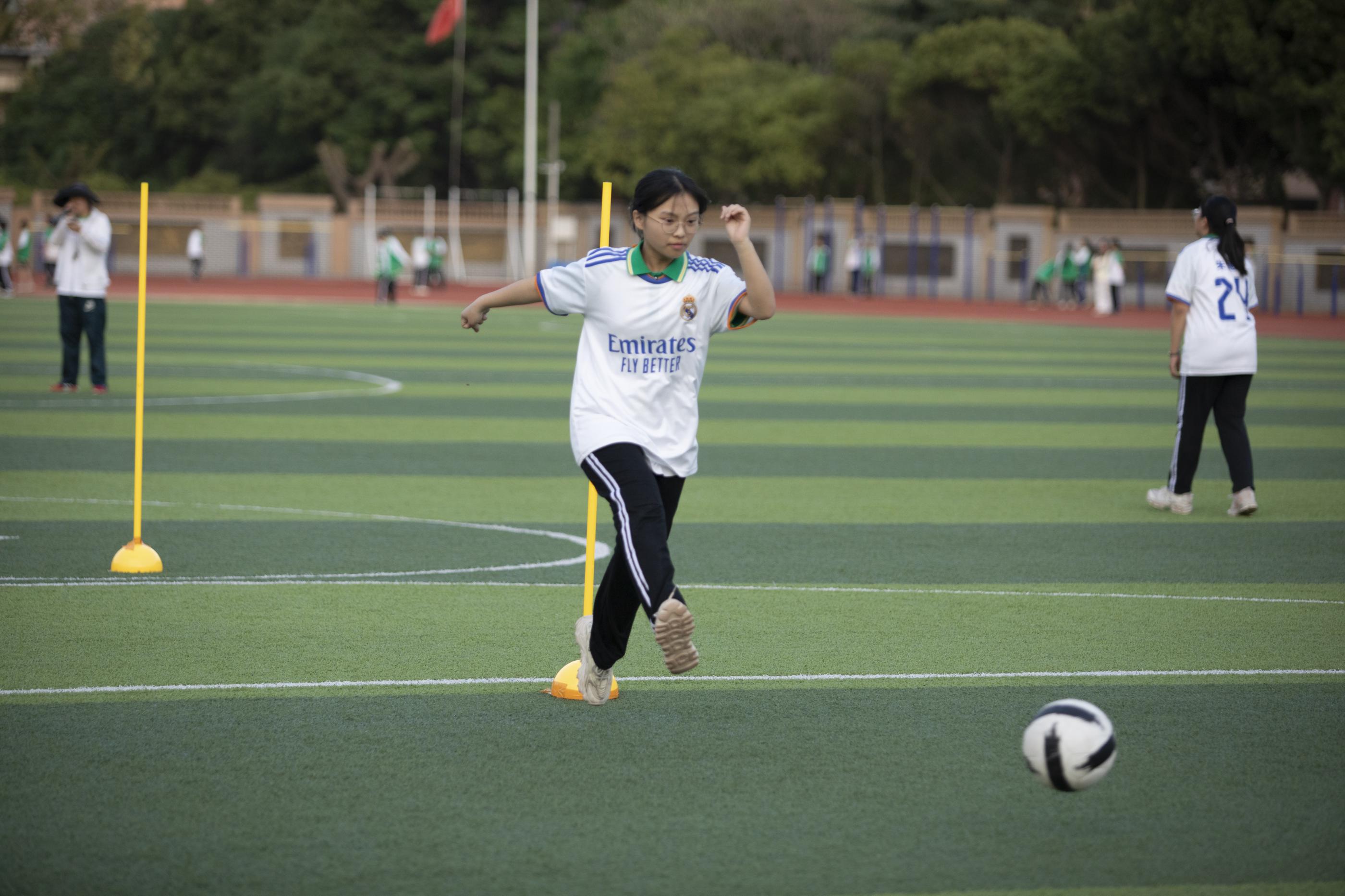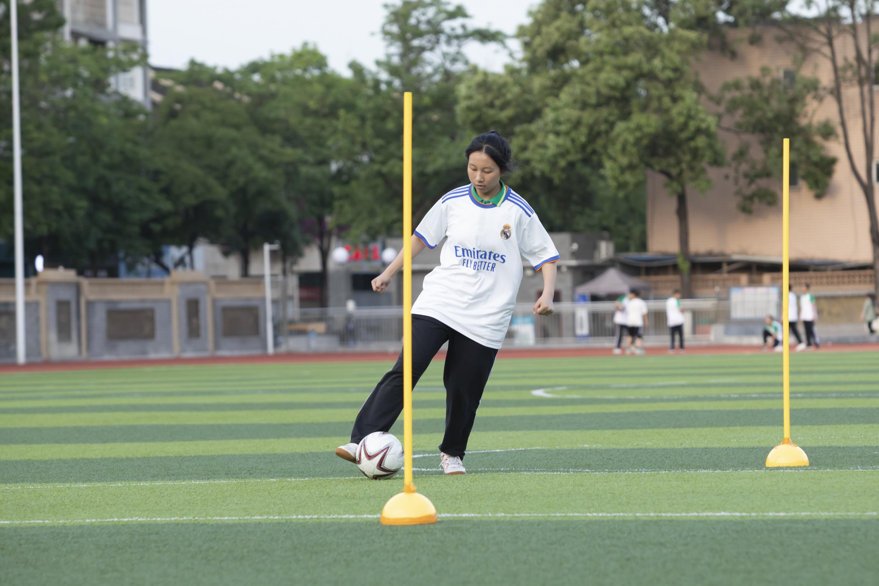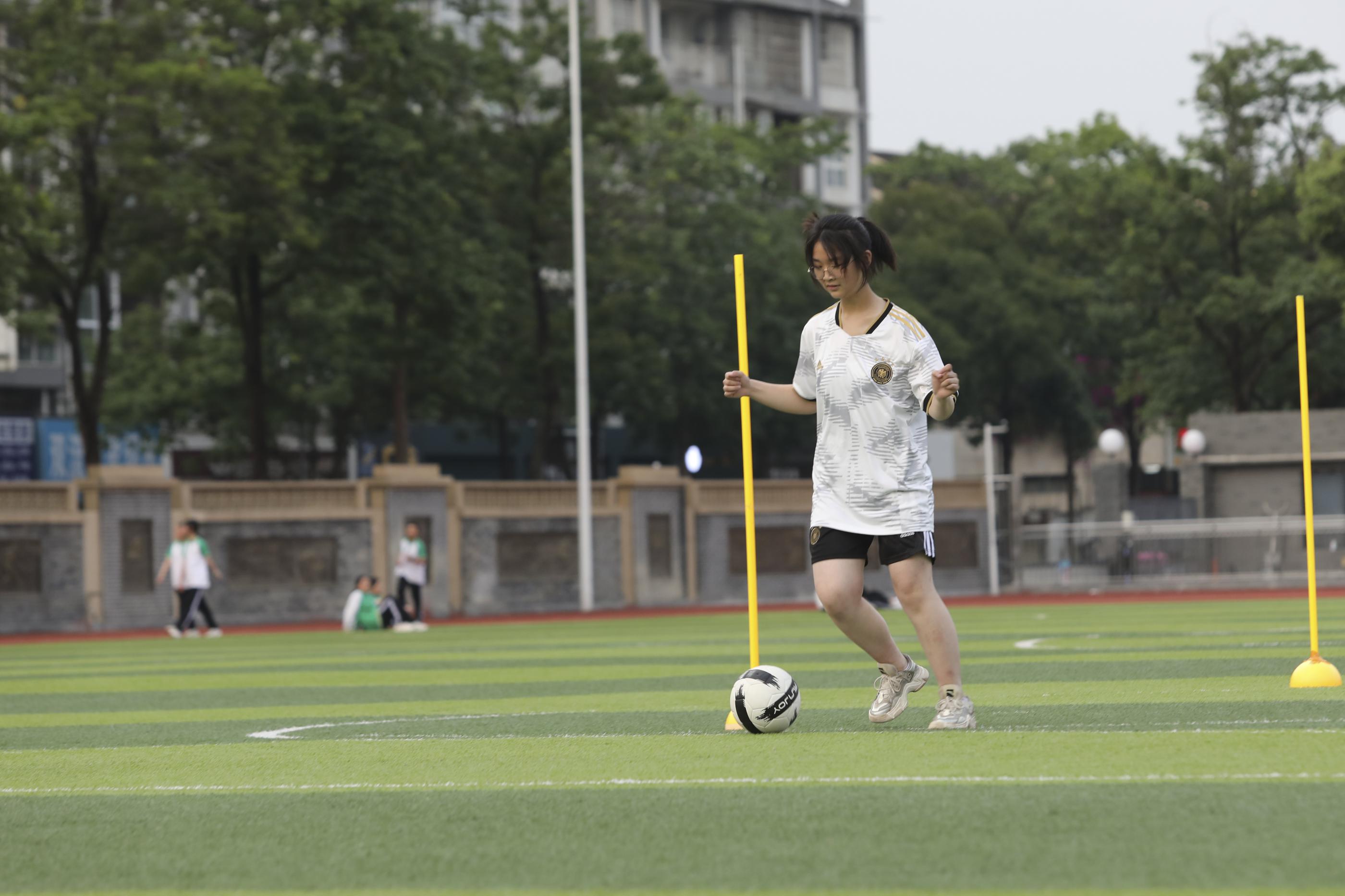 2021年5月11日,八年級(jí)3班女子足球隊(duì)員進(jìn)行繞桿射門比賽