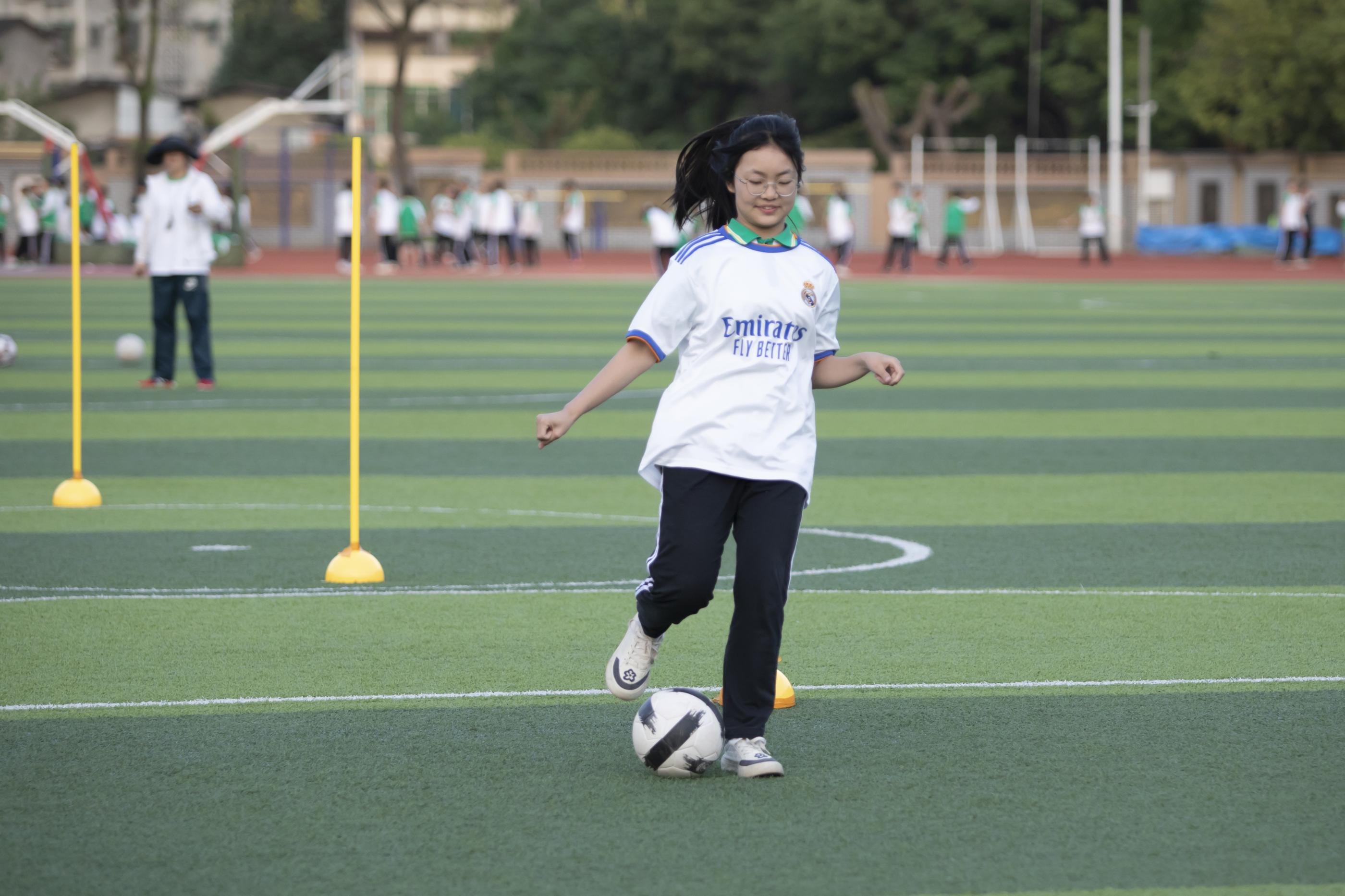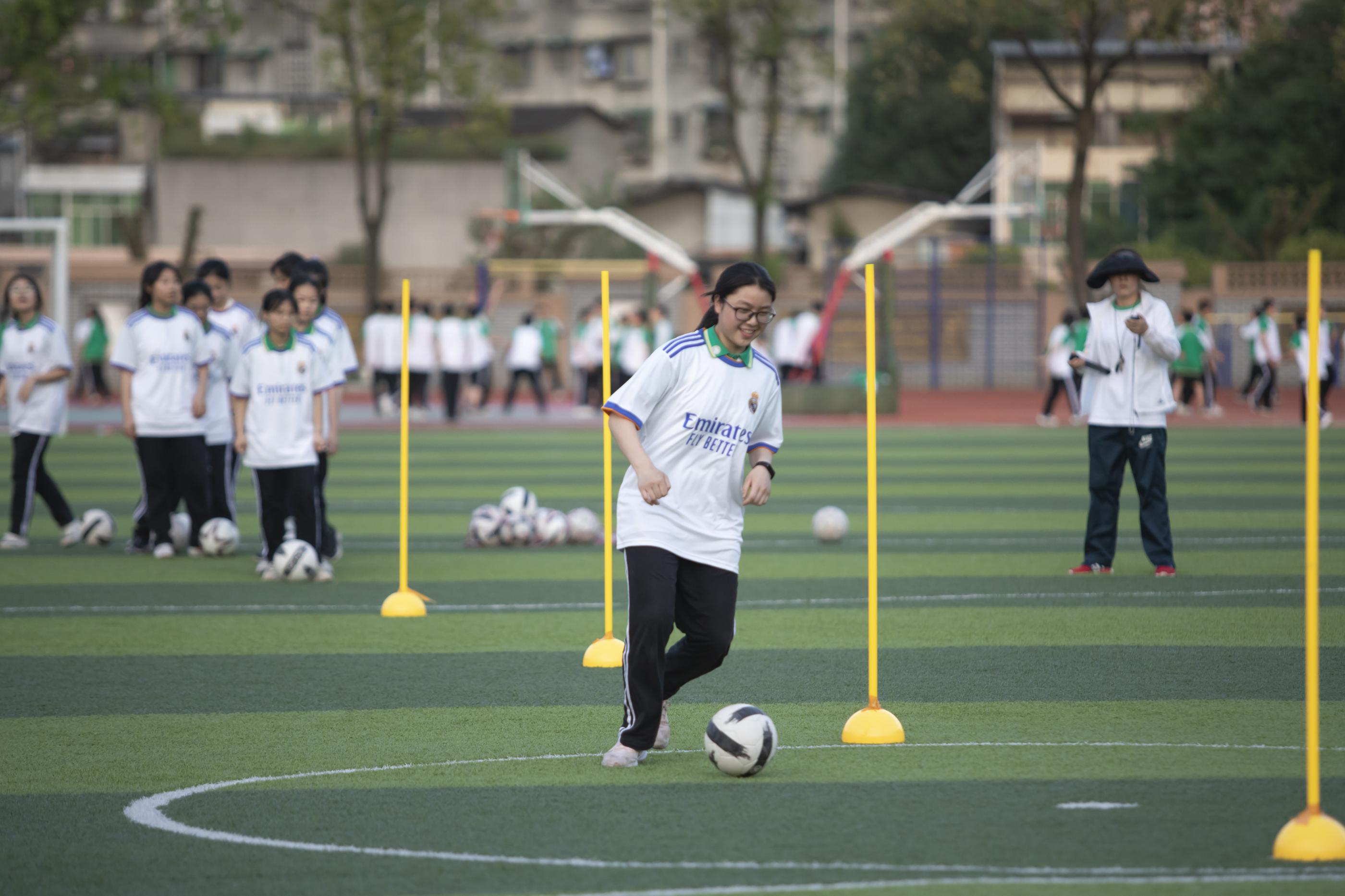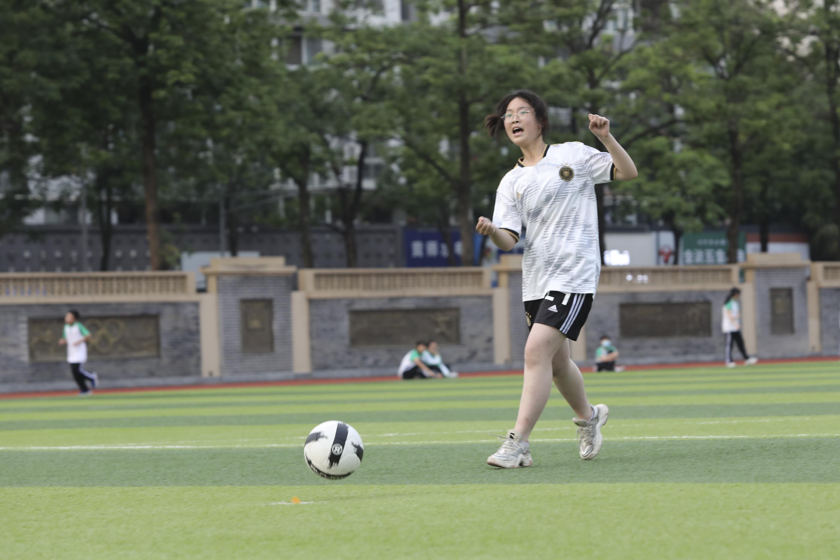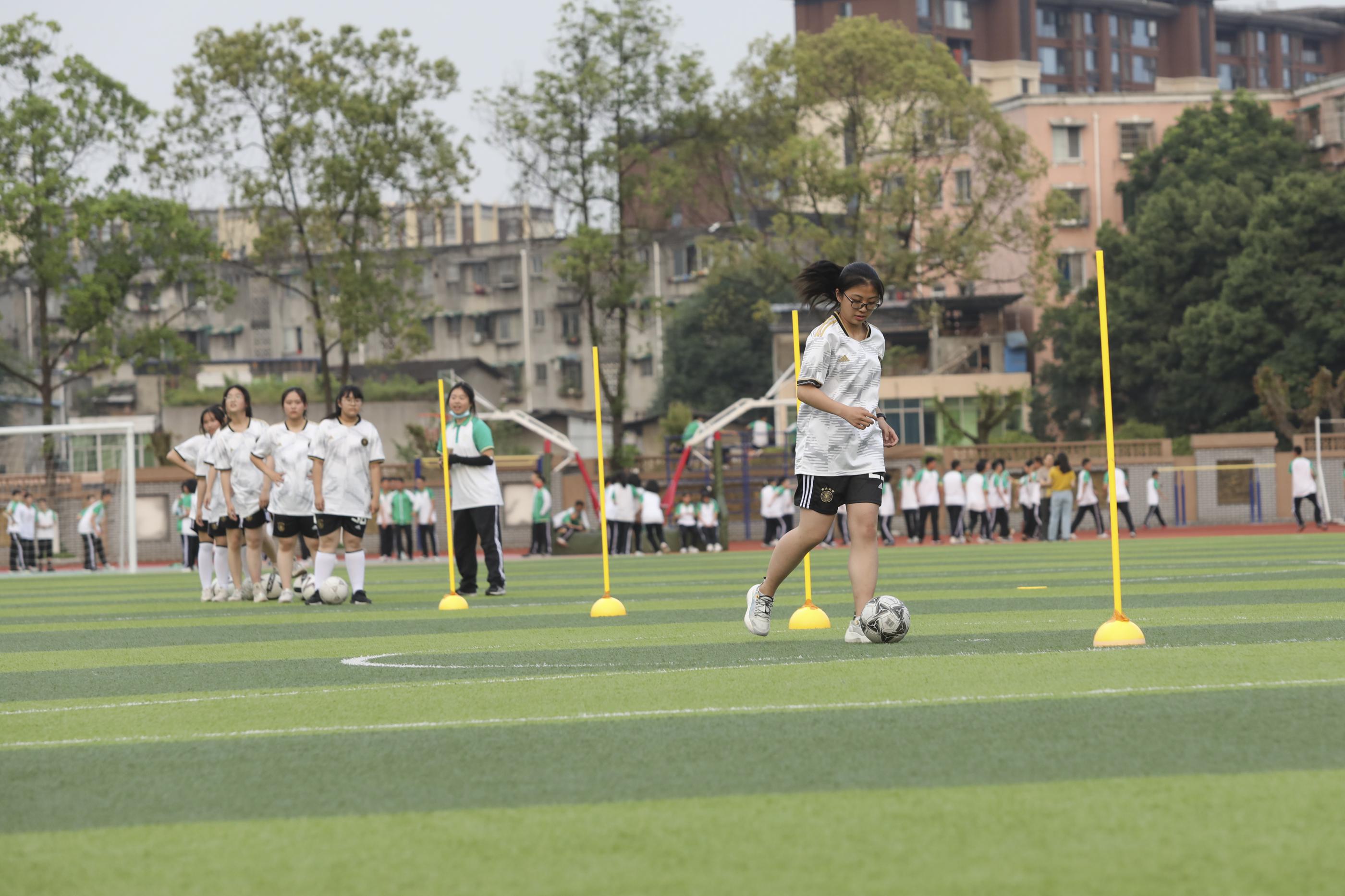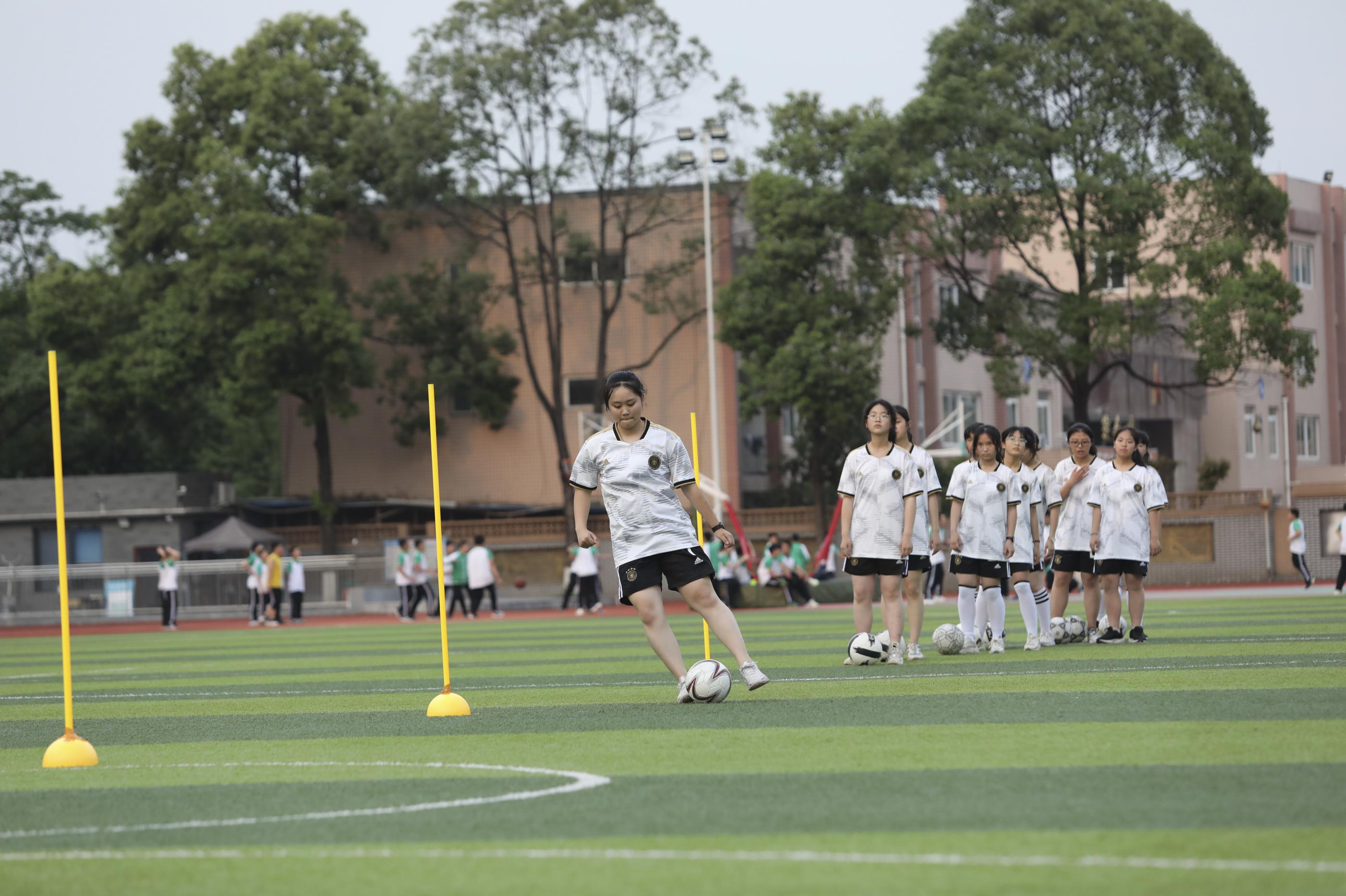 2021年5月11日,八年級(jí)3班女子足球隊(duì)員進(jìn)行繞桿射門比賽