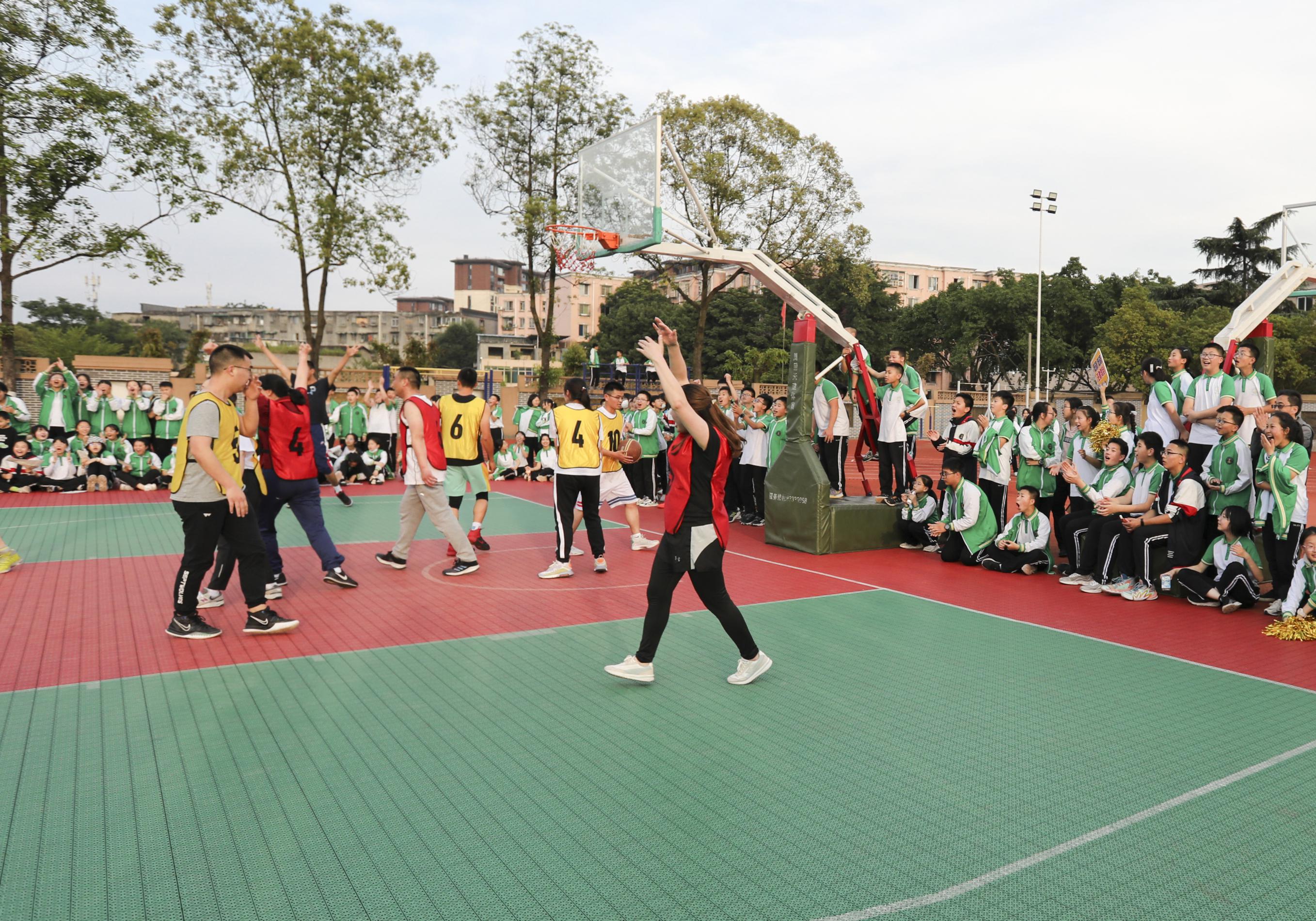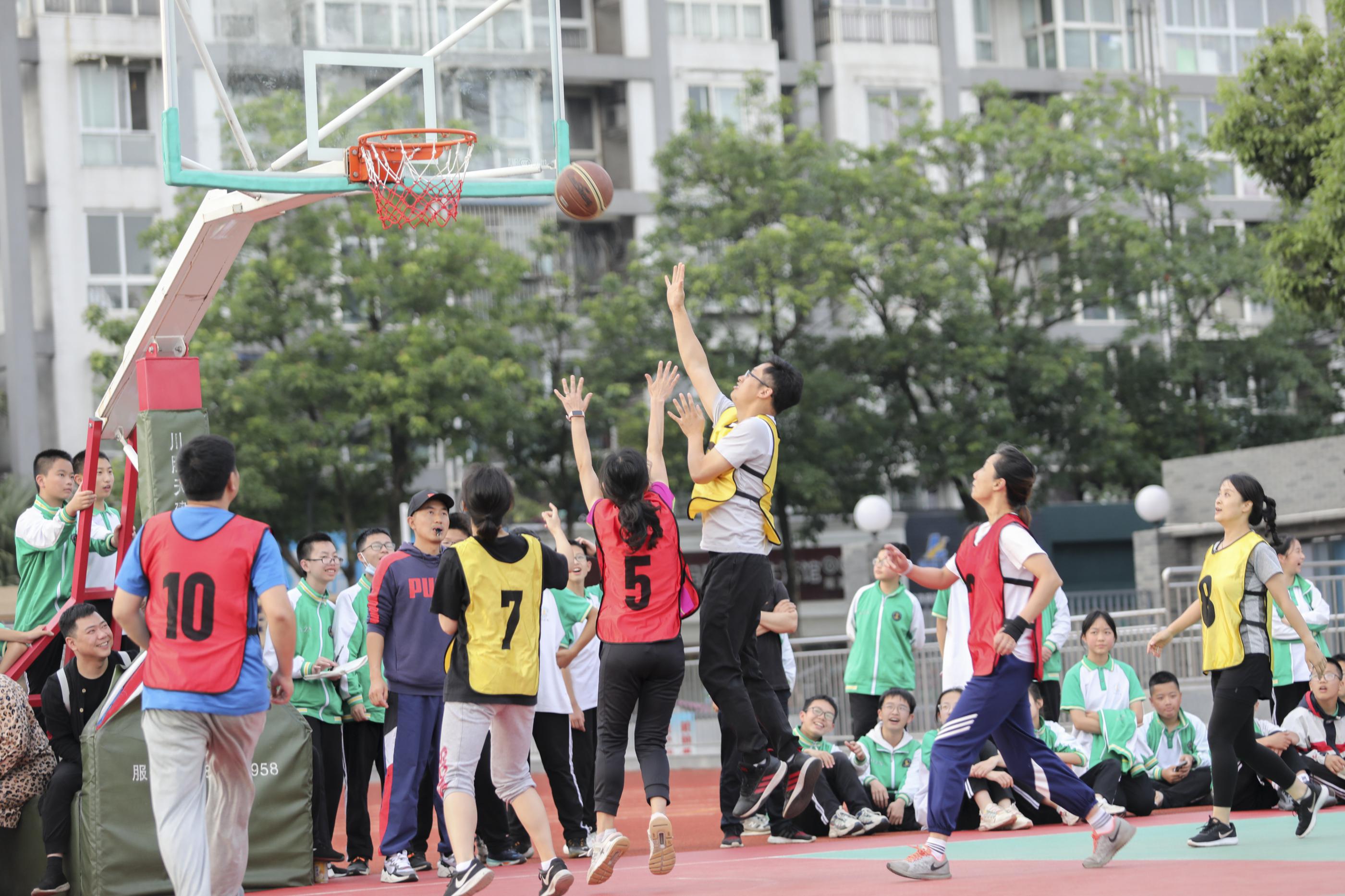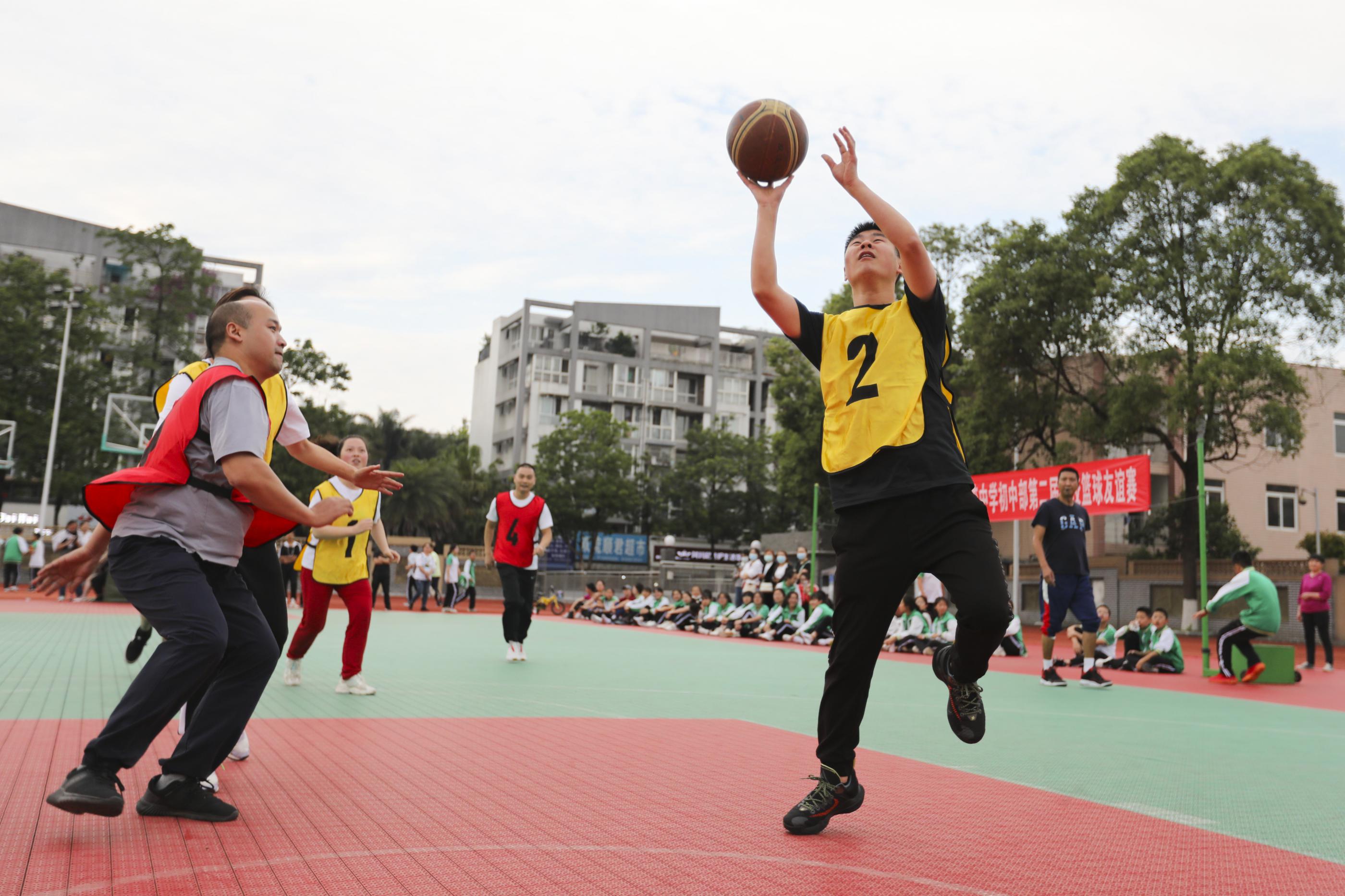 2022年5月19日下午,雙流中學(xué)舉行初中第二屆家?;@球友誼賽,由身著紅色球衣的家長(zhǎng)代表隊(duì)迎戰(zhàn)身著黃色球衣的教師代表隊(duì)。