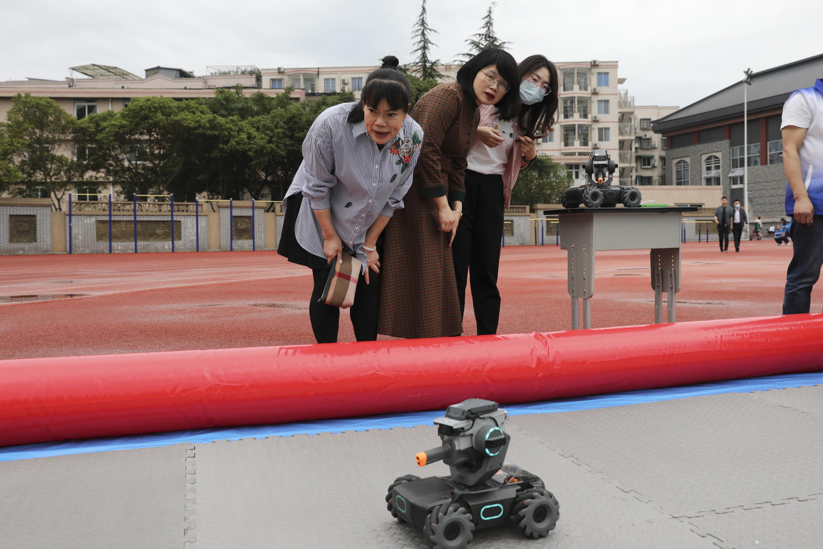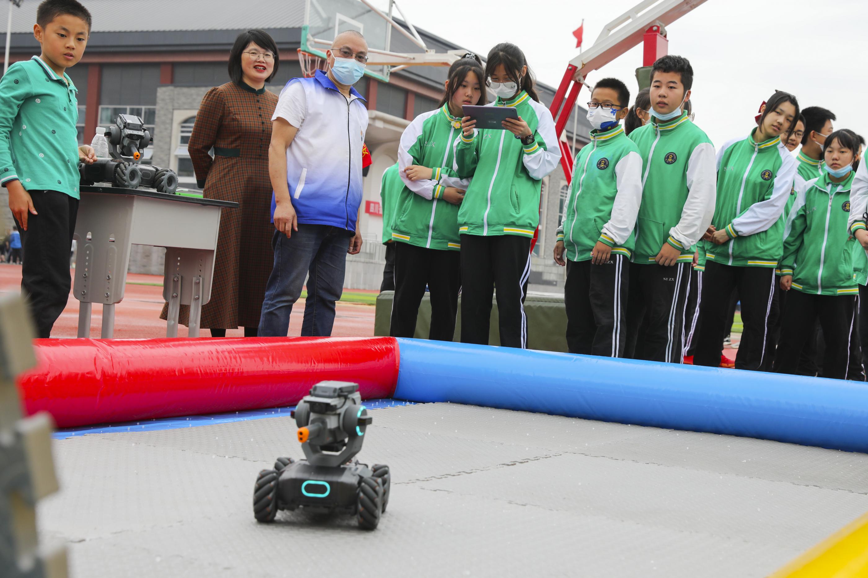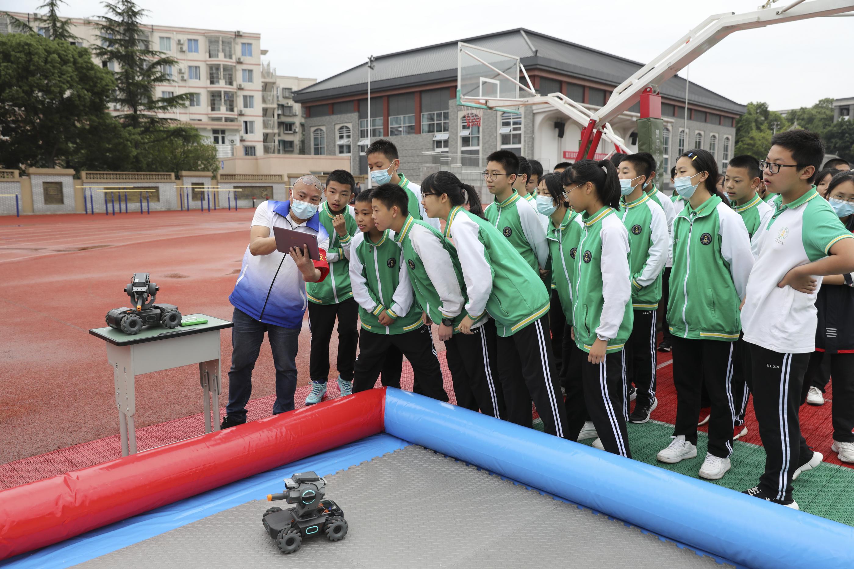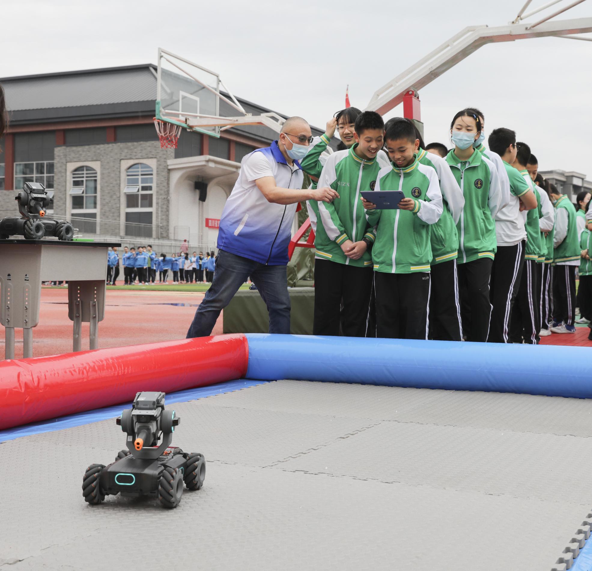 同學(xué)們操作“機甲大師車”進行打靶