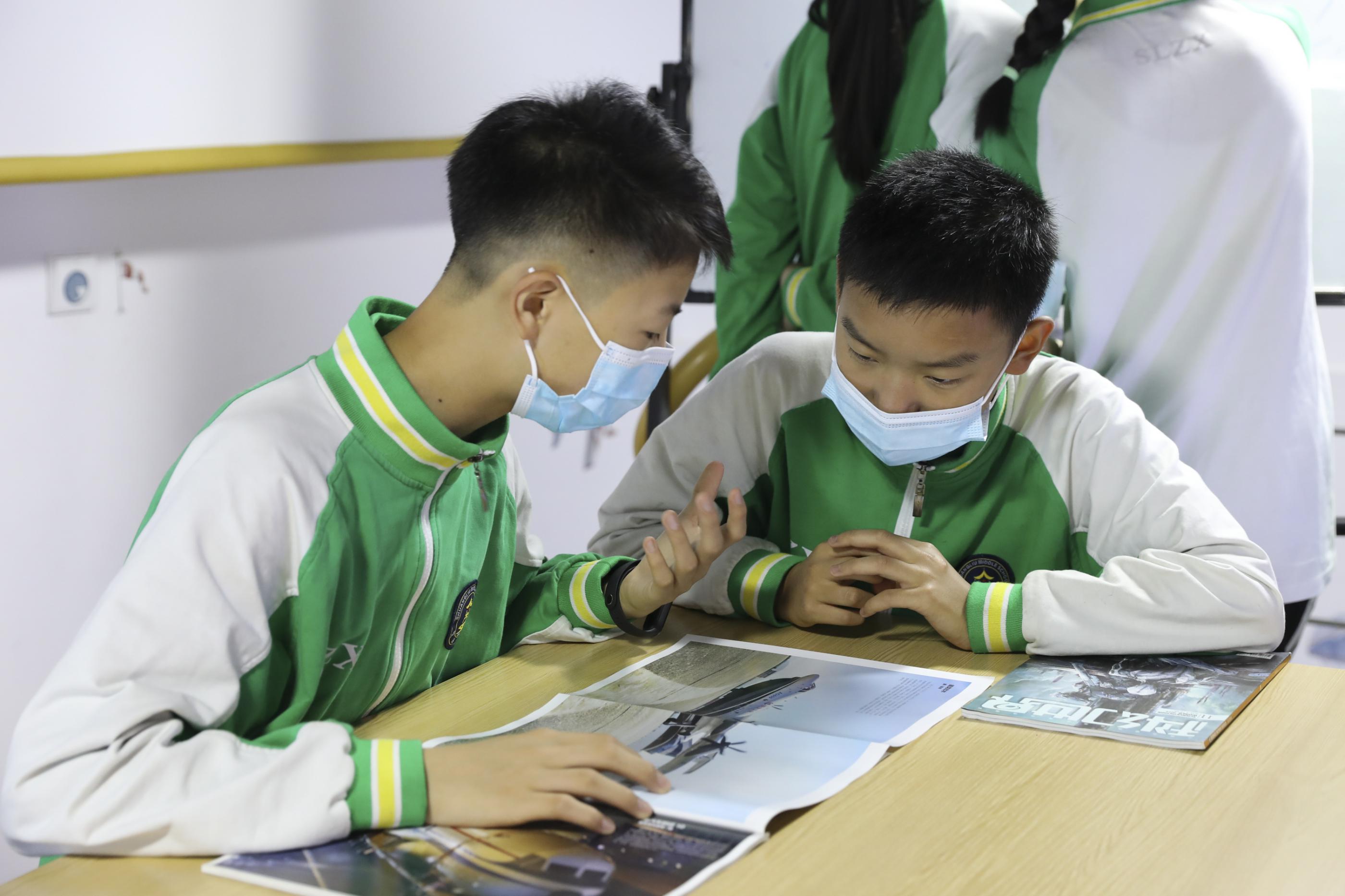 雙中學(xué)生在紫東閣航空體驗館學(xué)習(xí)航模知識