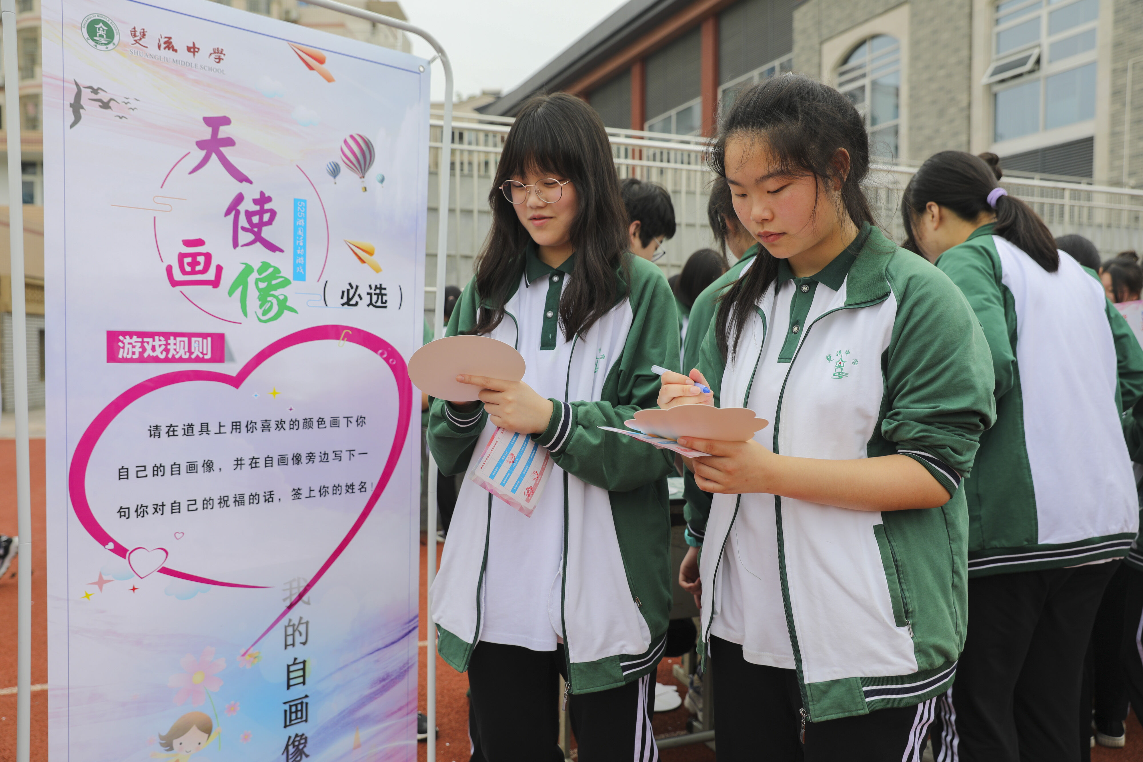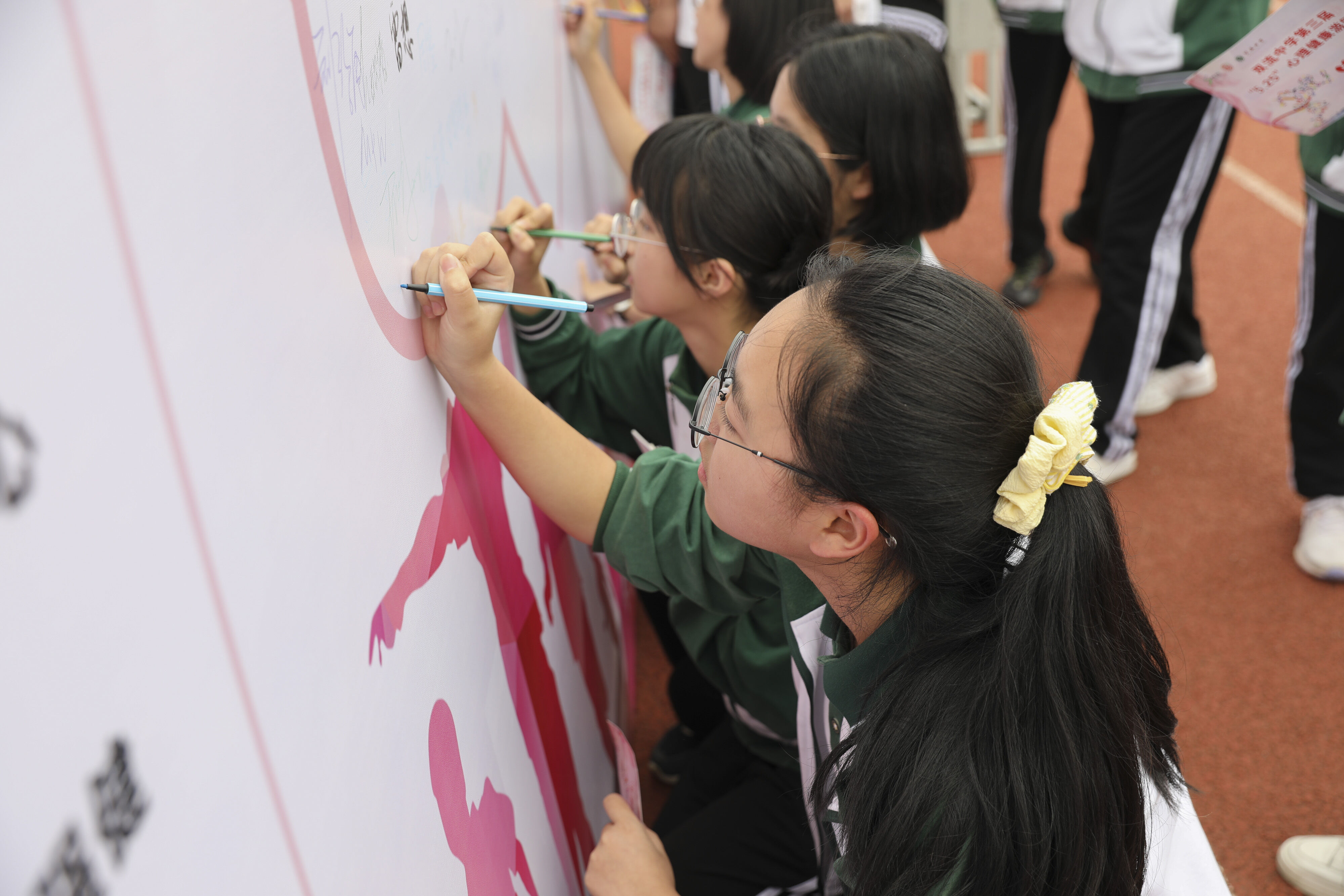 游園活動項(xiàng)目——天使宣言。同學(xué)們在參加天使宣言活動簽名