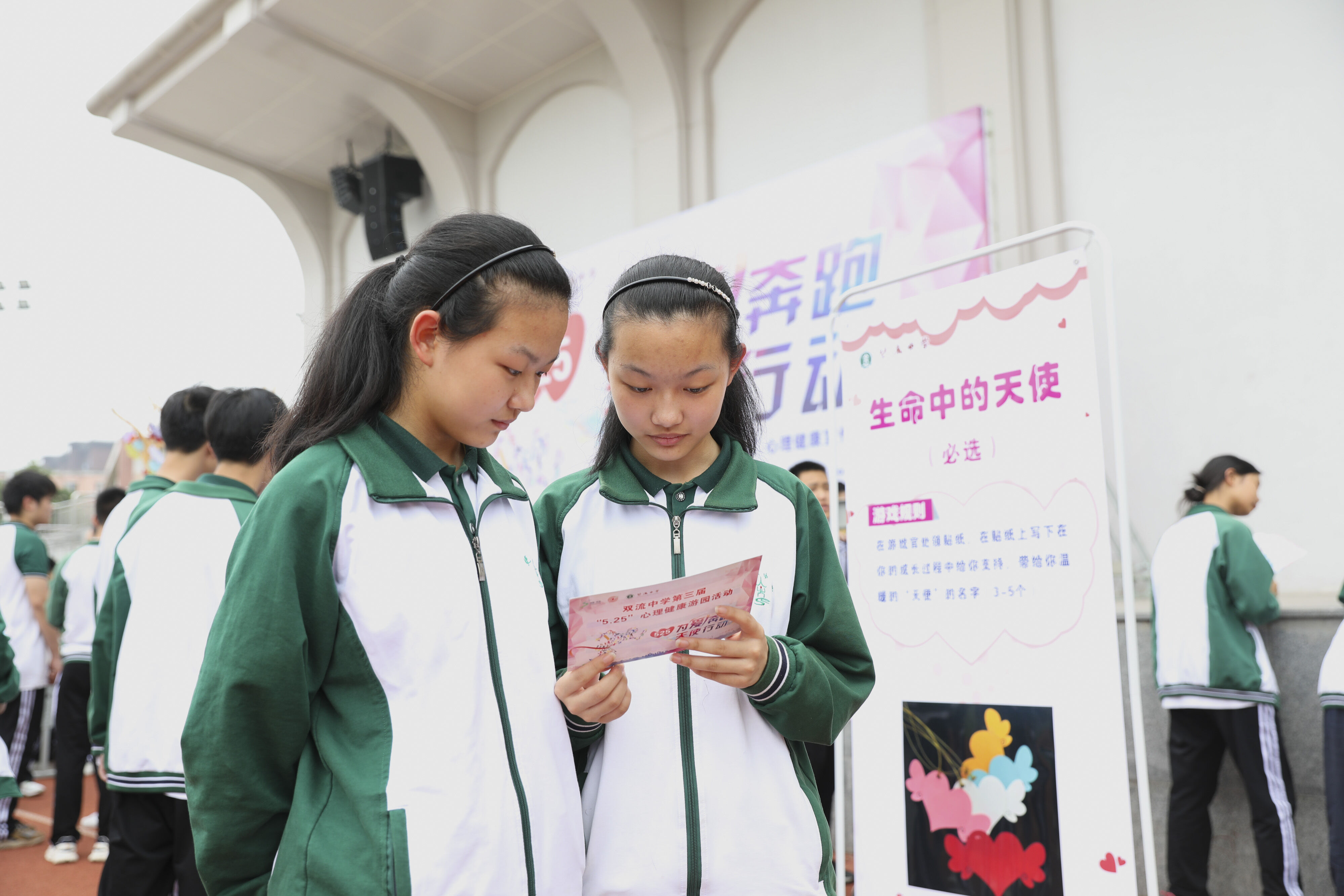 雙流中學(xué)心理中心陳麗萍老師宣布“525為愛奔跑,天使行動”心理游園活動正式開始。