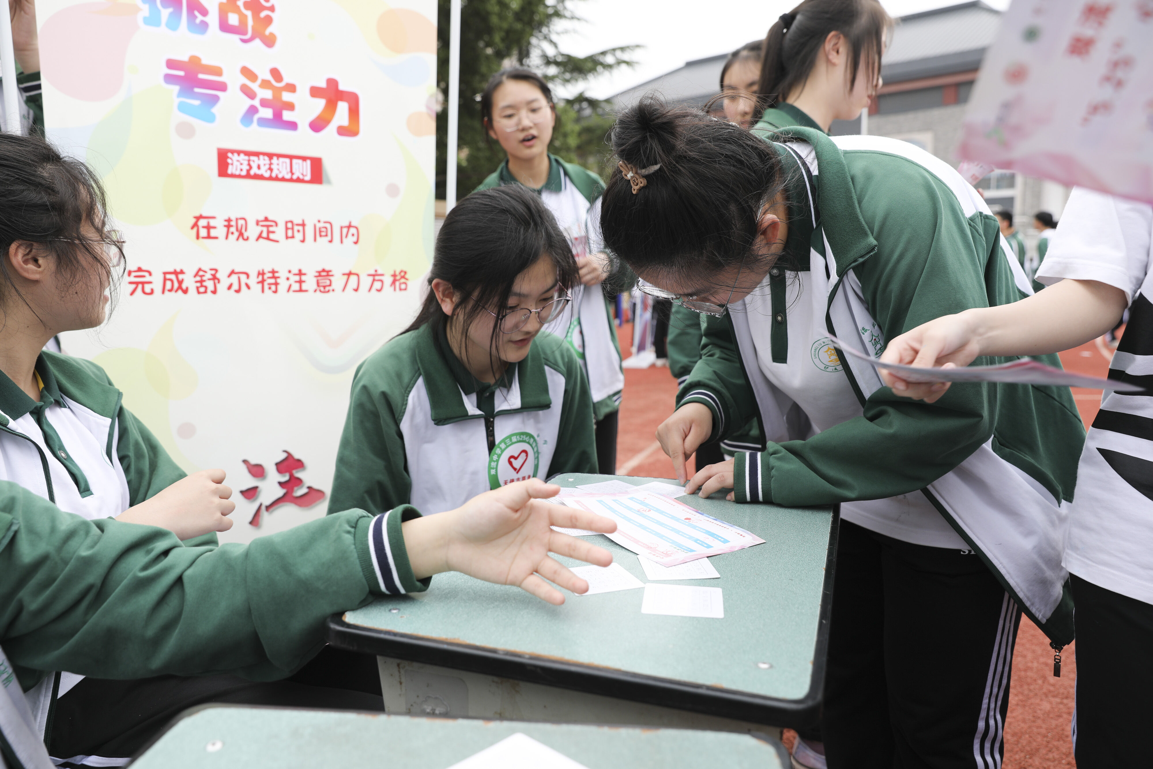 游園活動項(xiàng)目——挑戰(zhàn)專注力。圖為學(xué)生在挑戰(zhàn)舒爾特注意力方格