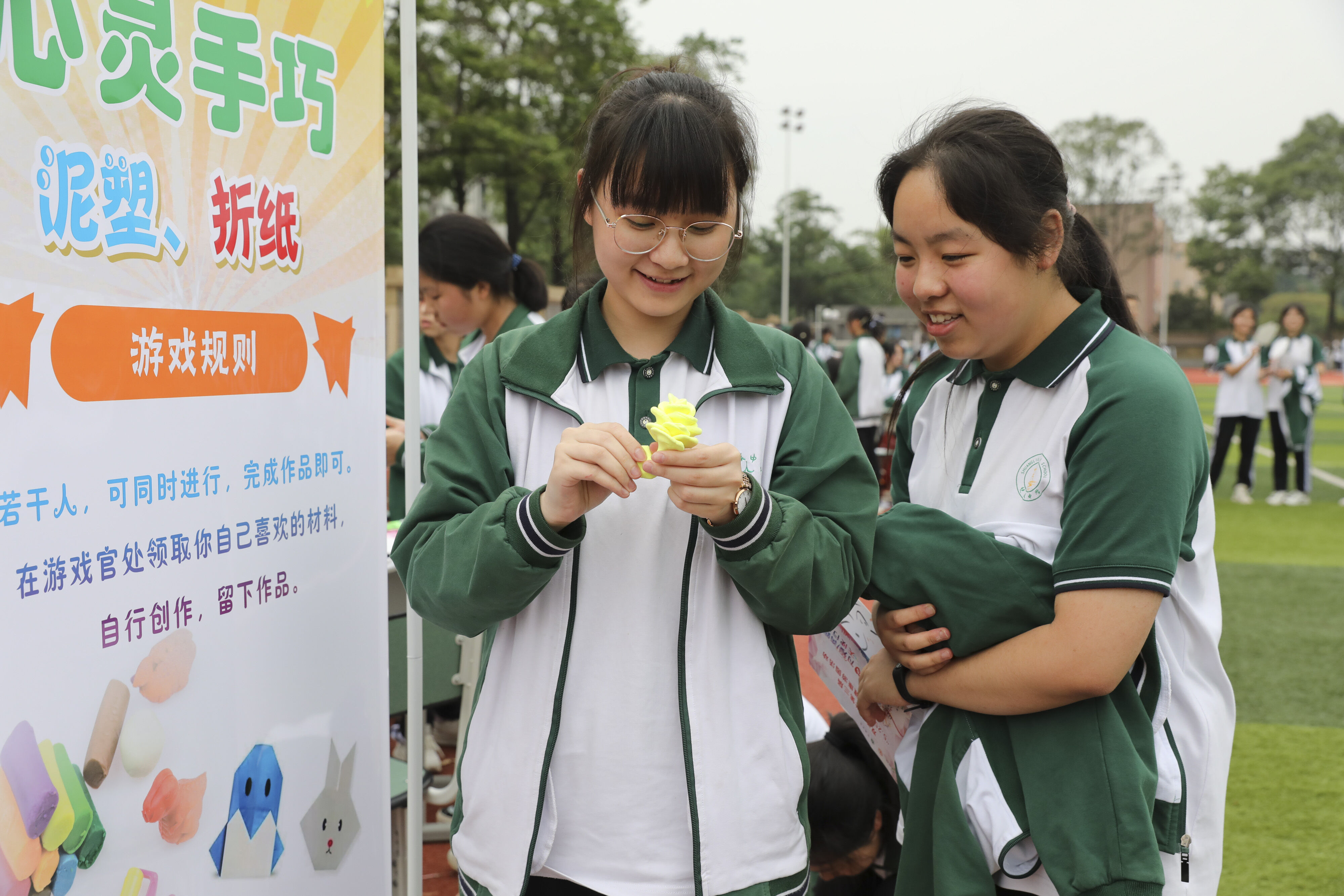 游園活動項(xiàng)目——心靈手巧。參與的學(xué)生在完成自己的作品