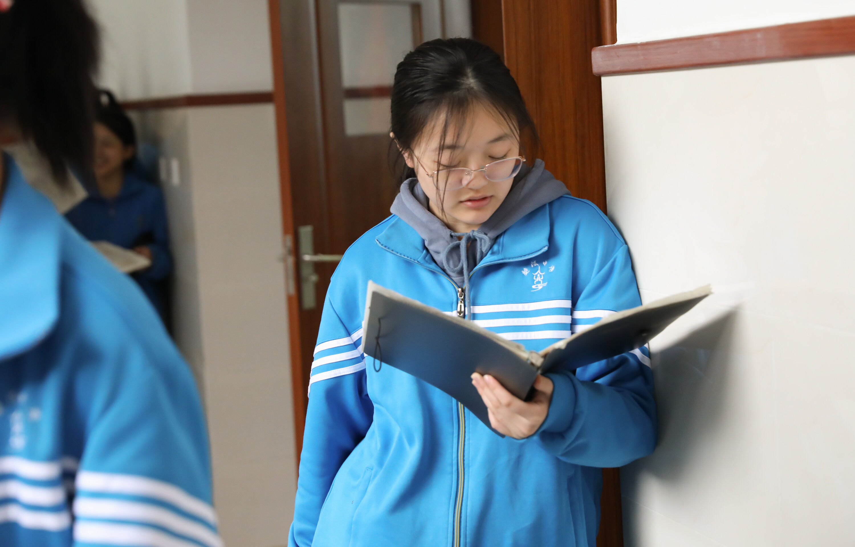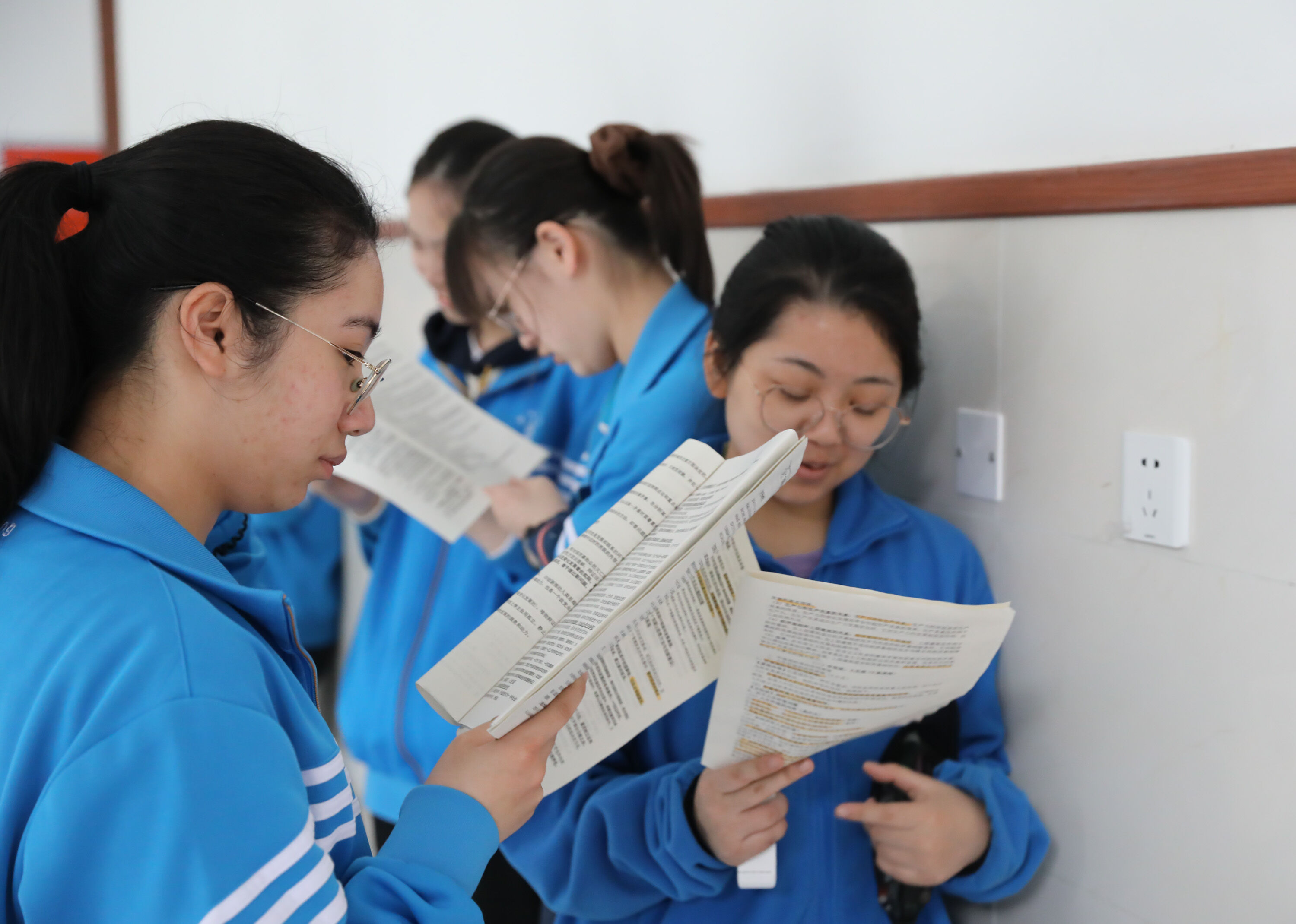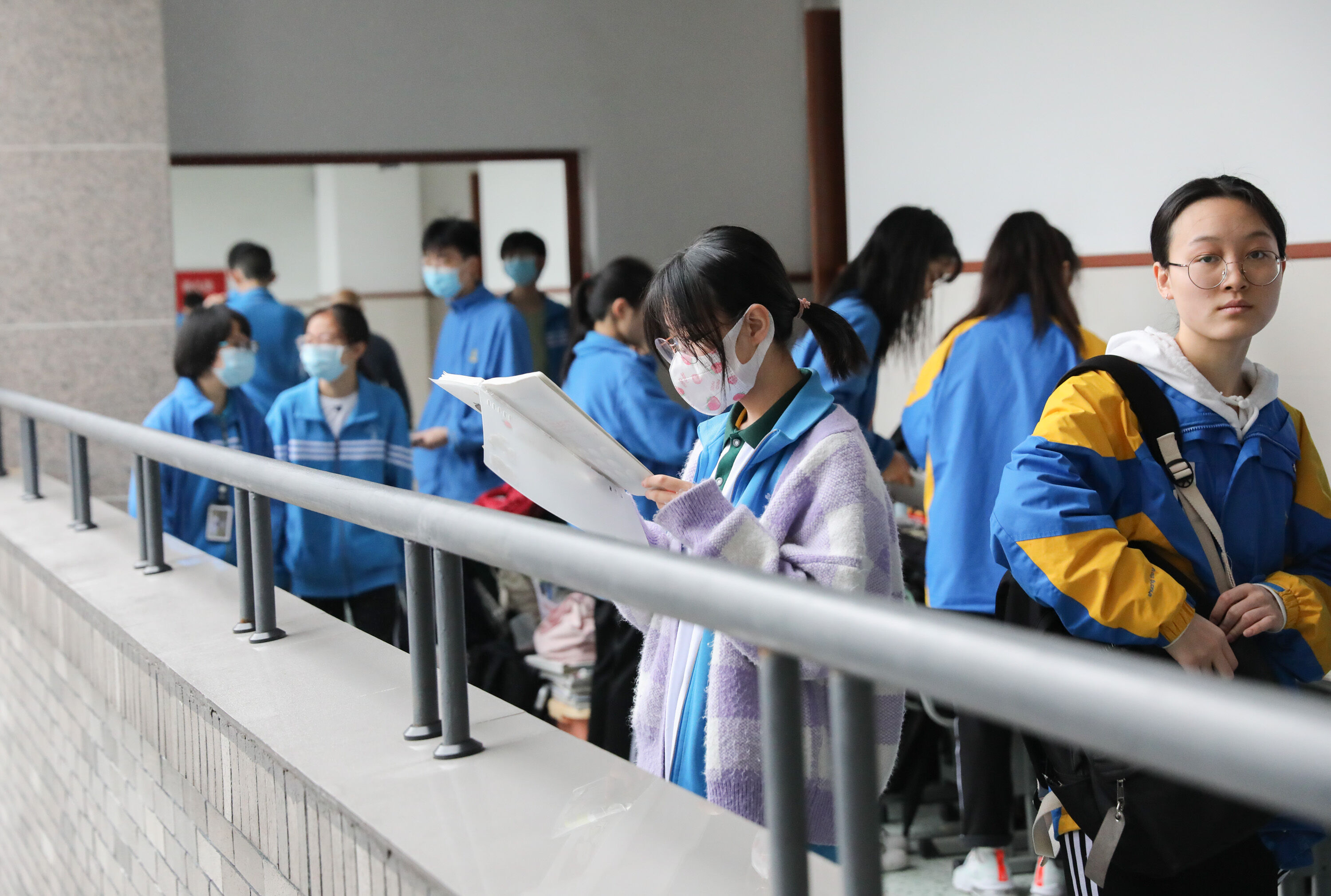 第一次高考模擬考試,高三同學在考場外候考時專心復習學生在外候考時專心復習