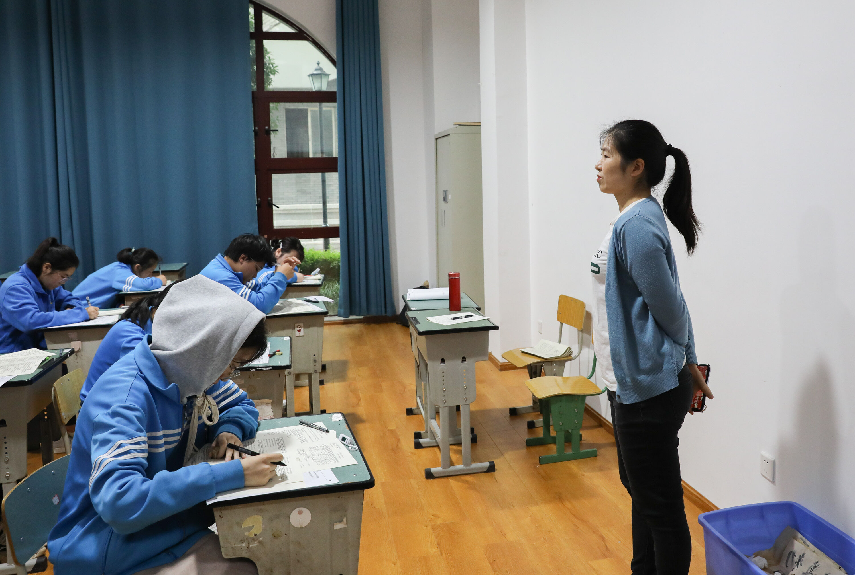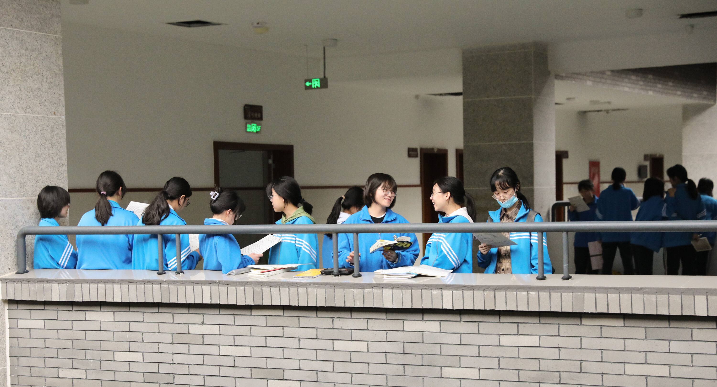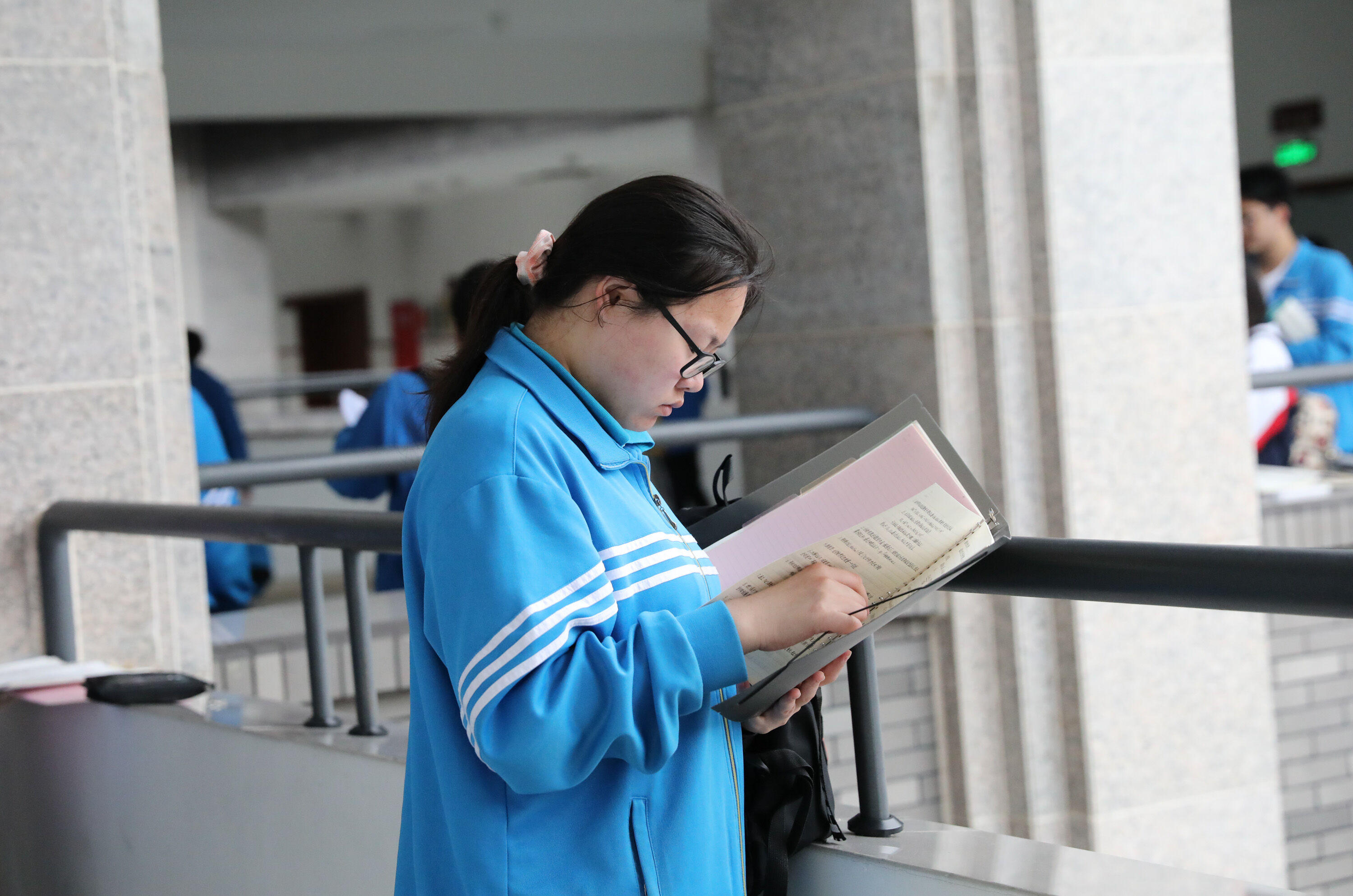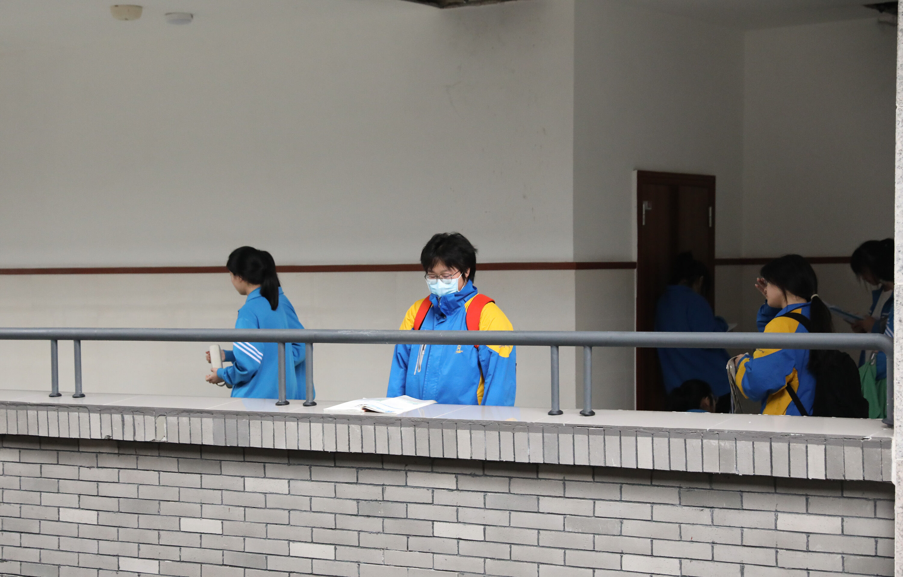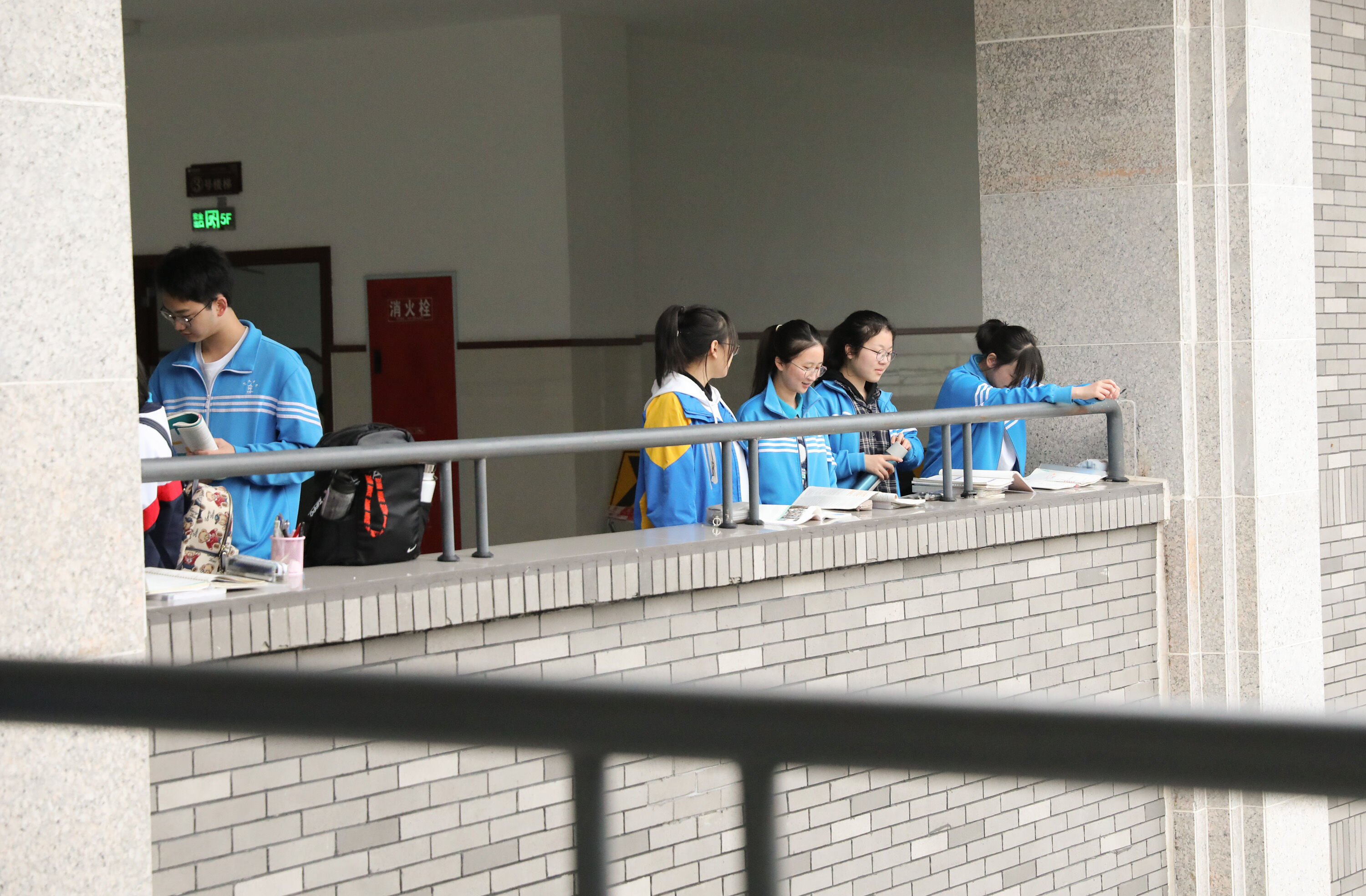 第一次高考模擬考試,高三學子在陽臺邊復習侯考