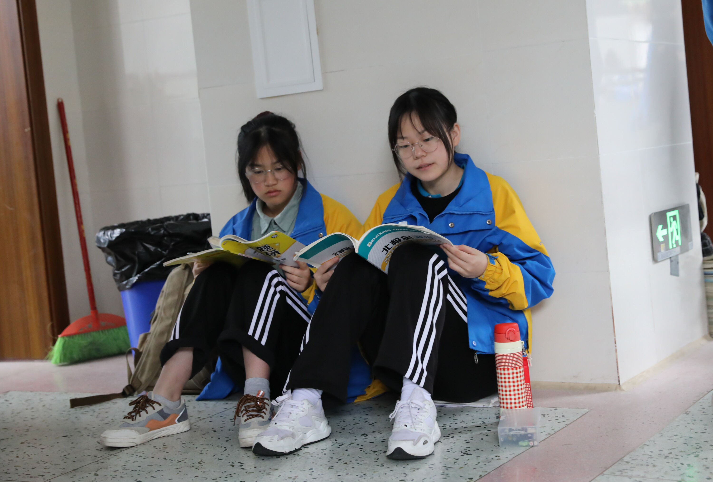 第一次高考模擬考試,高三學子坐地上復習侯考