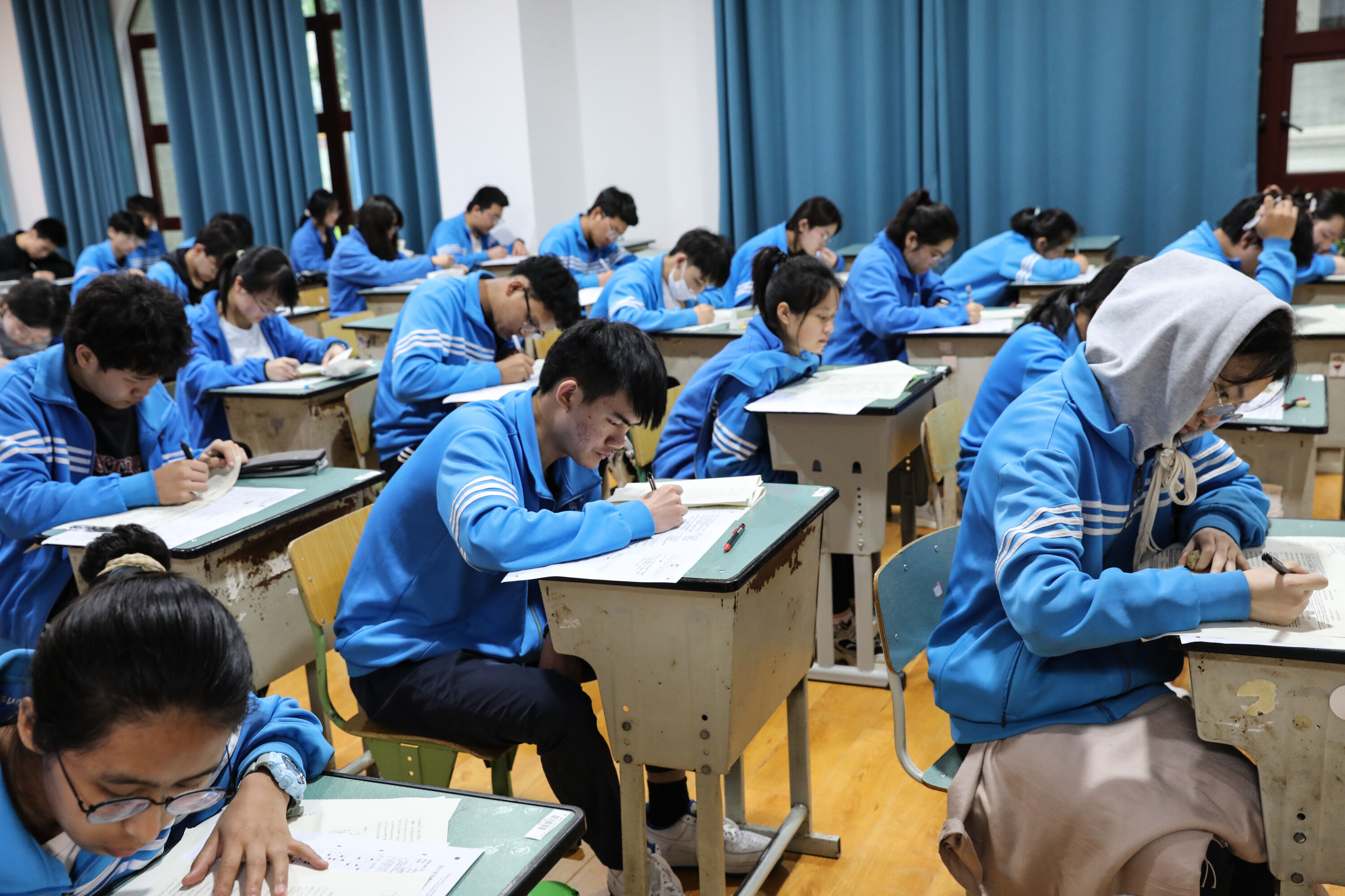 第一次高考模擬考試,高三同學侯考時認真復習