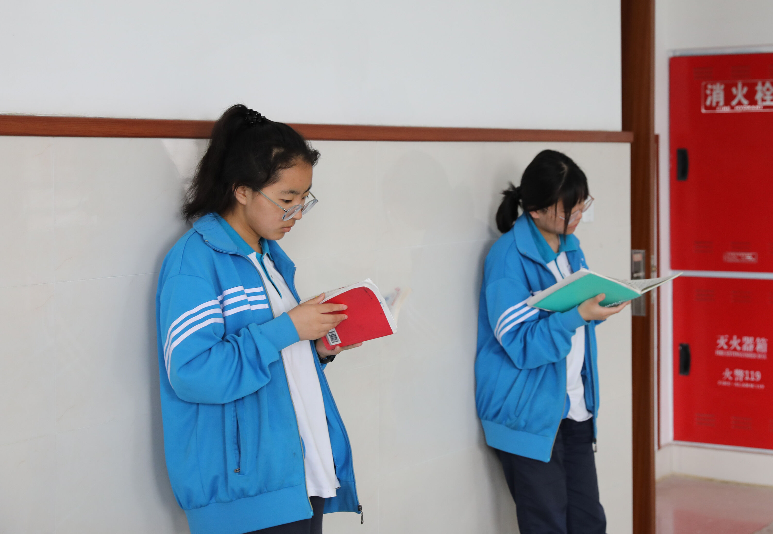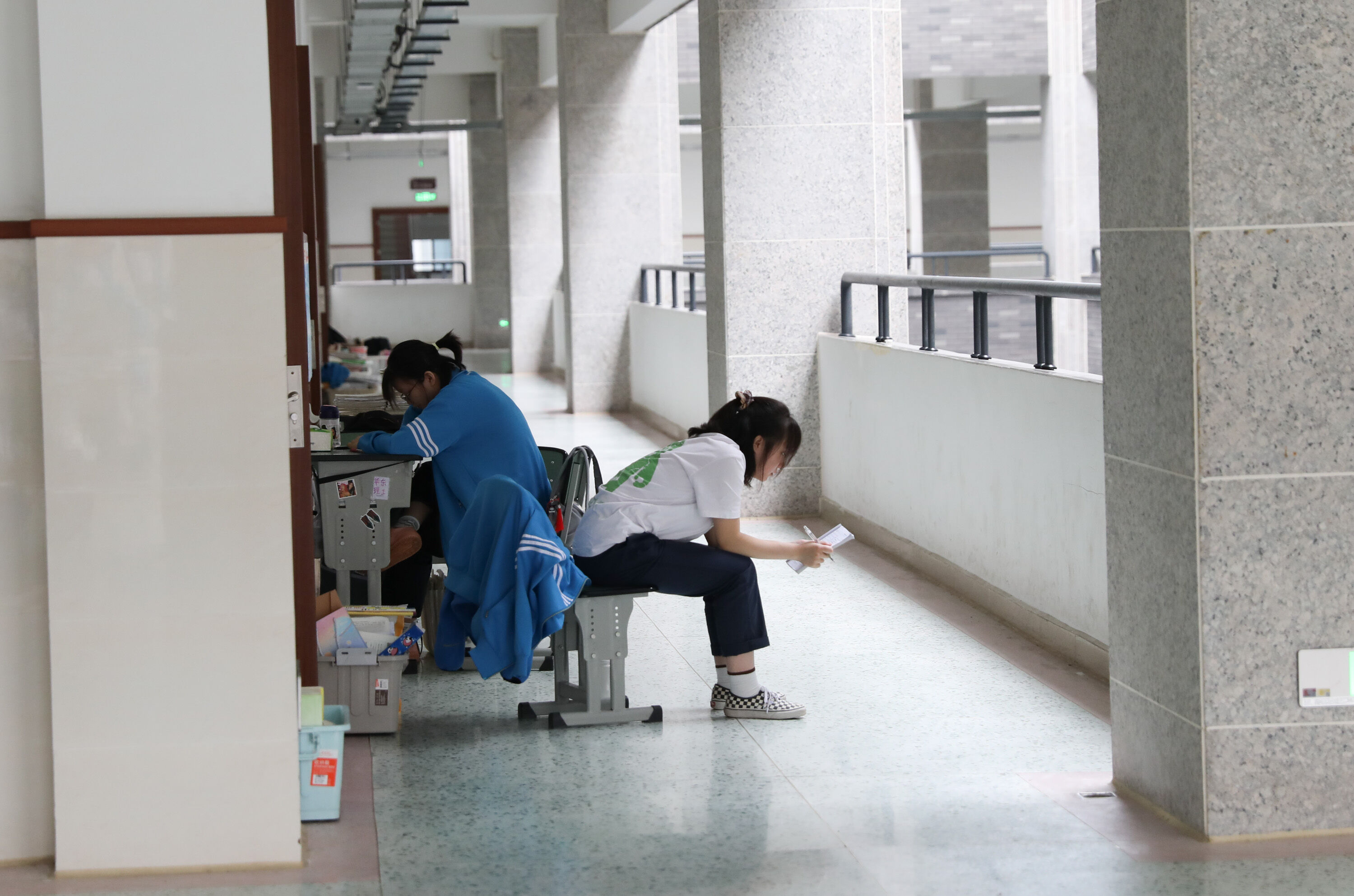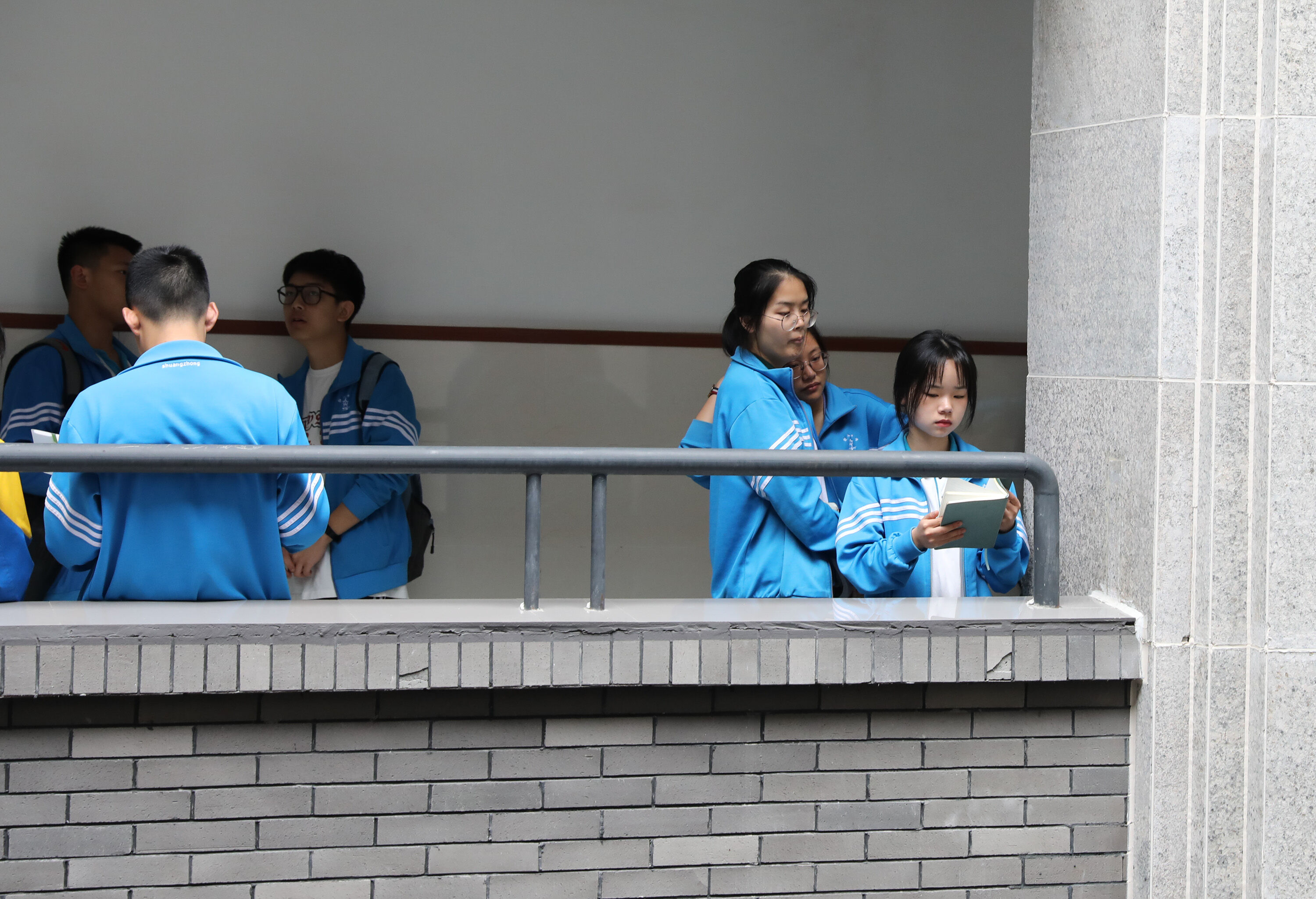 第二次高考模擬考試,考前在教室外認(rèn)真復(fù)習(xí)的高三學(xué)生