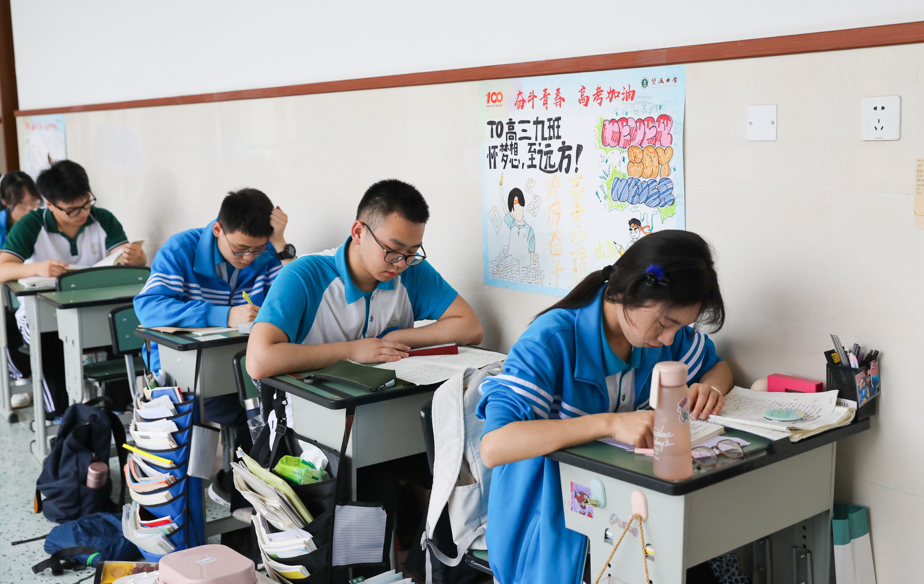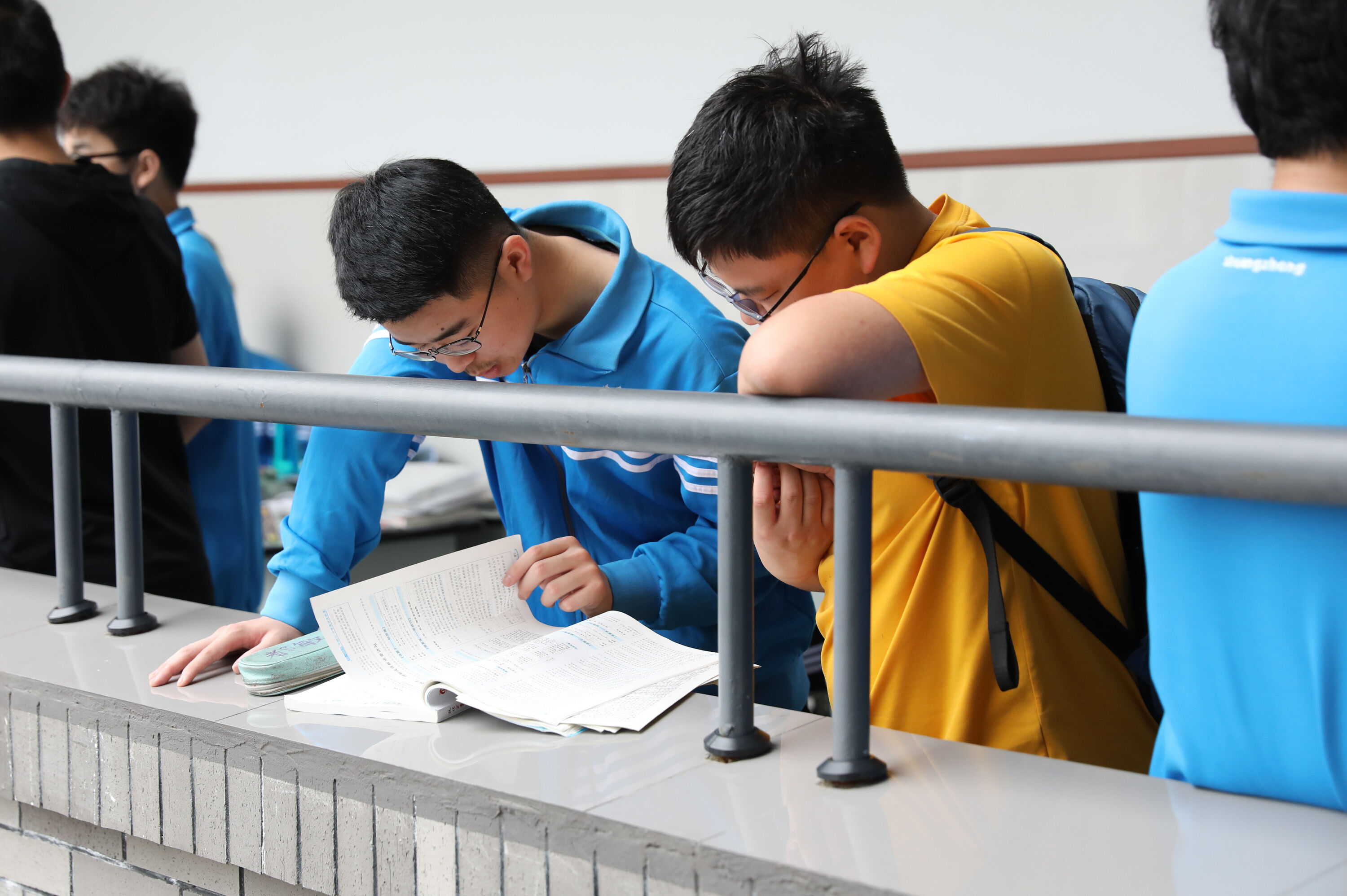 第二次高考模擬考試,高三學(xué)生侯考時認(rèn)真復(fù)習(xí)。