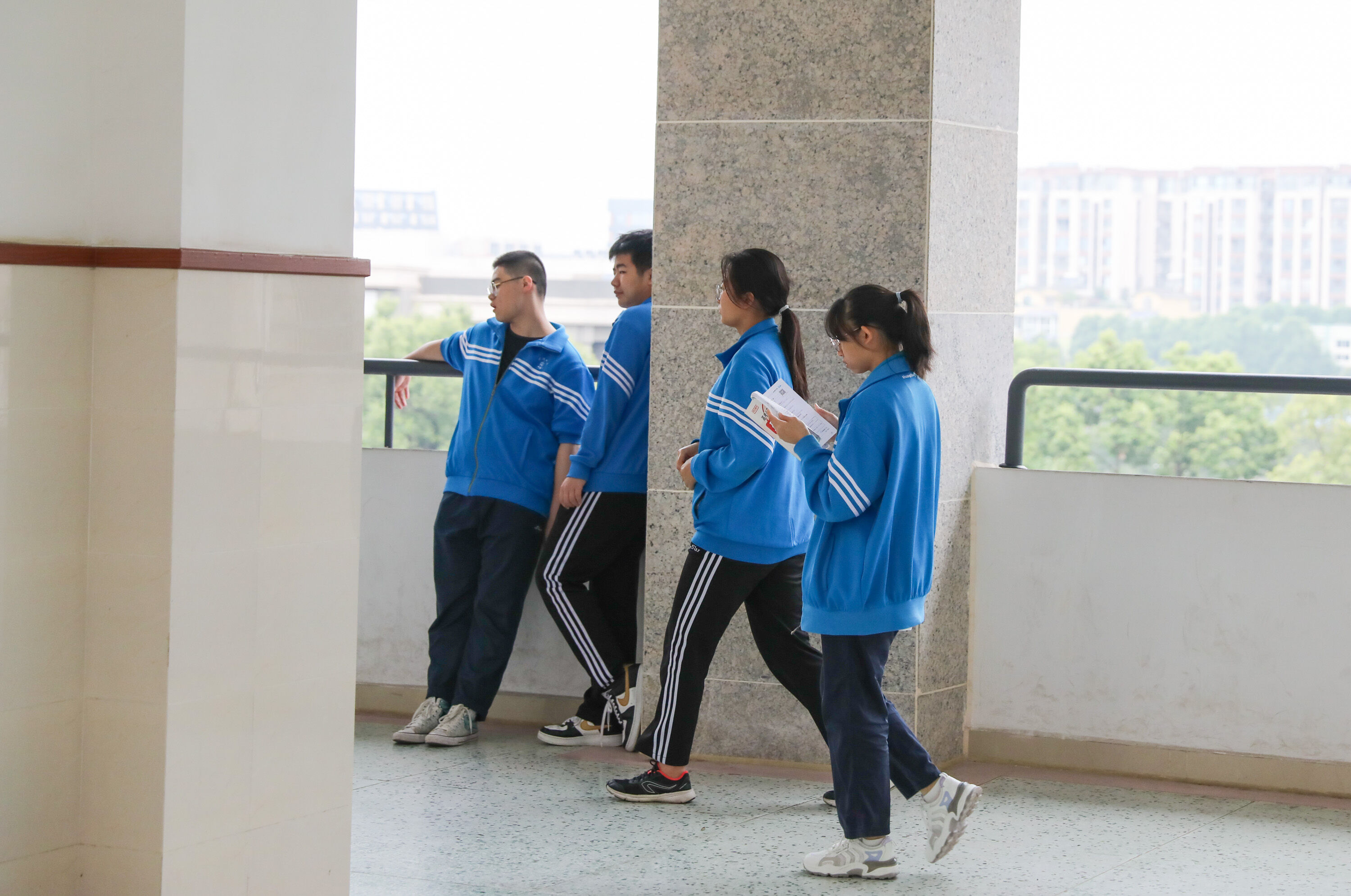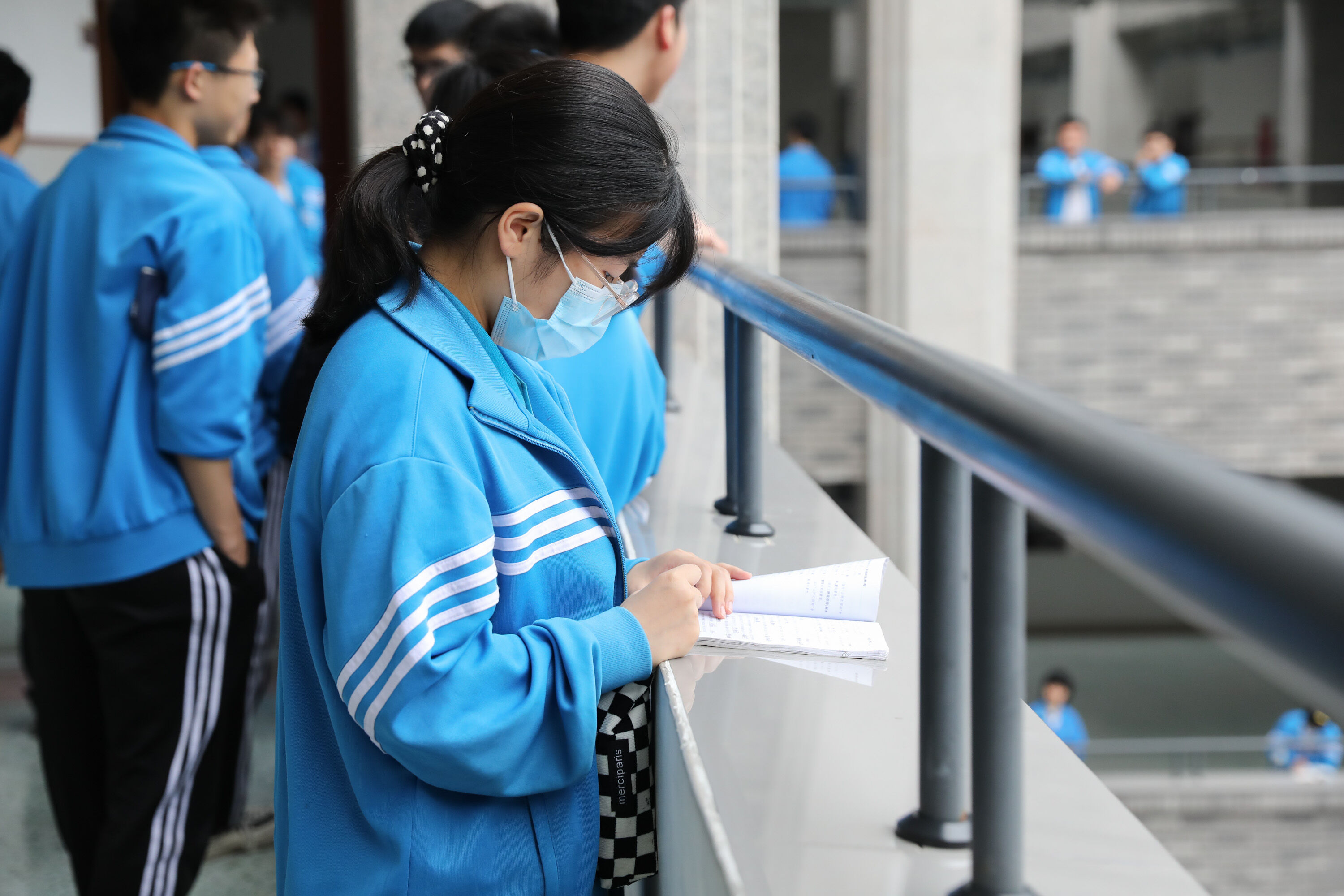 第二次高考模擬考試,考前在教室外認(rèn)真復(fù)習(xí)的高三學(xué)生??恐鴫π菹⒁幌露际?/div>