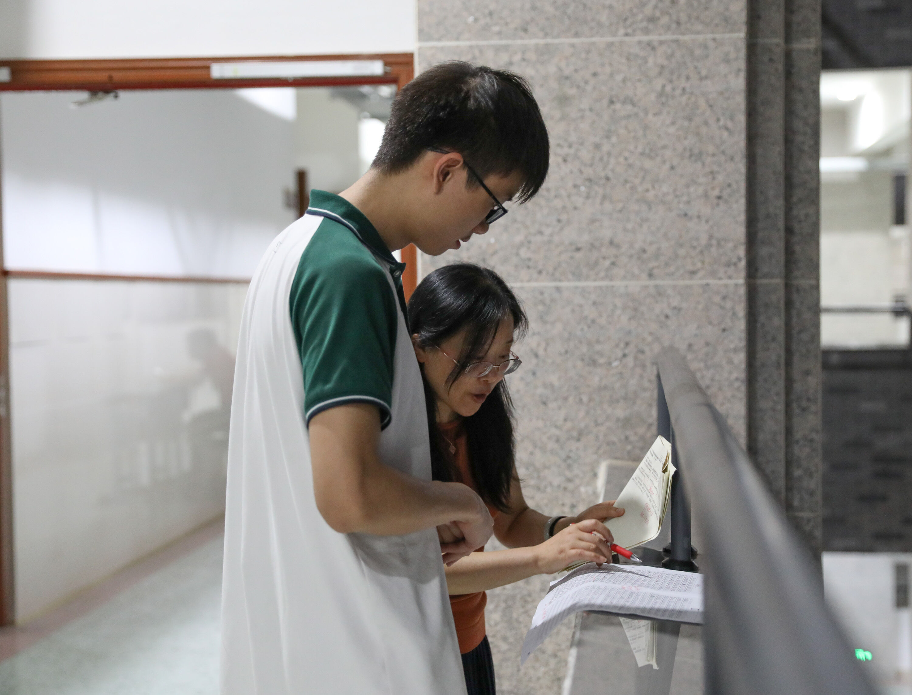 陳志平老師給17班學(xué)生徐楊嵐答疑。