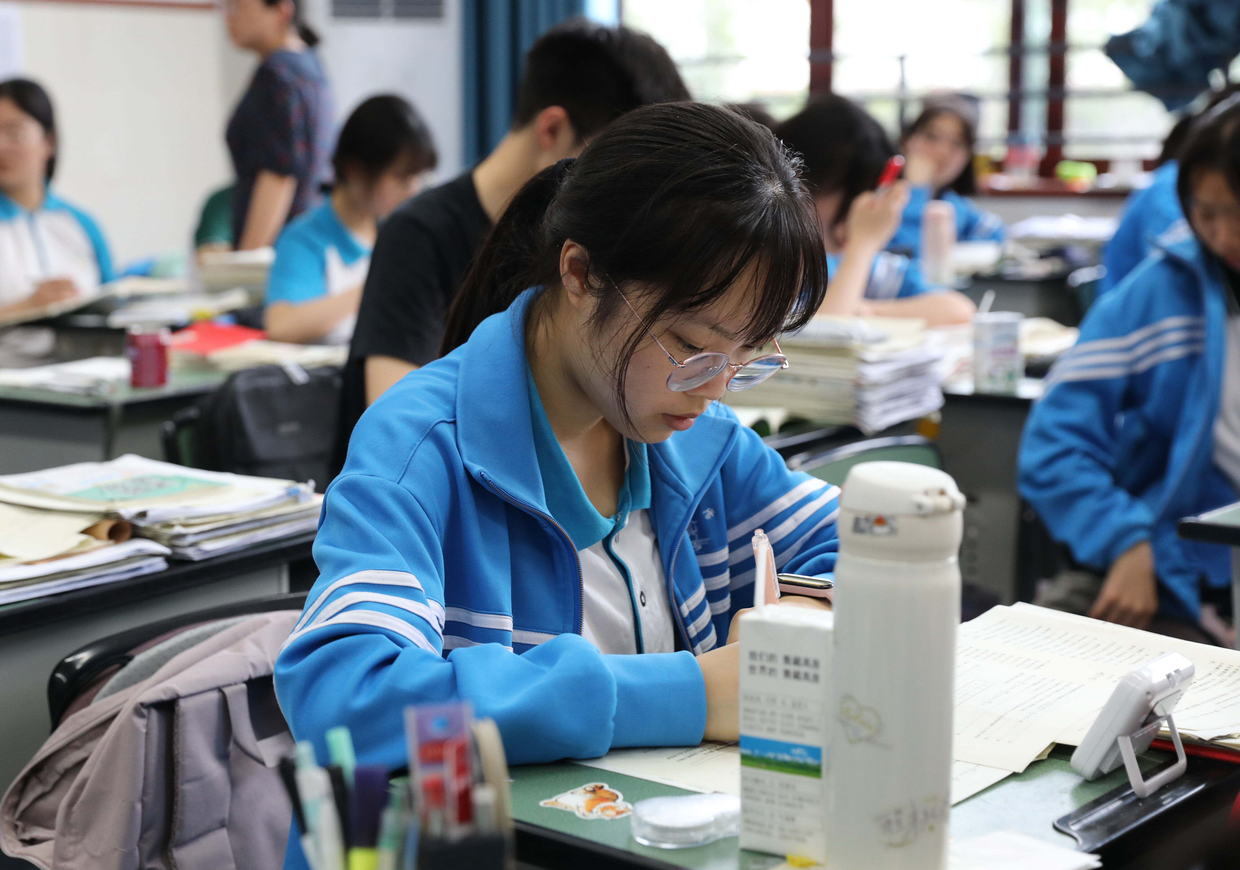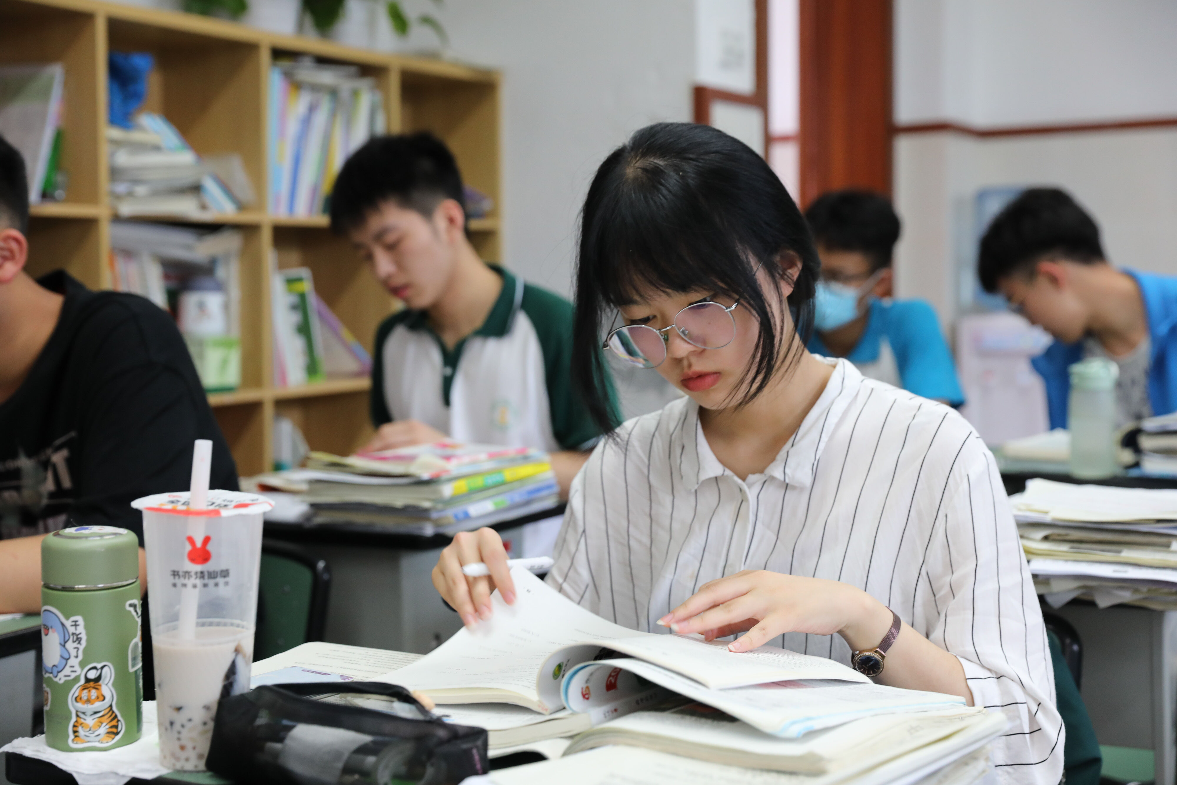 2022年6月5日,高考倒計(jì)時(shí)2天!用相機(jī)記錄下高三學(xué)子認(rèn)真?zhèn)淇紡?fù)習(xí)的畫面。高三1班拍攝畫面。