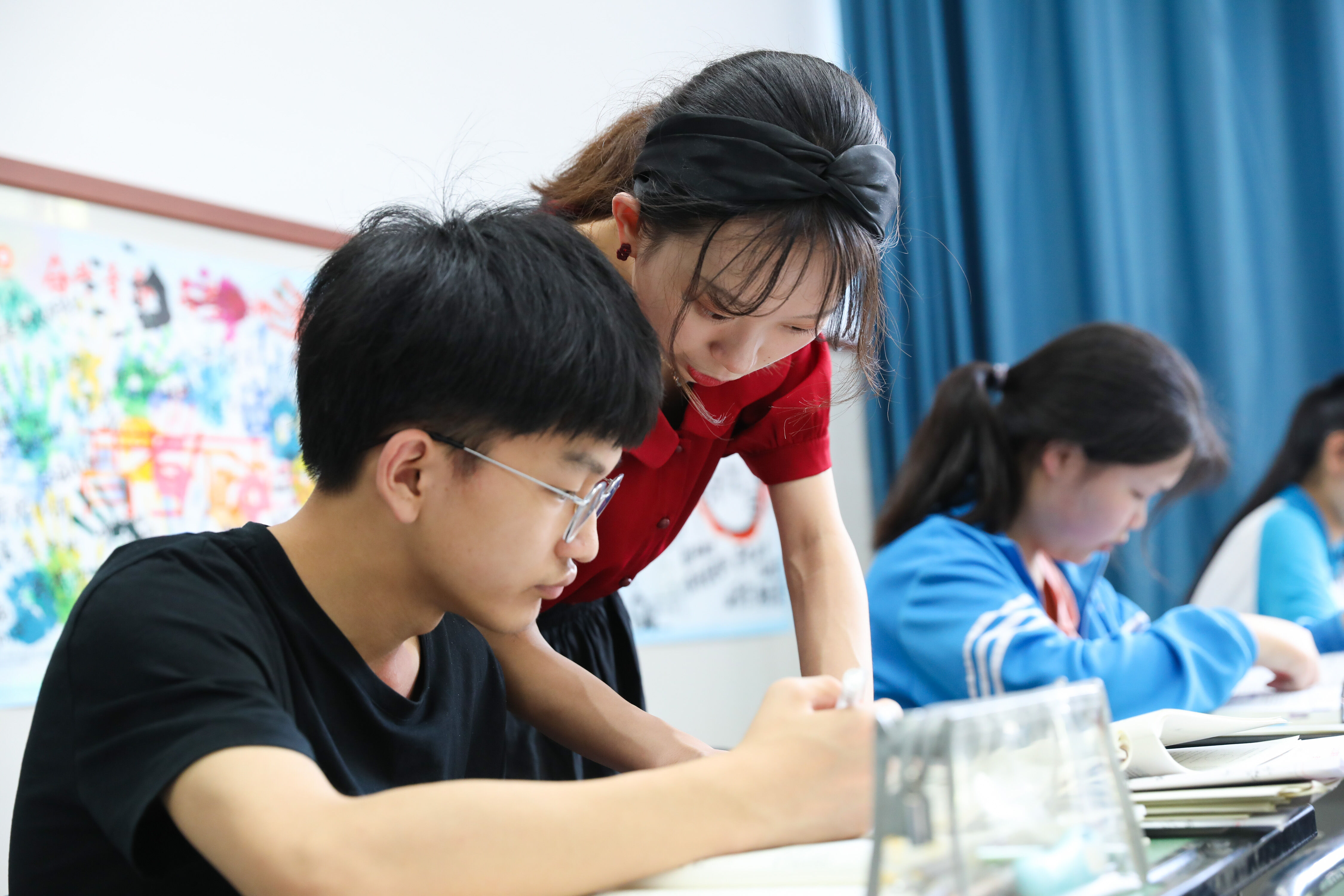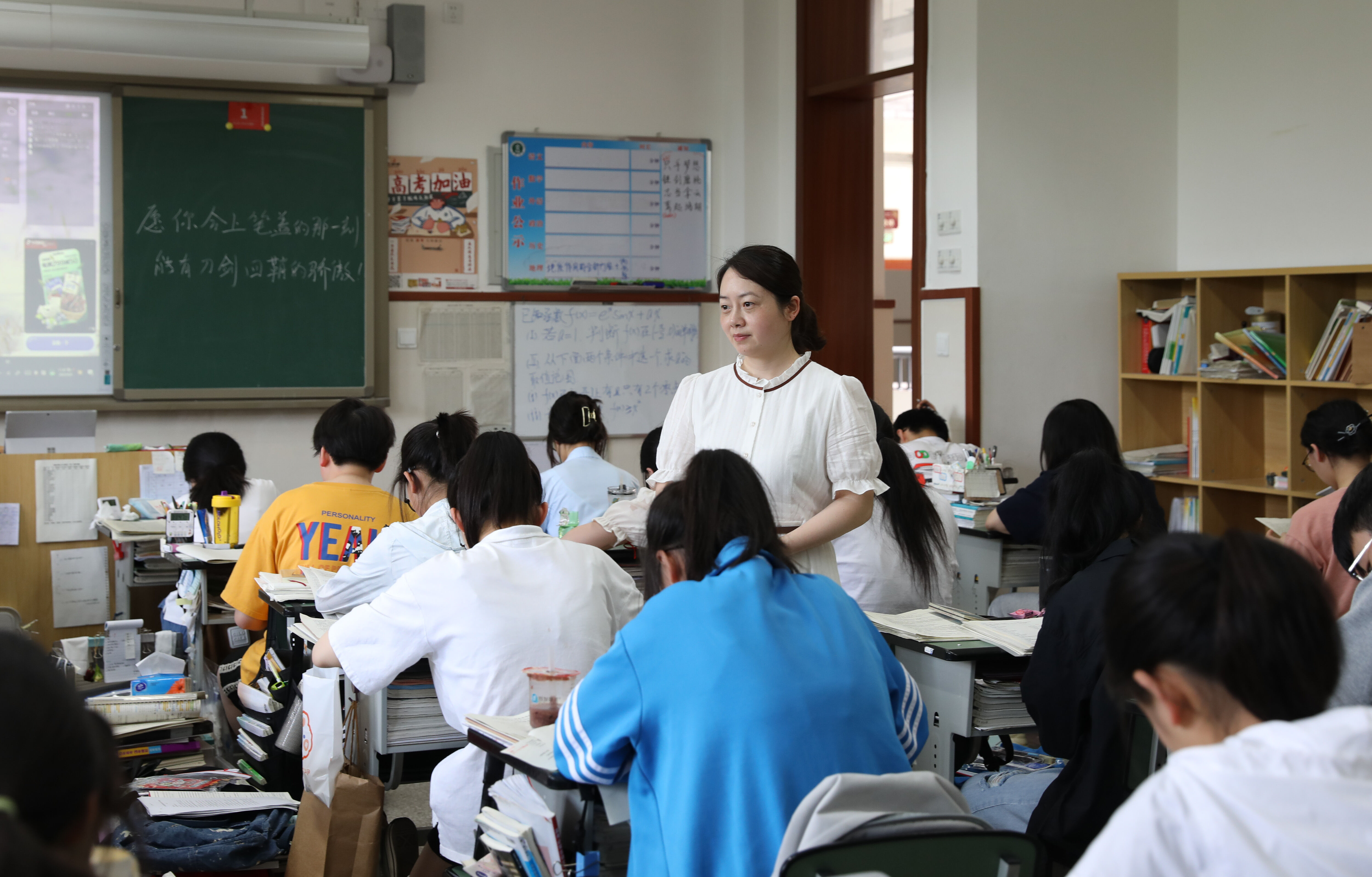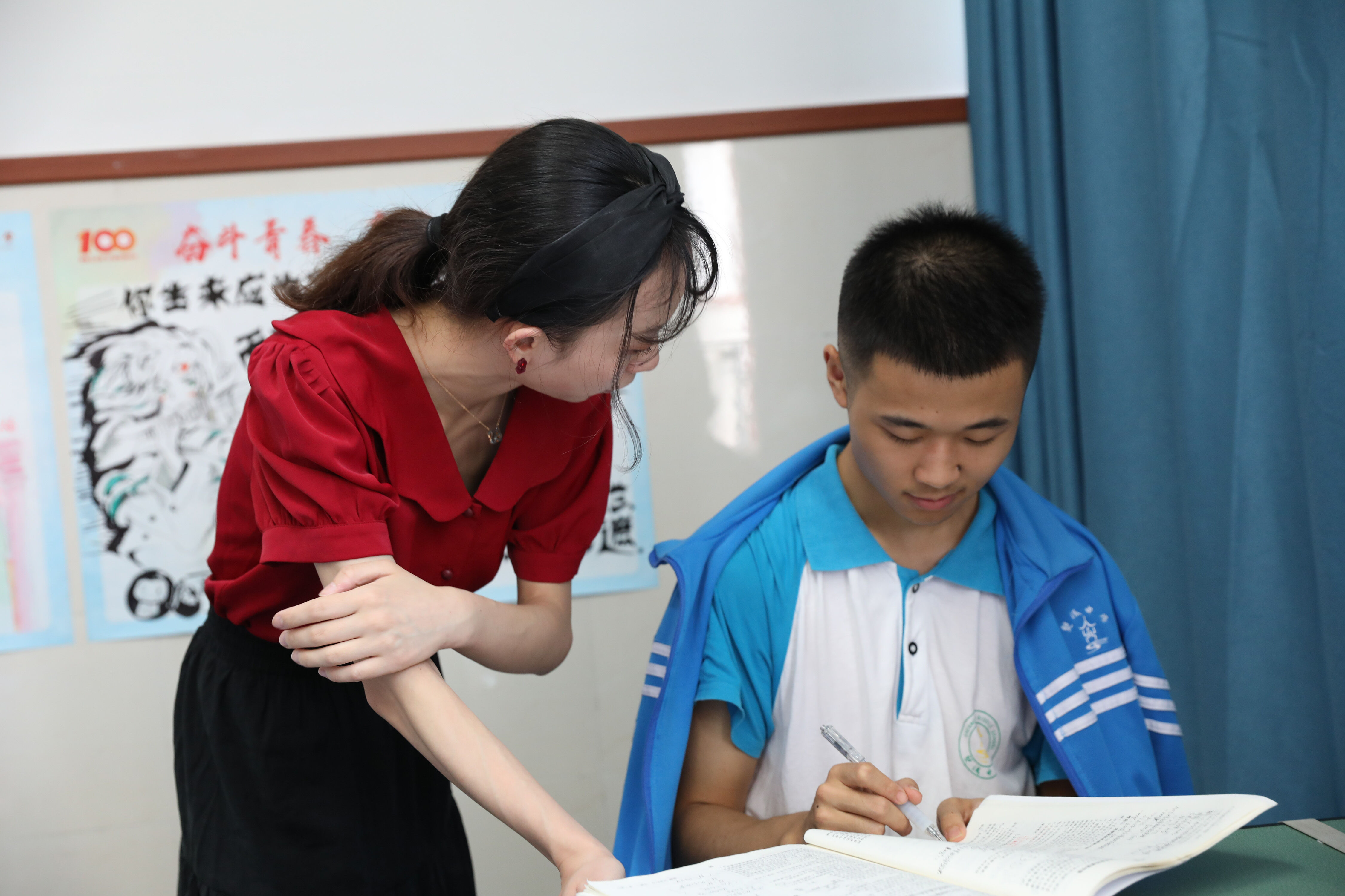 2022年6月6日上午,高考倒計時1天!物理教師楊欽在教室為陪伴10班的學(xué)生。