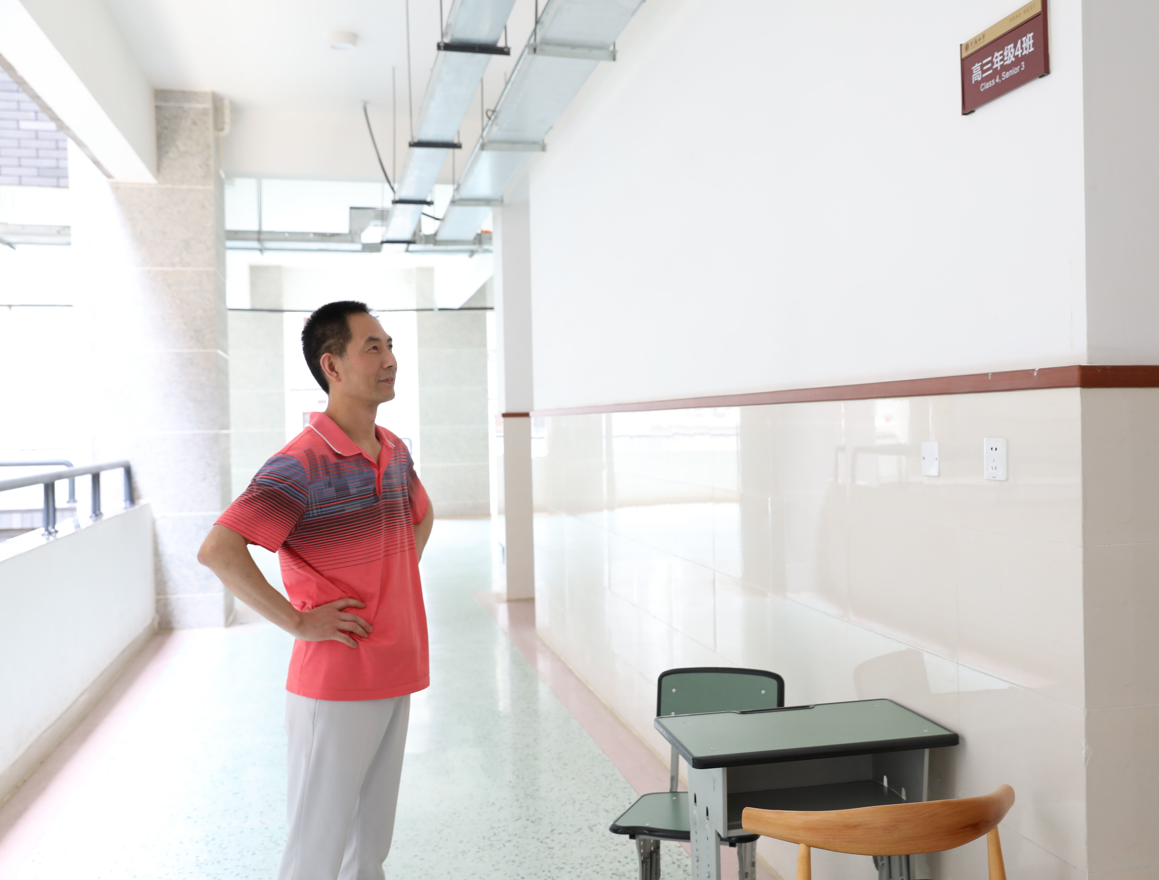 2022年6月6日中午,李勇杰老師站在教室外,看著自己班教室,