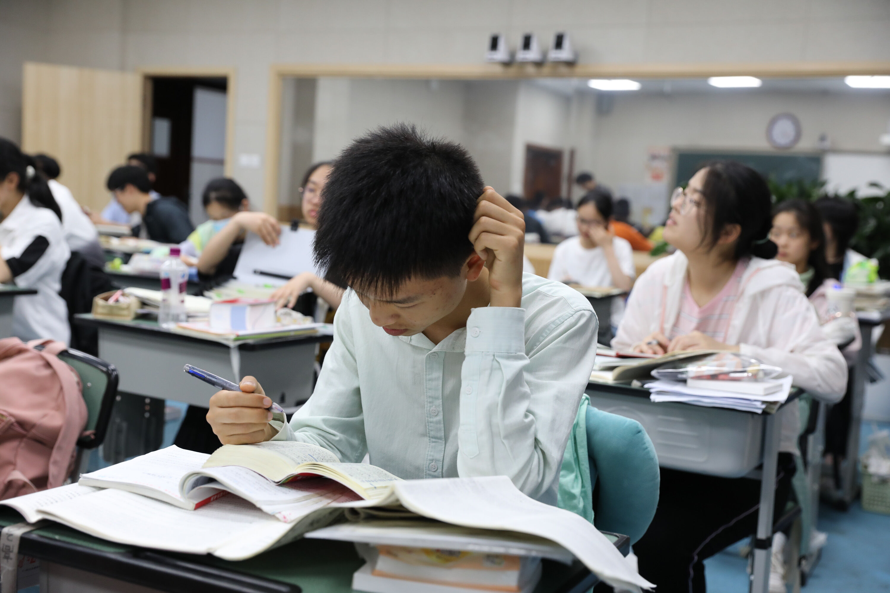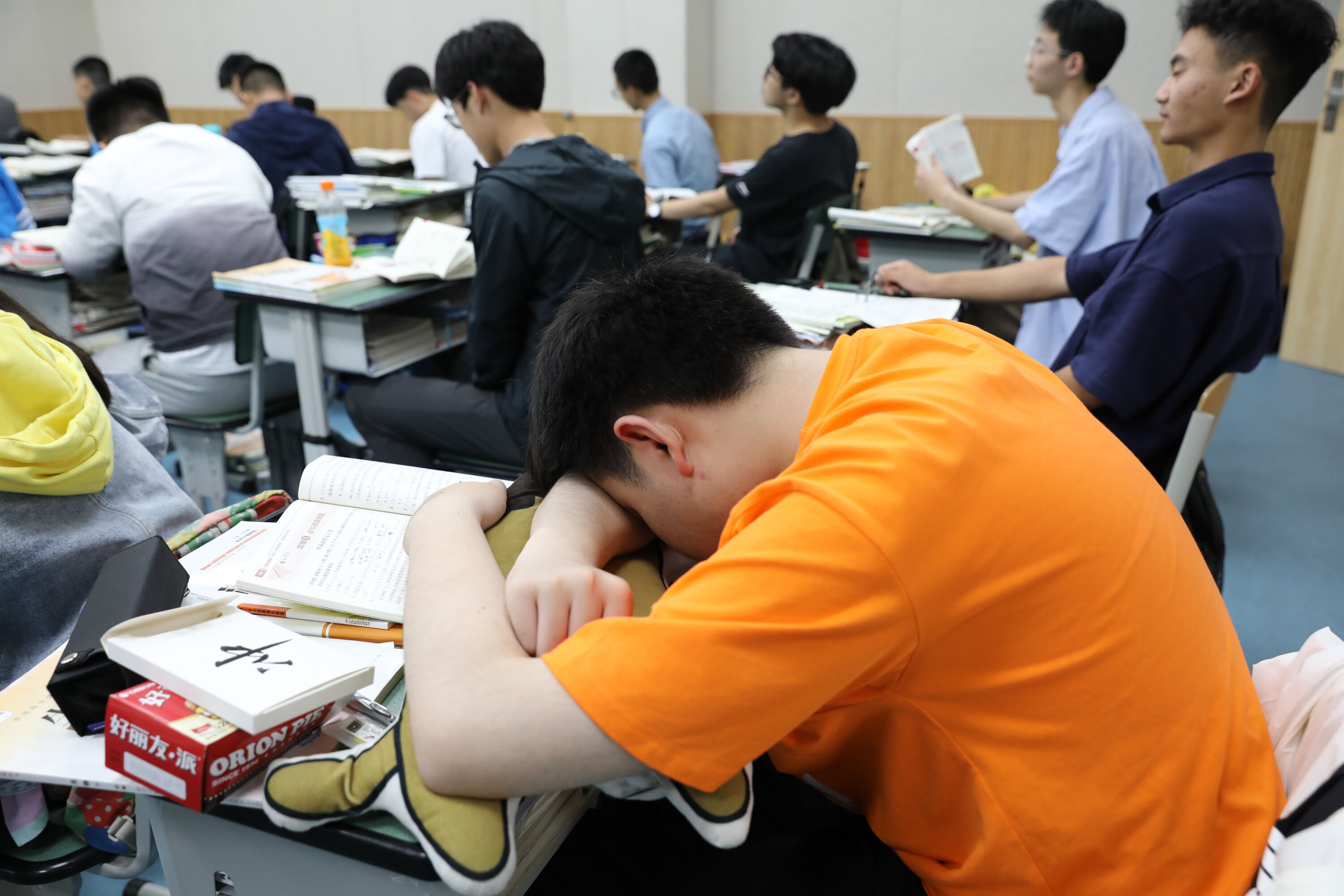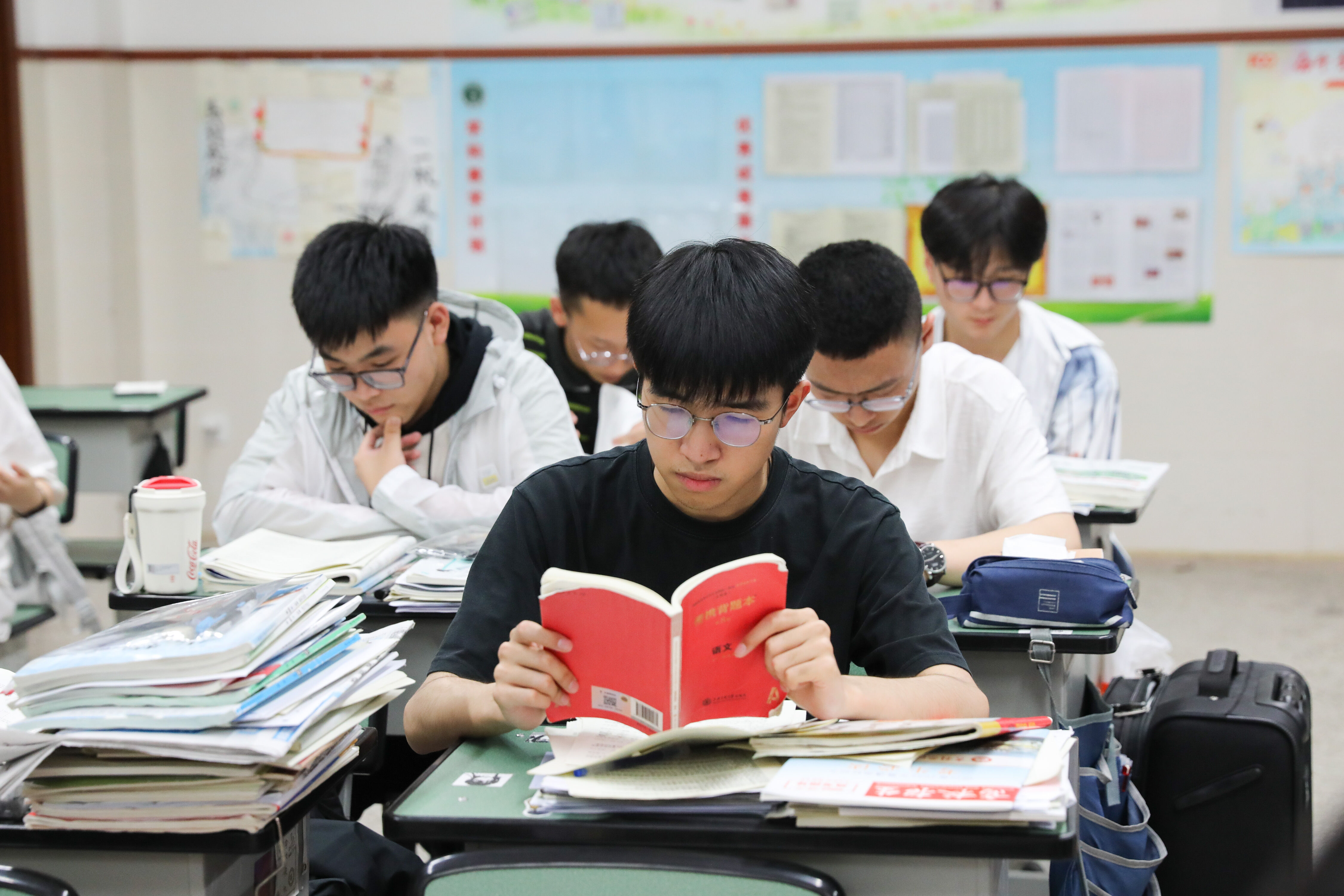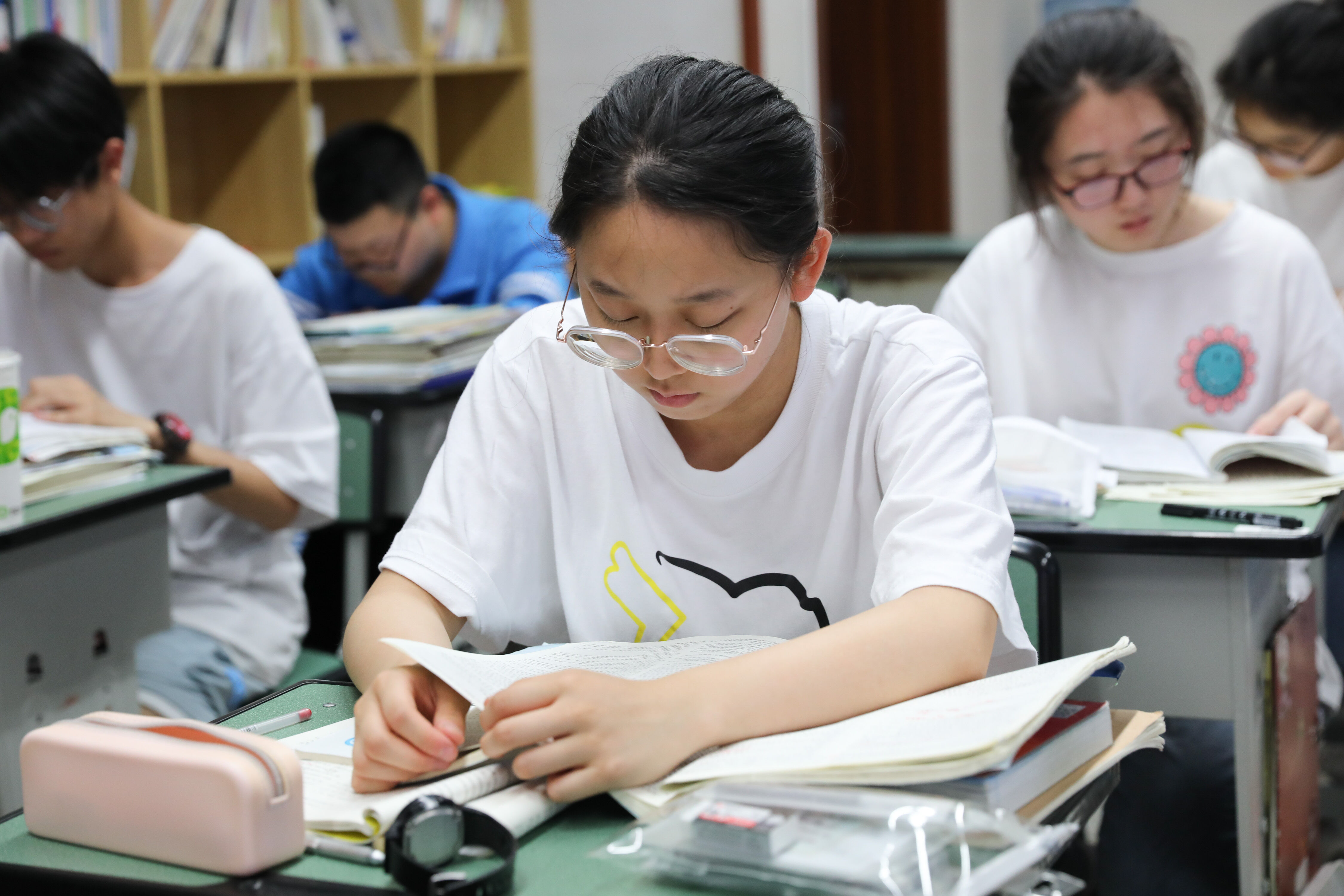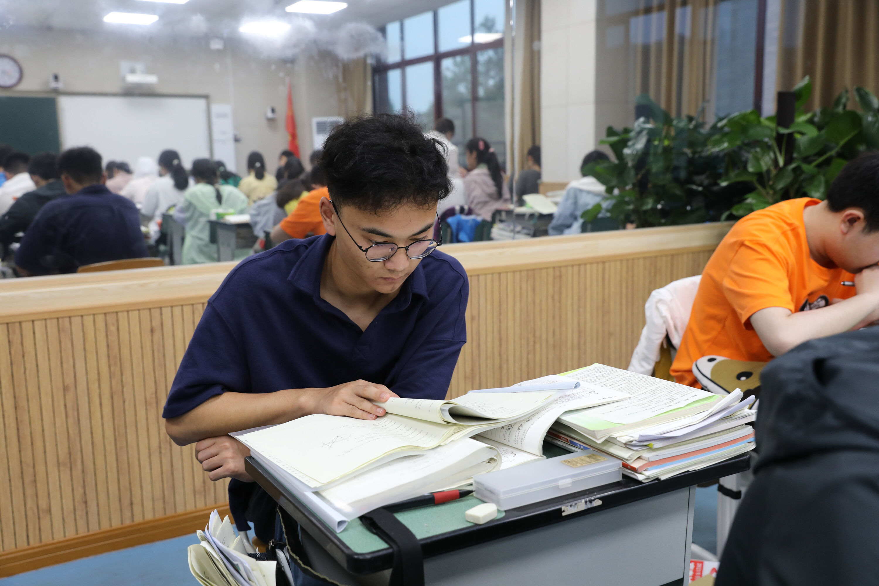 2022年6月6日晚,高考前最后1次晚自習(xí),高三學(xué)生在認(rèn)真復(fù)習(xí)。倒計(jì)時(shí)01即將翻篇