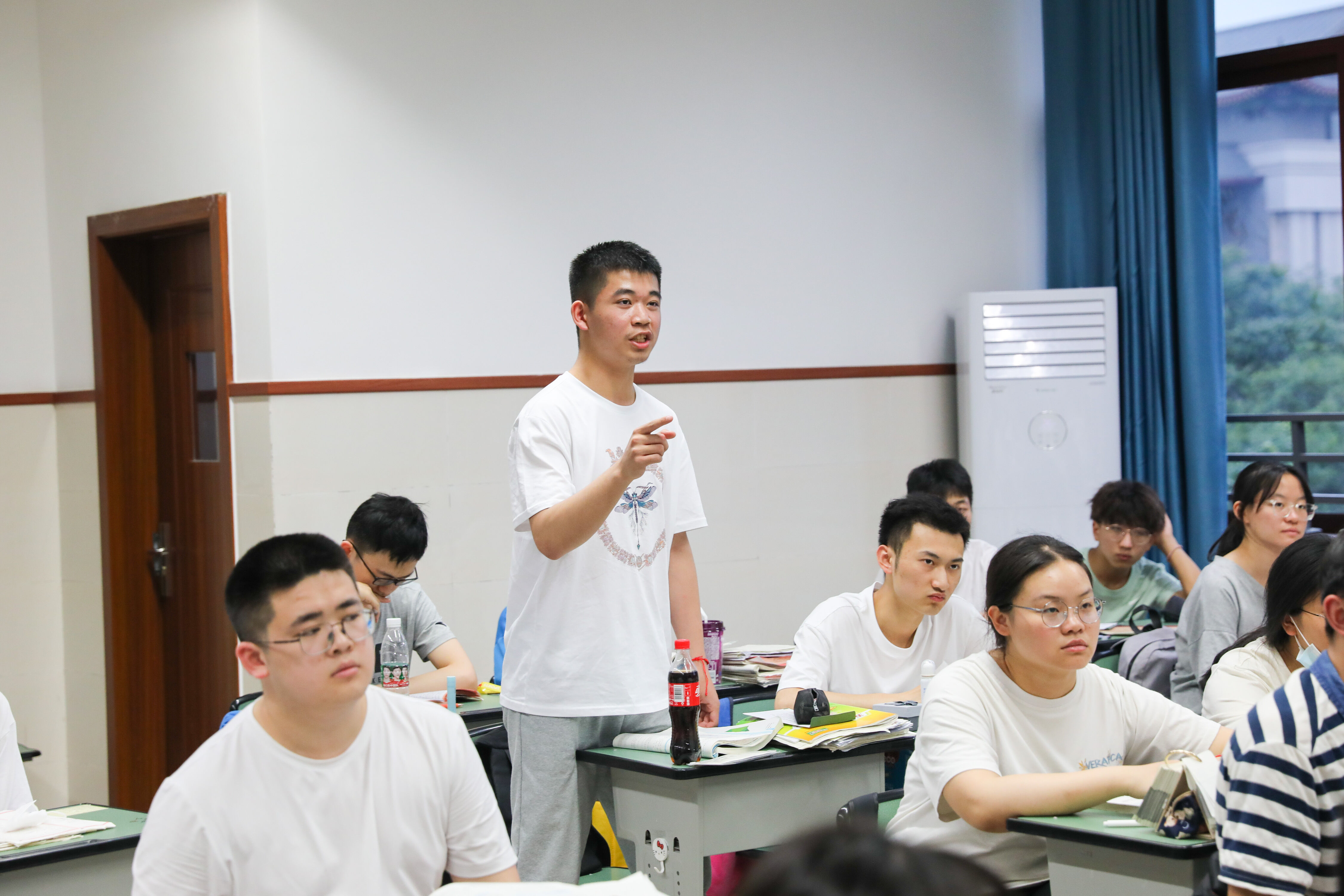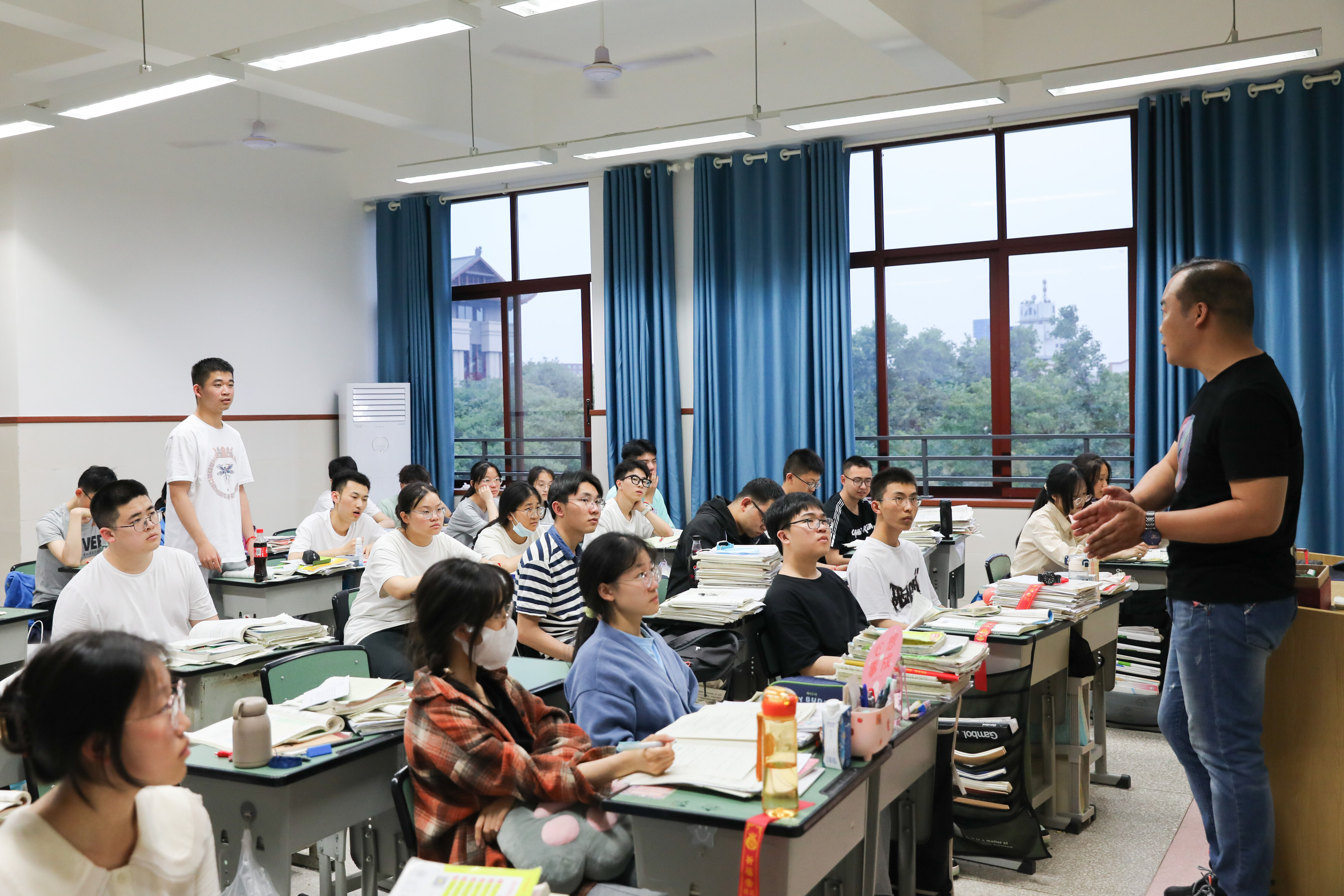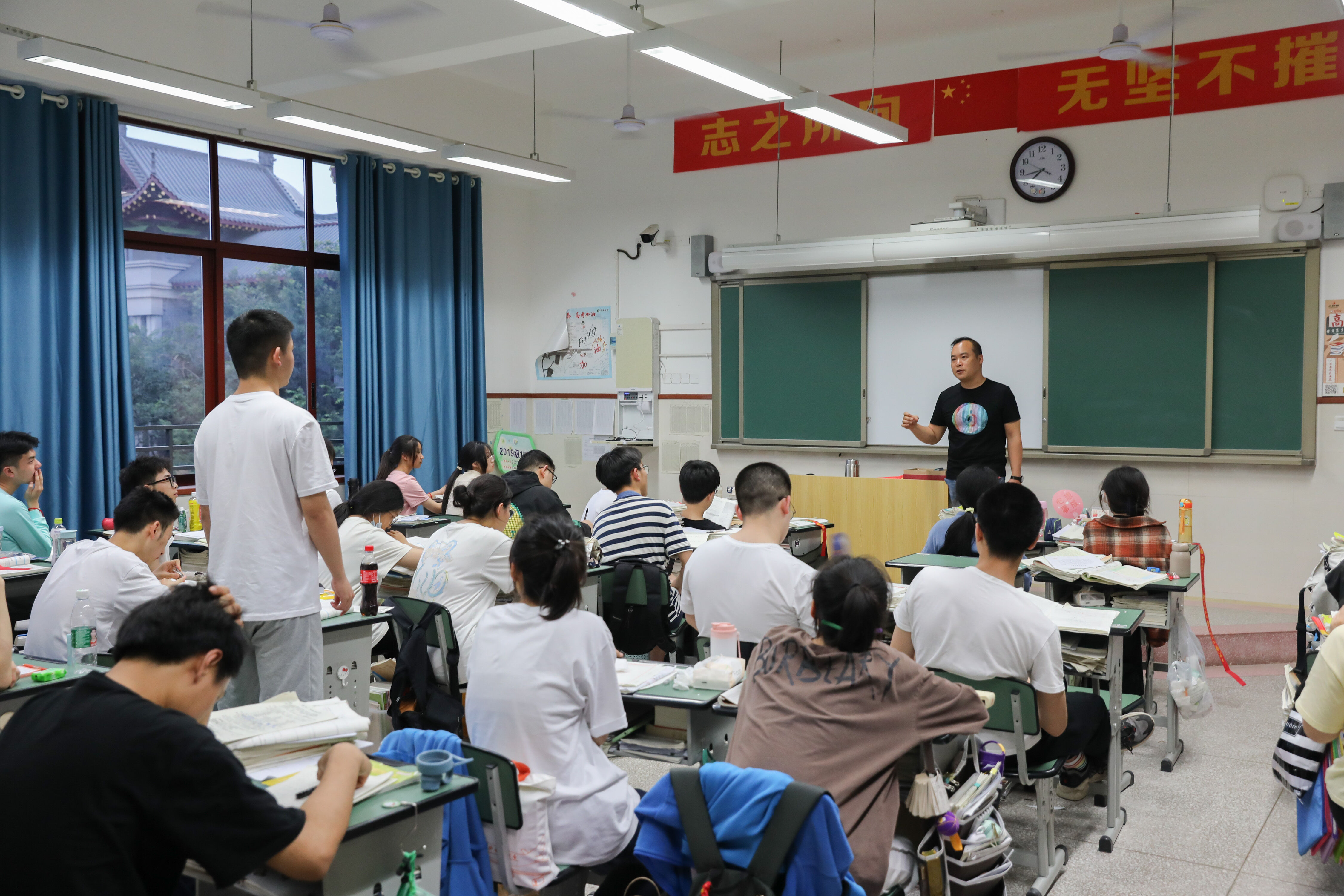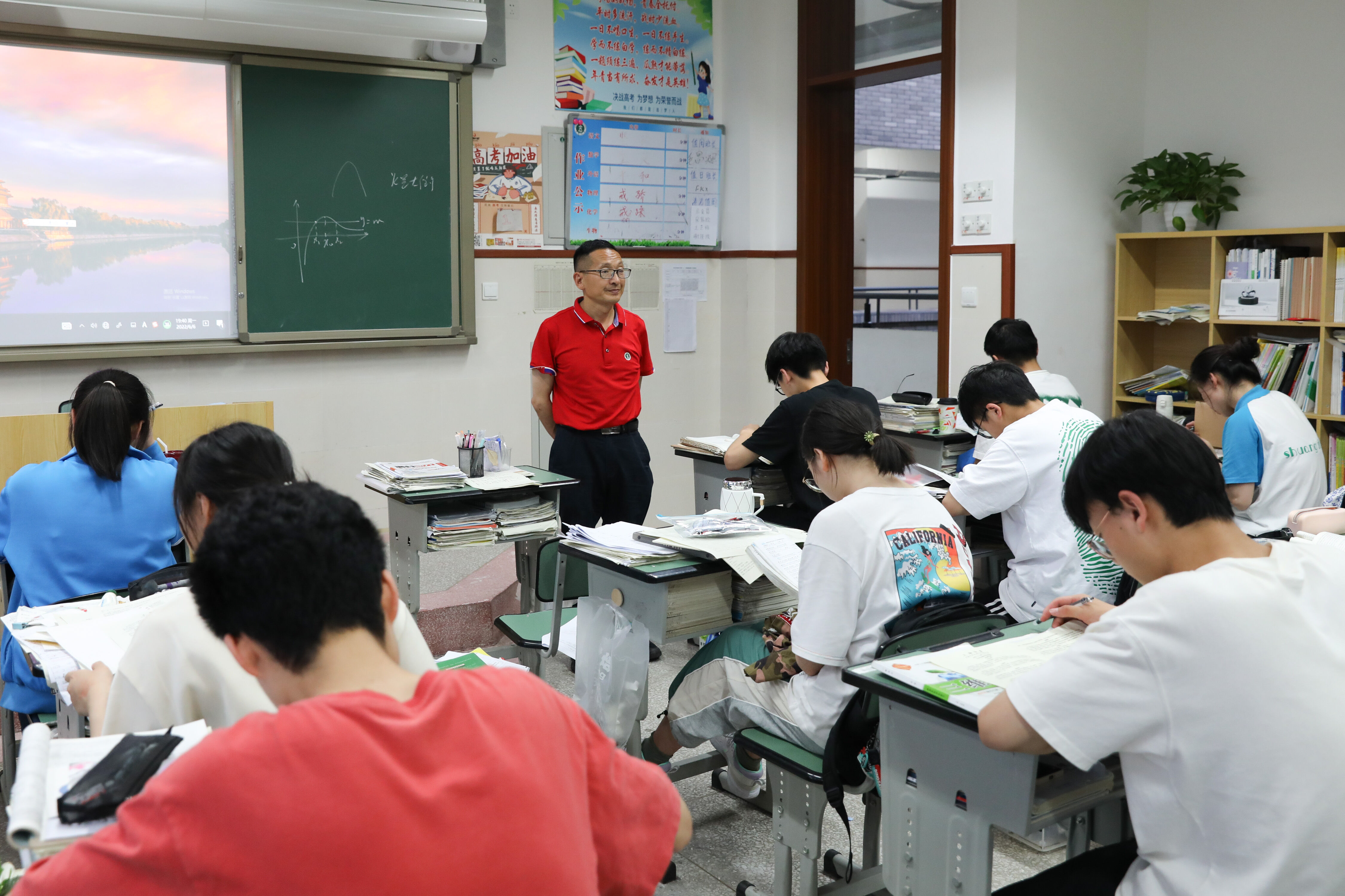 2022年6月6日晚,高三高考前最后1次晚自習(xí),數(shù)學(xué)老師鄧明和學(xué)生討論明天高考中可能遇到的問題。