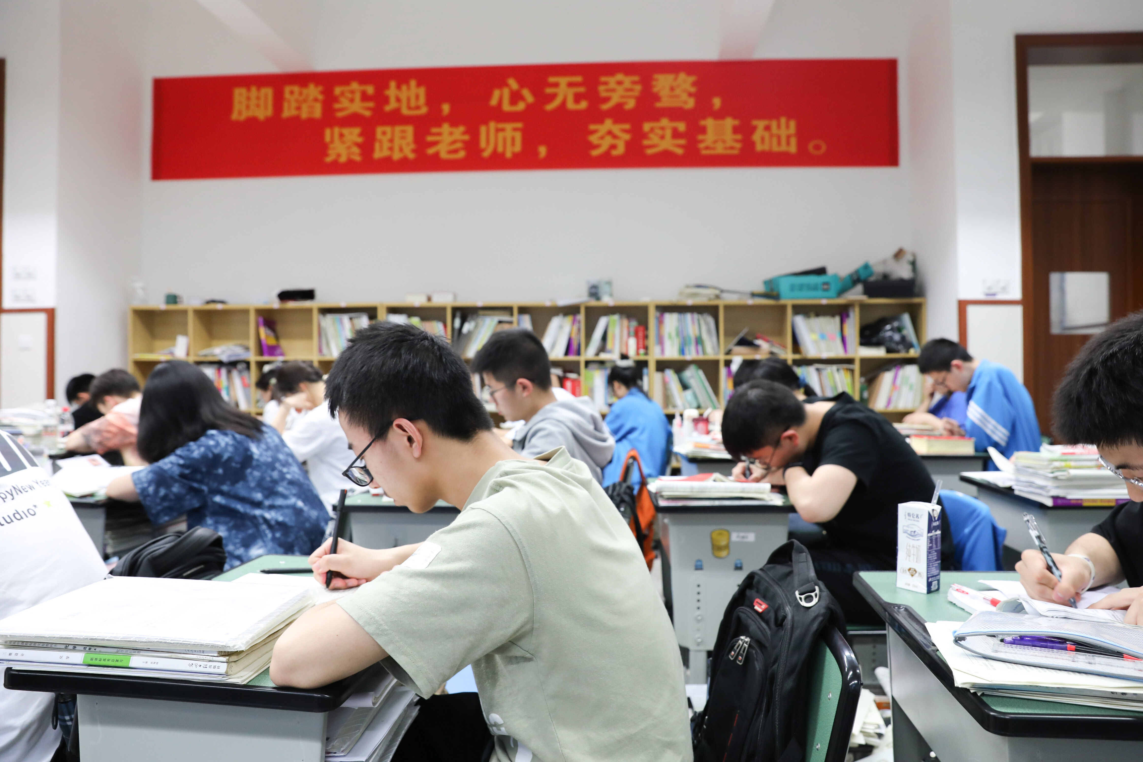 2022年6月6日晚,高考前最后1次晚自習(xí),高三學(xué)生在認(rèn)真復(fù)習(xí)。墻上的標(biāo)語是你們的真實(shí)寫照,奮斗的你們最美!