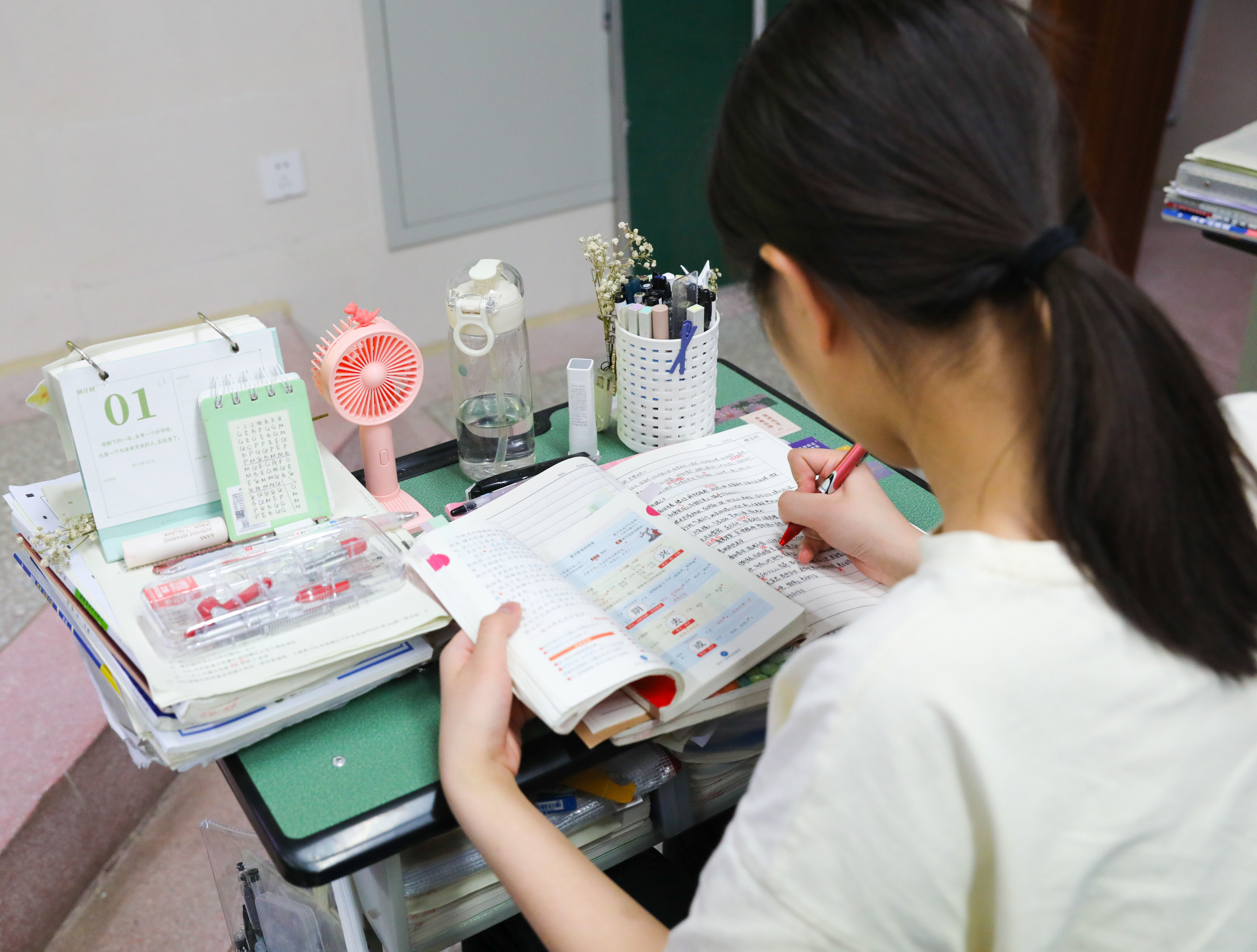 2022年6月6日晚,高三1班高考前最后1次晚自習(xí),葉茜蕾同學(xué)在認(rèn)真復(fù)習(xí)。