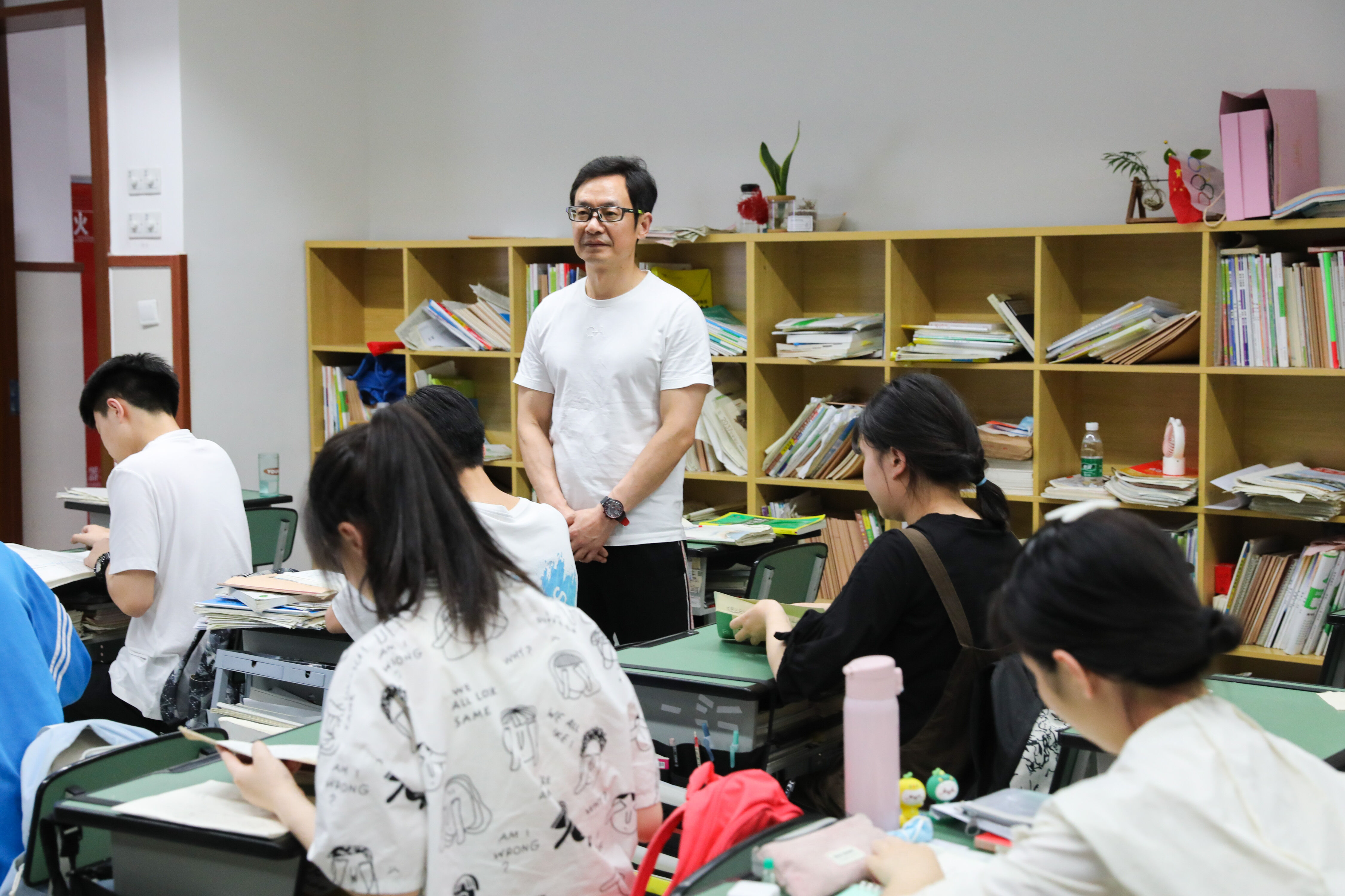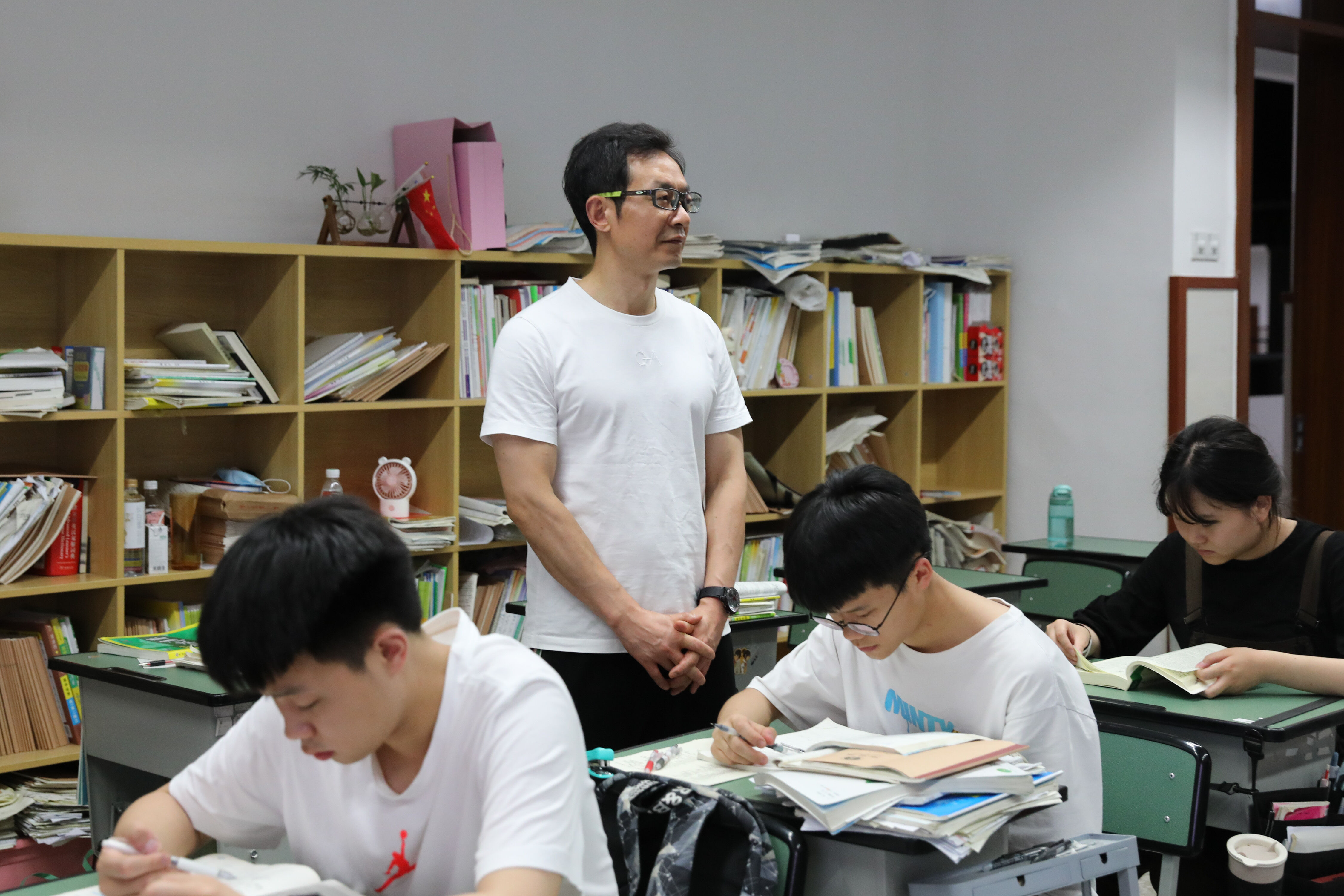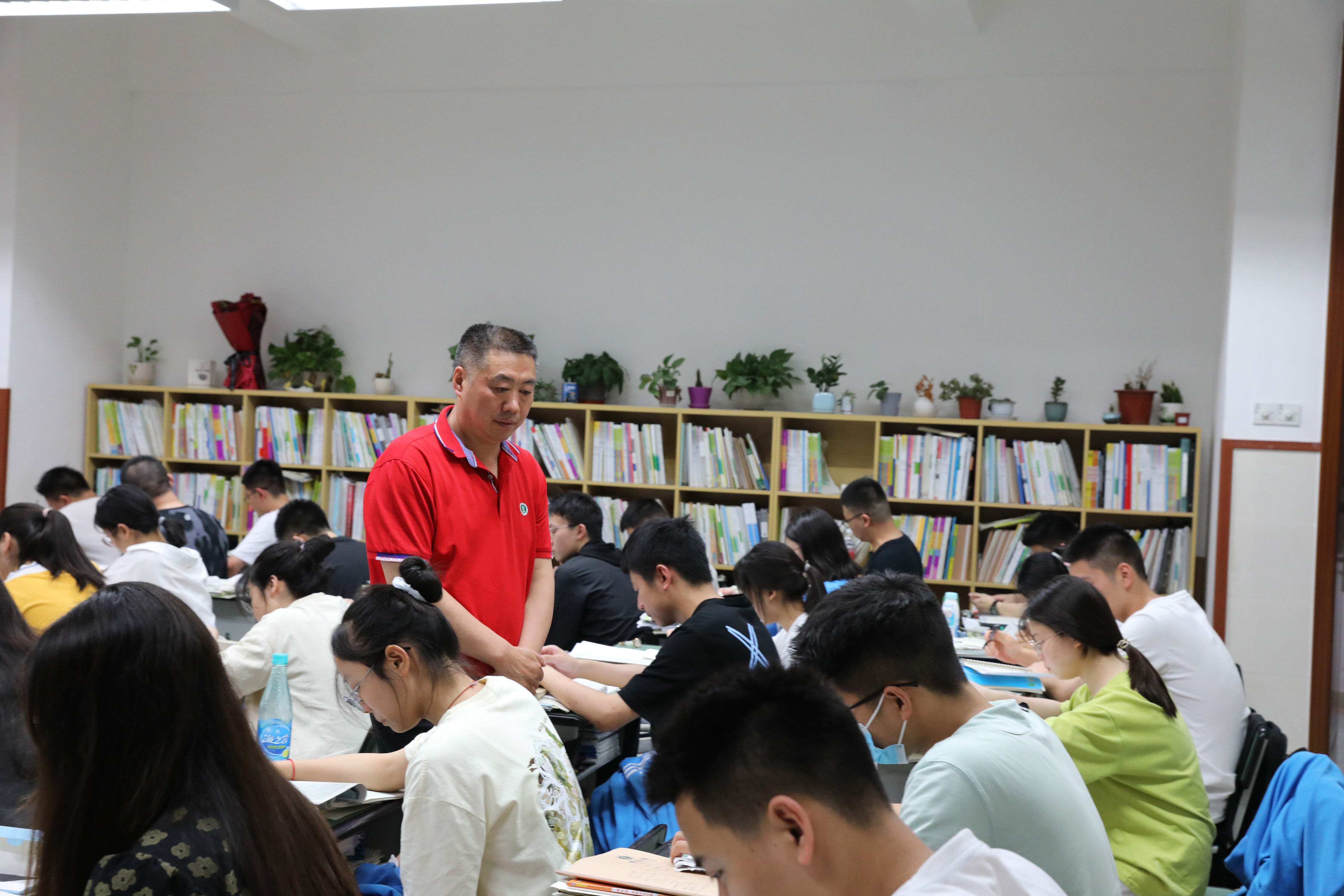 2022年6月6日晚,高三高考前最后1次晚自習(xí),班主任張紹斌陪伴學(xué)生復(fù)習(xí)。