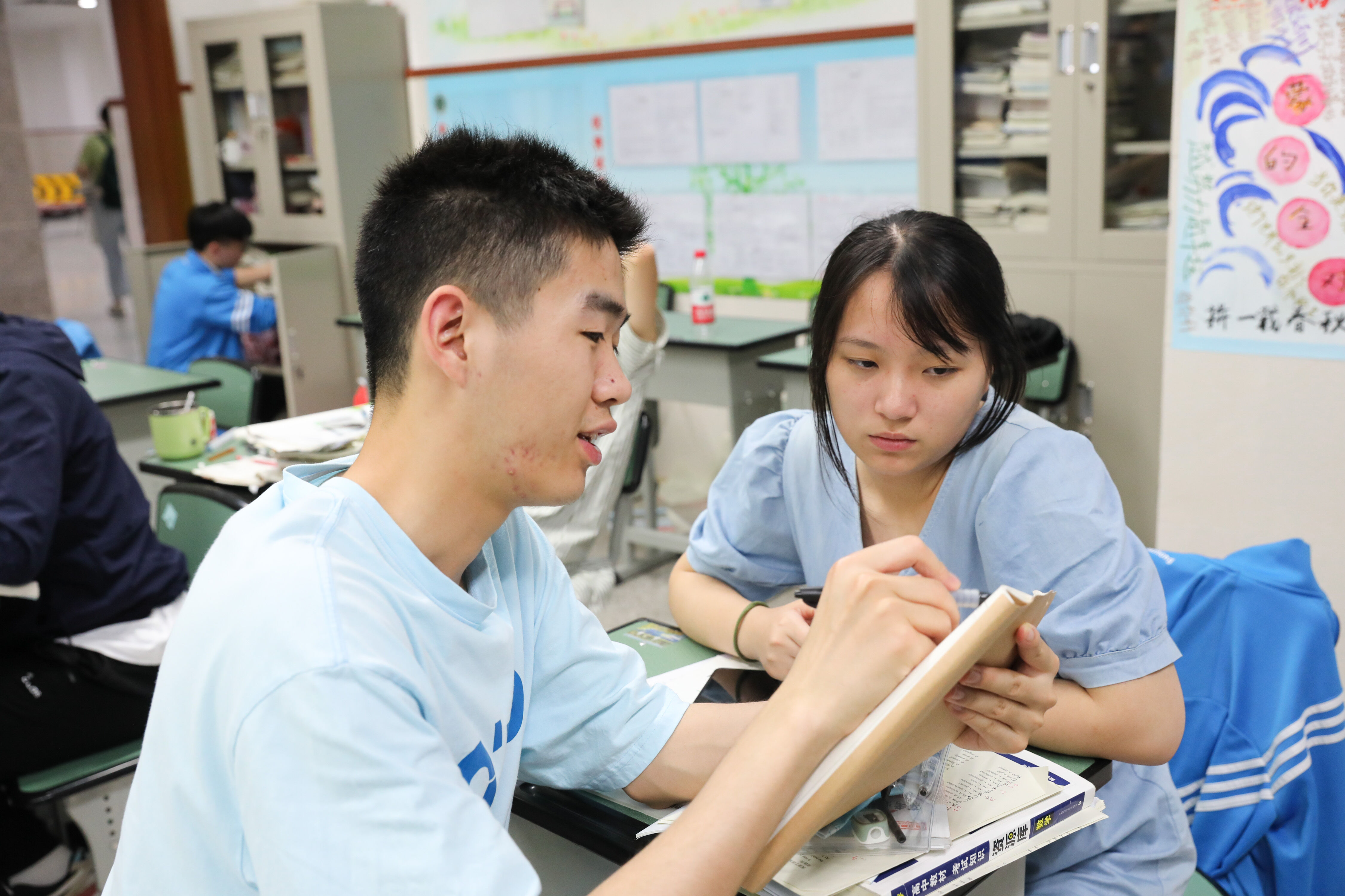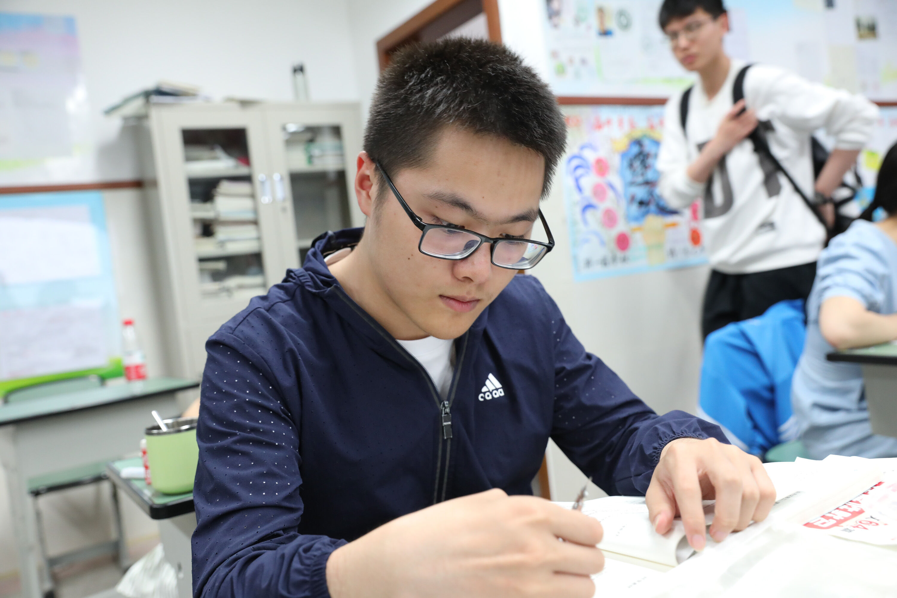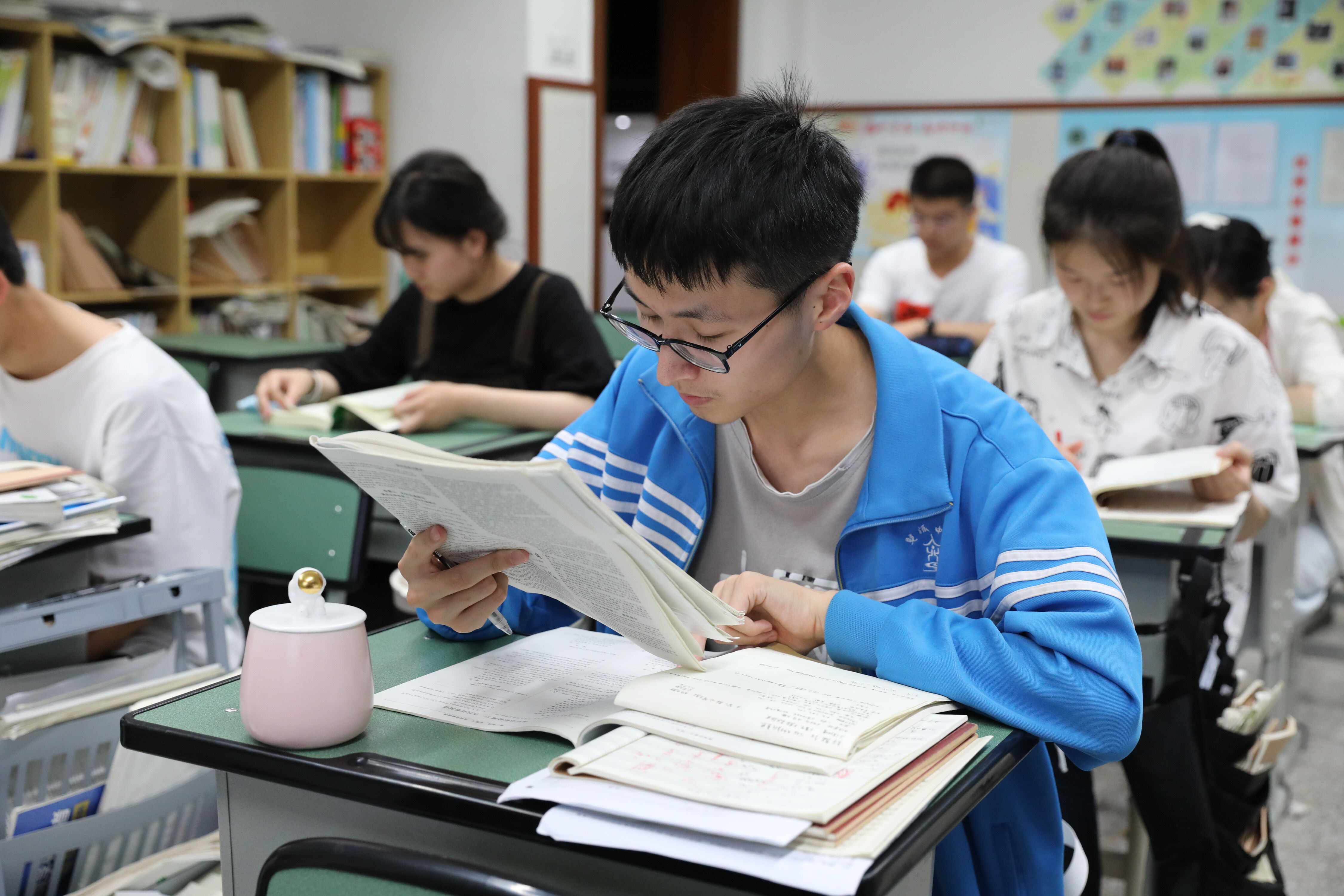 2022年6月6日晚,高三高考前最后1次晚自習(xí),班主任張紹斌陪伴學(xué)生復(fù)習(xí)。