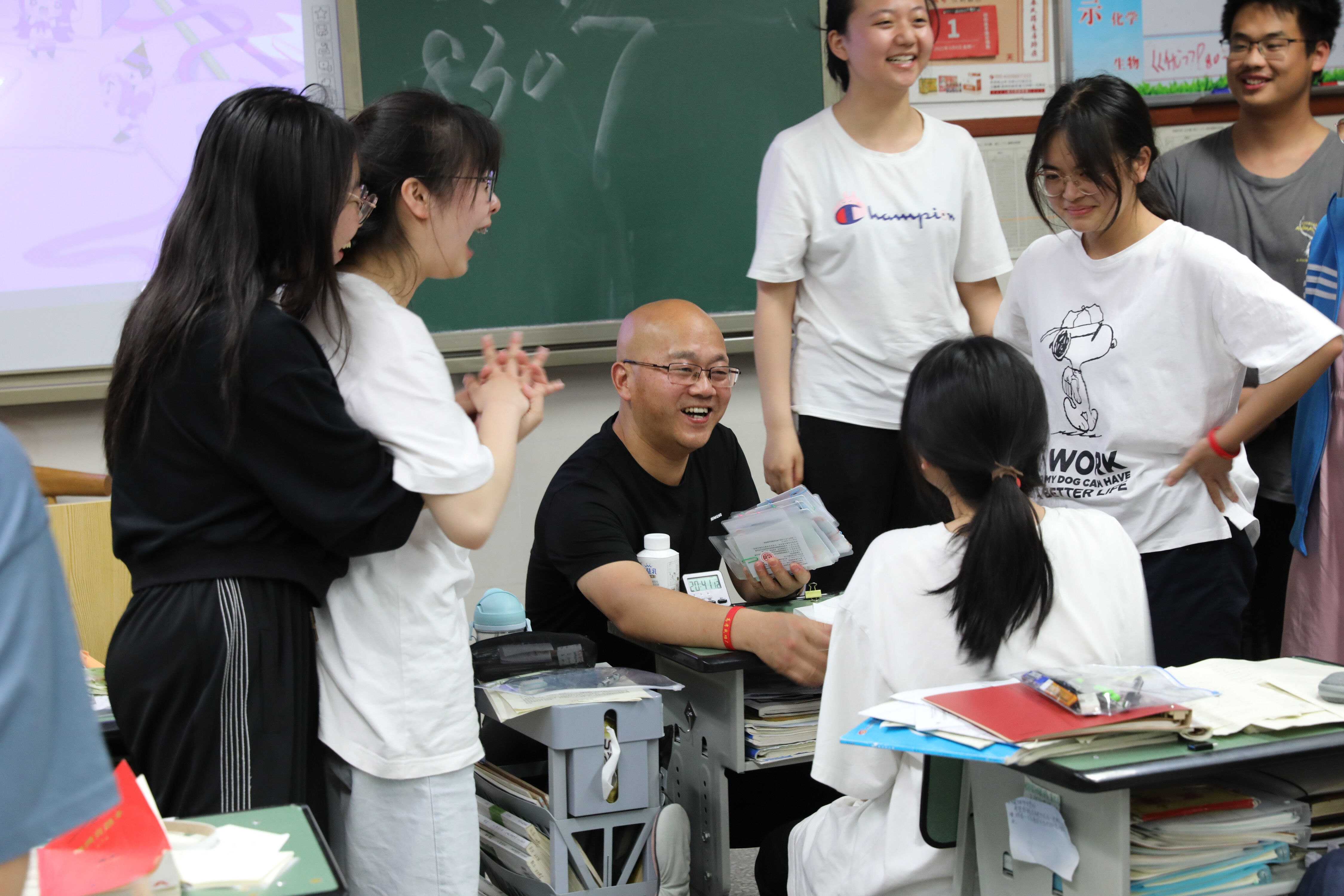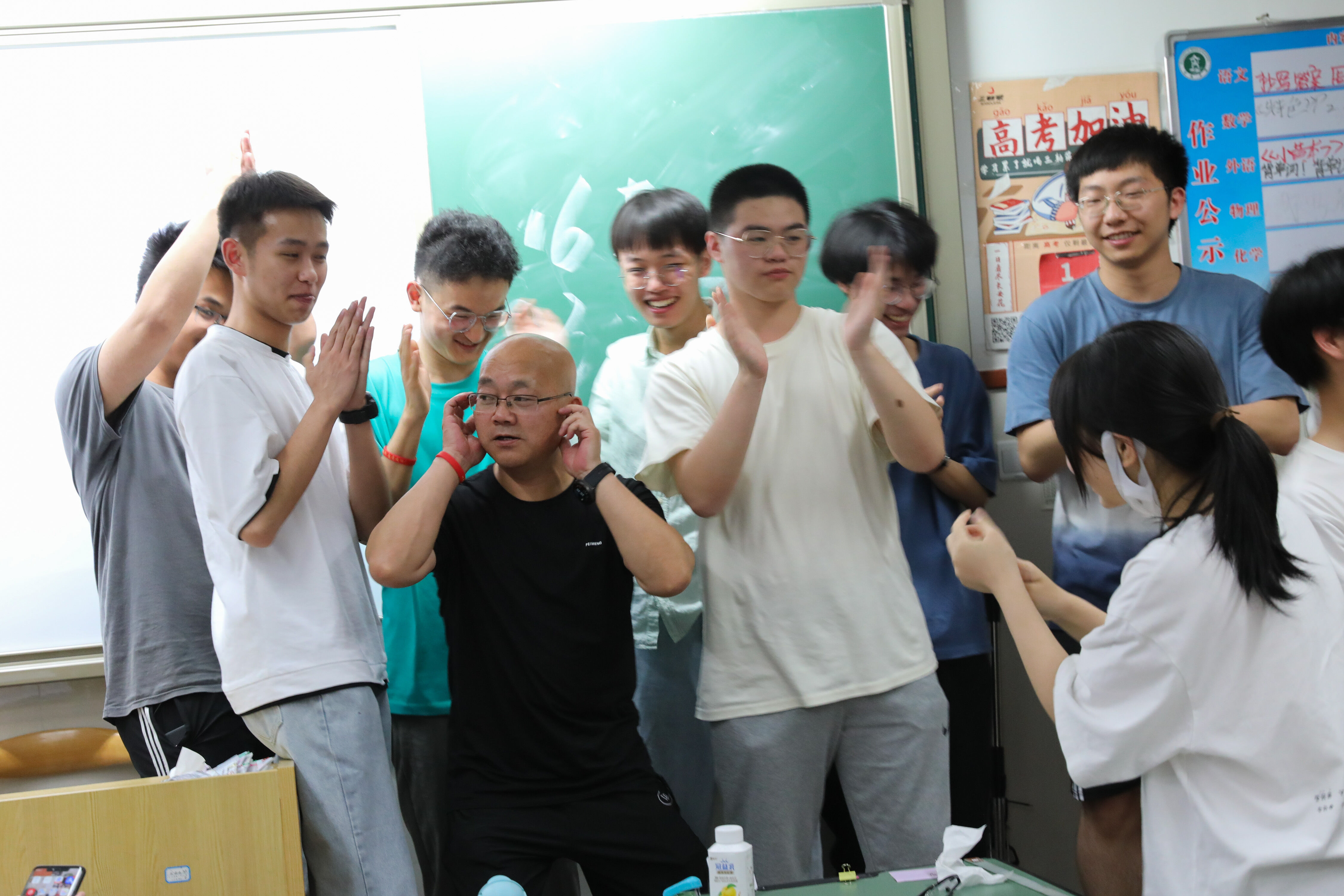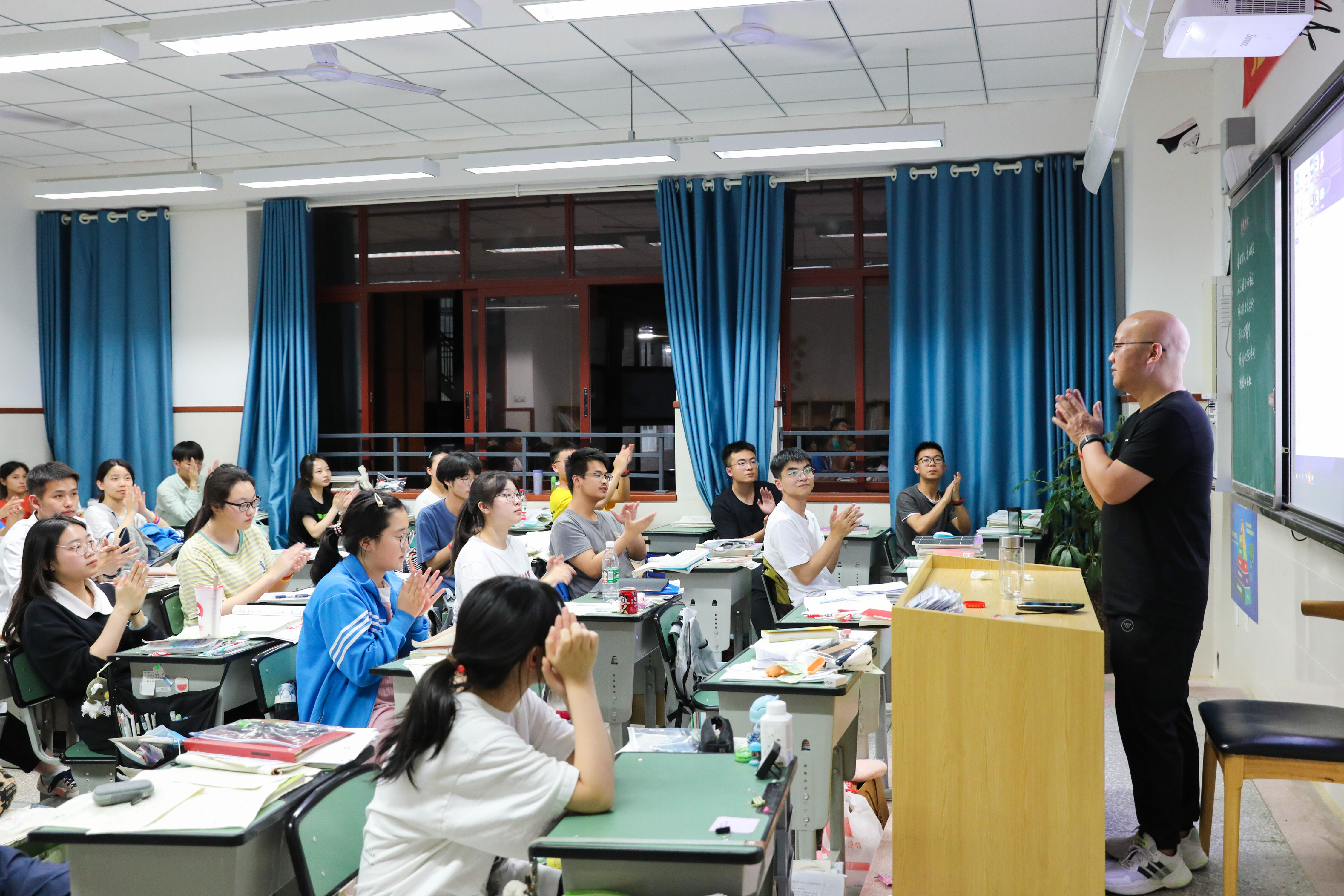 2022年6月6日晚,高三高考前最后1次晚自習(xí)快結(jié)束了,17班班主任張仕華老師給同學(xué)們解壓。下課時(shí),全班同學(xué)熱烈鼓掌,感謝張老師!