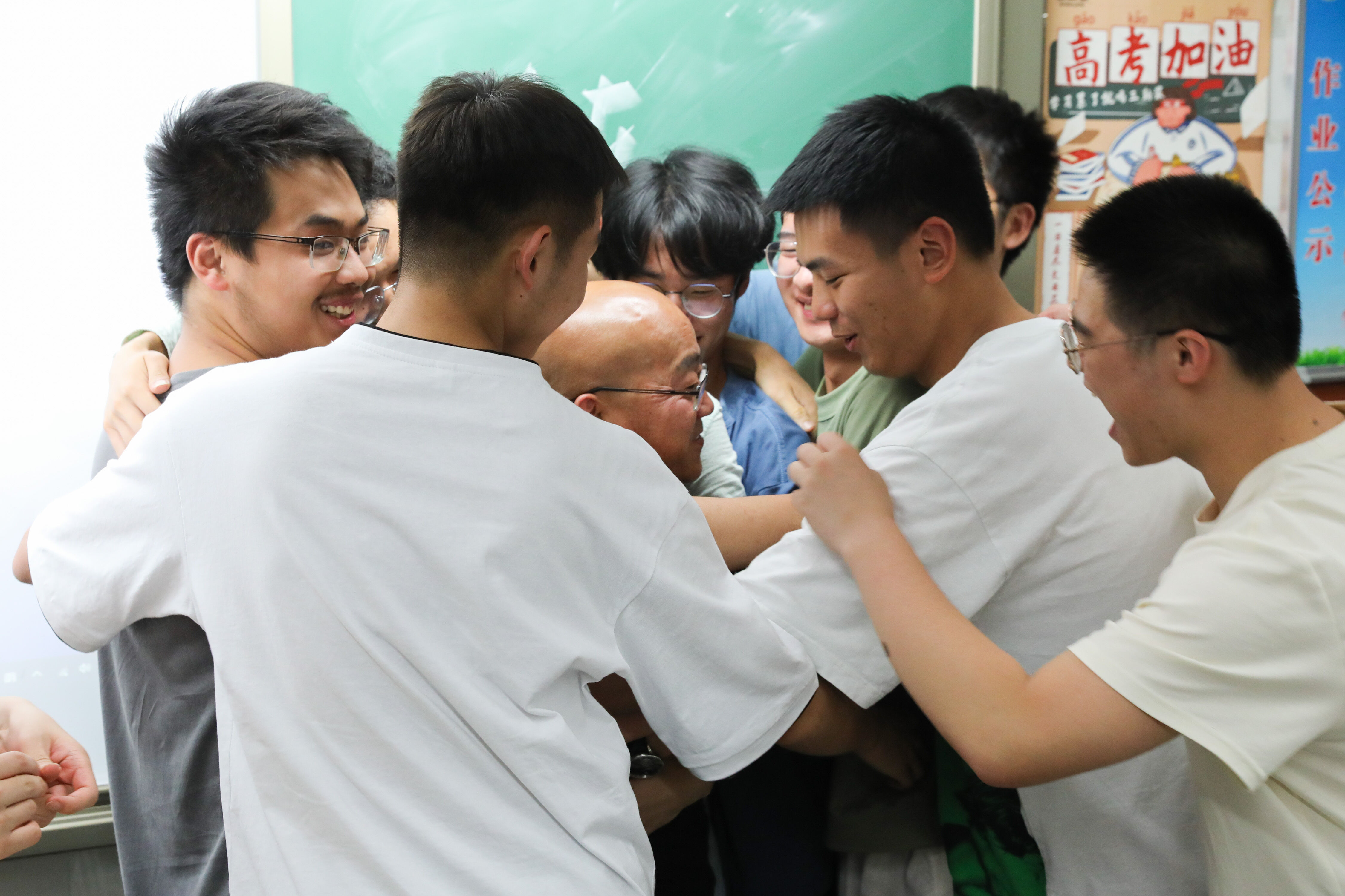 17班的男同學(xué)爭相擁抱張仕華老師。