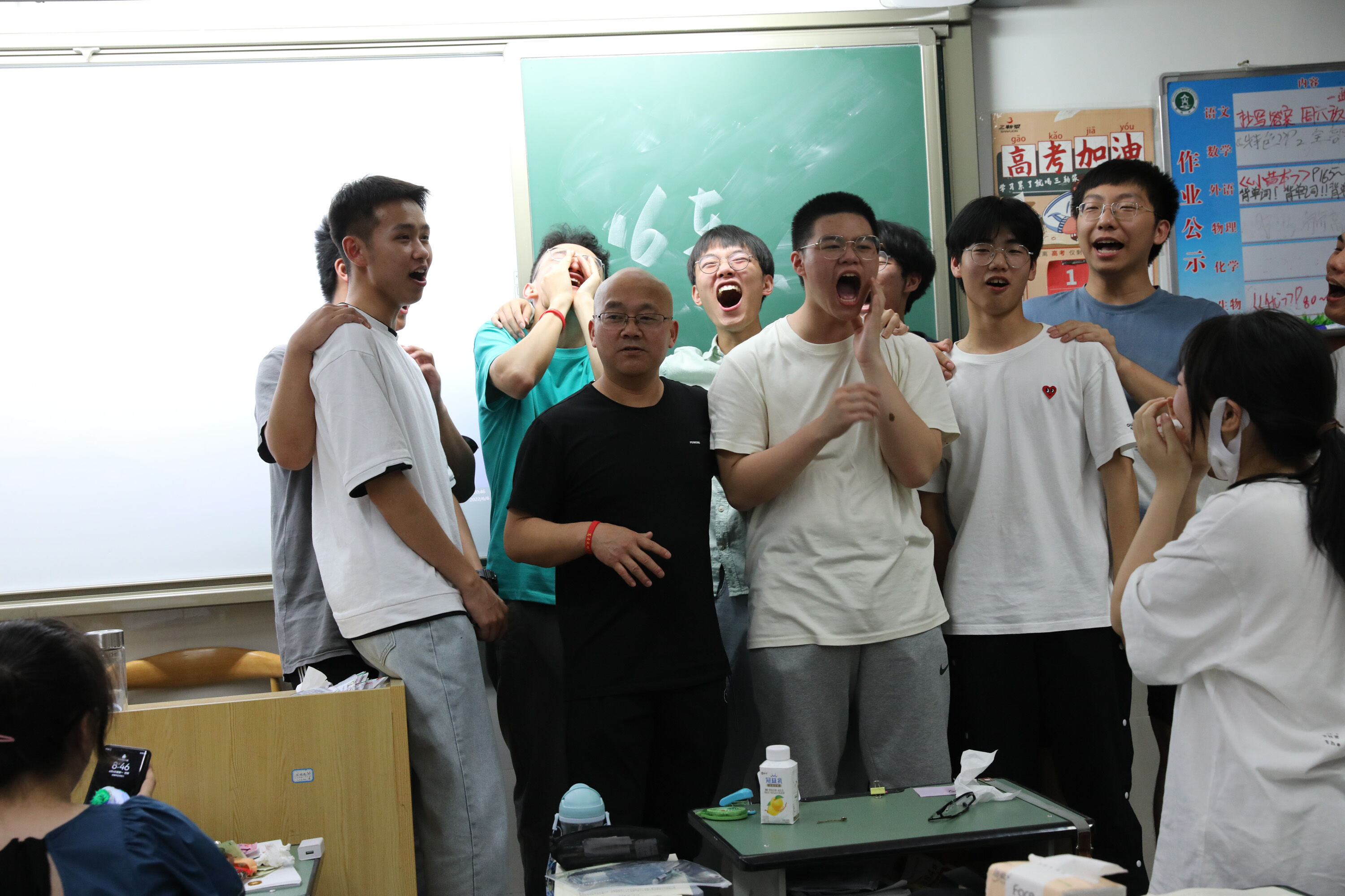2022年6月6日晚,高三高考前最后1次晚自習(xí)快結(jié)束了,17班班主任張仕華老師給同學(xué)們解壓。