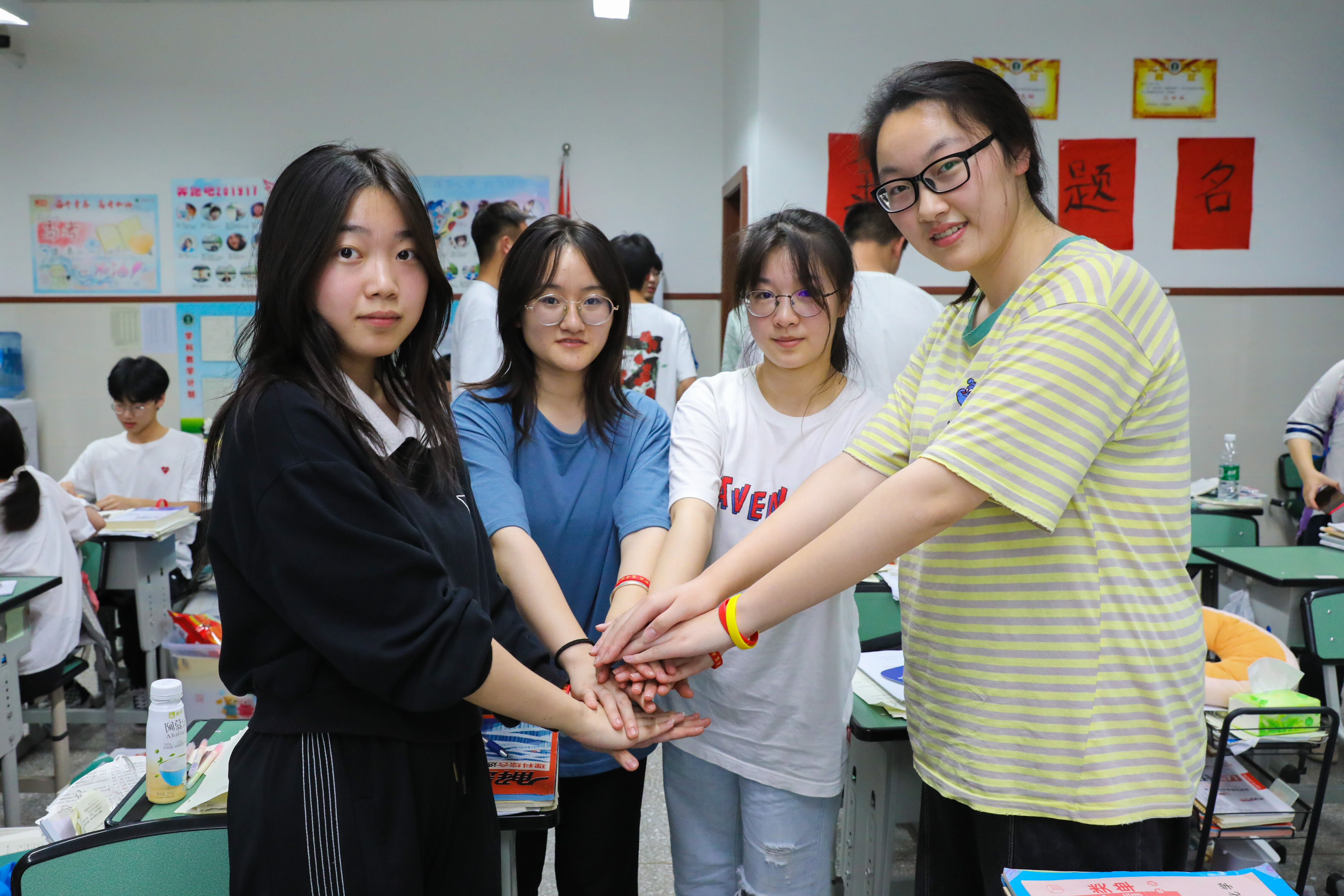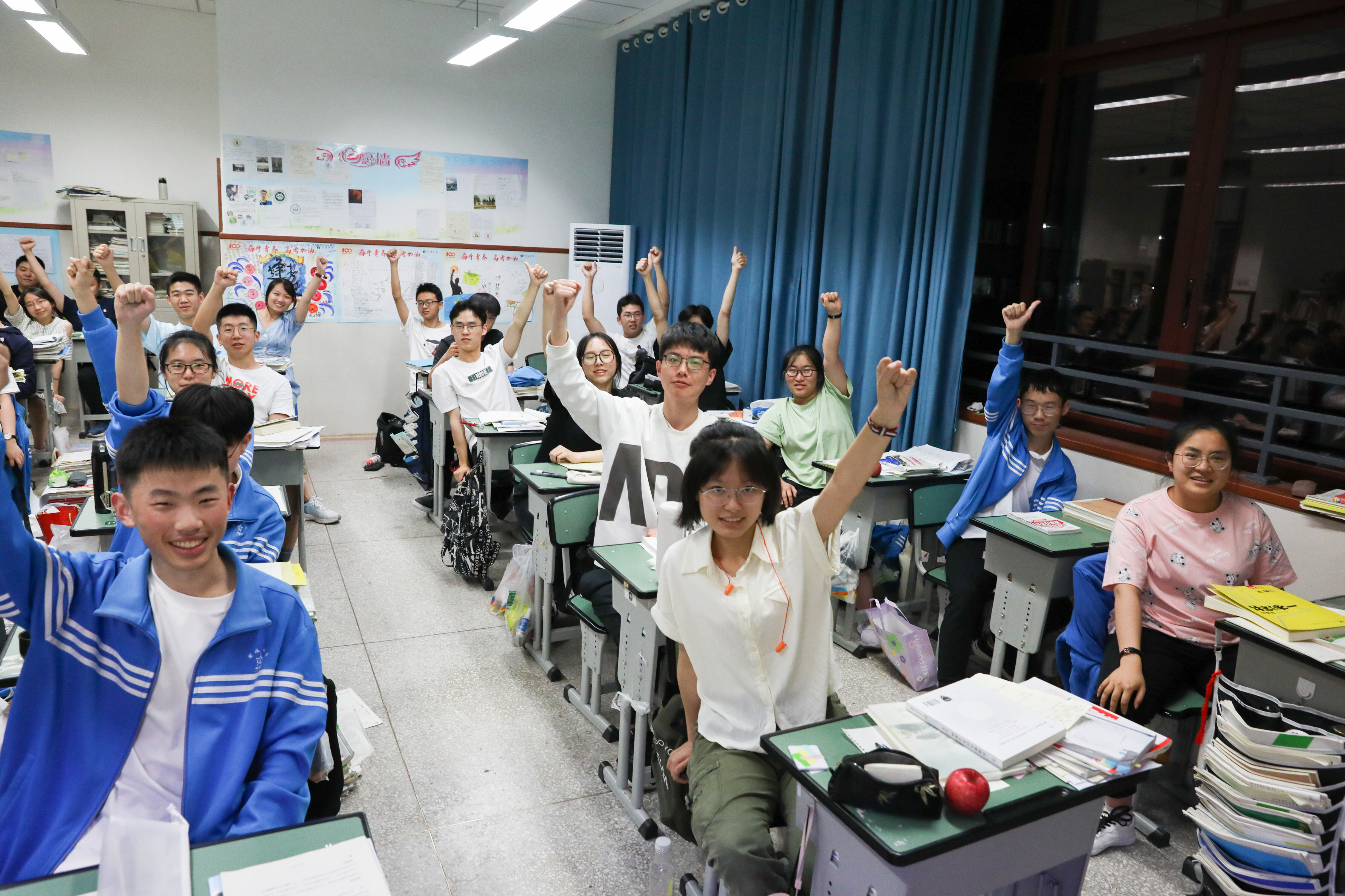 17班的學(xué)生在晚自習(xí)結(jié)束時(shí)一起加油!