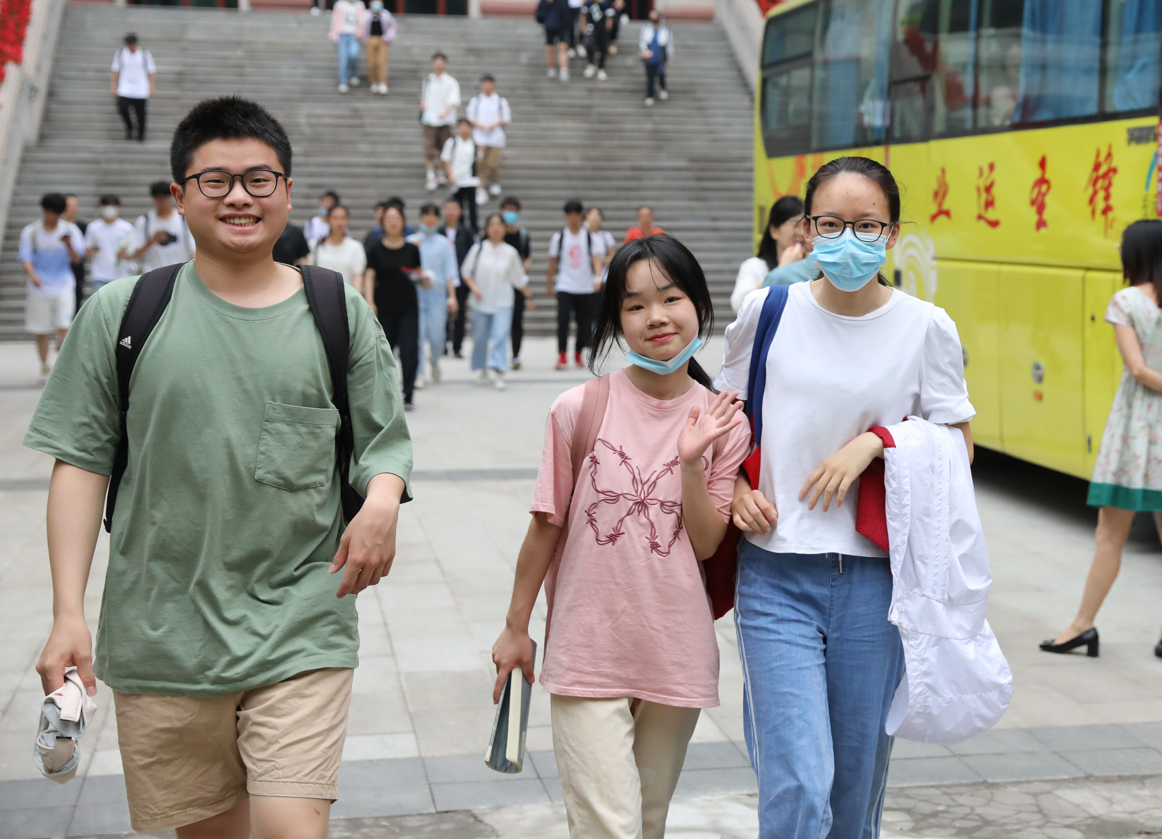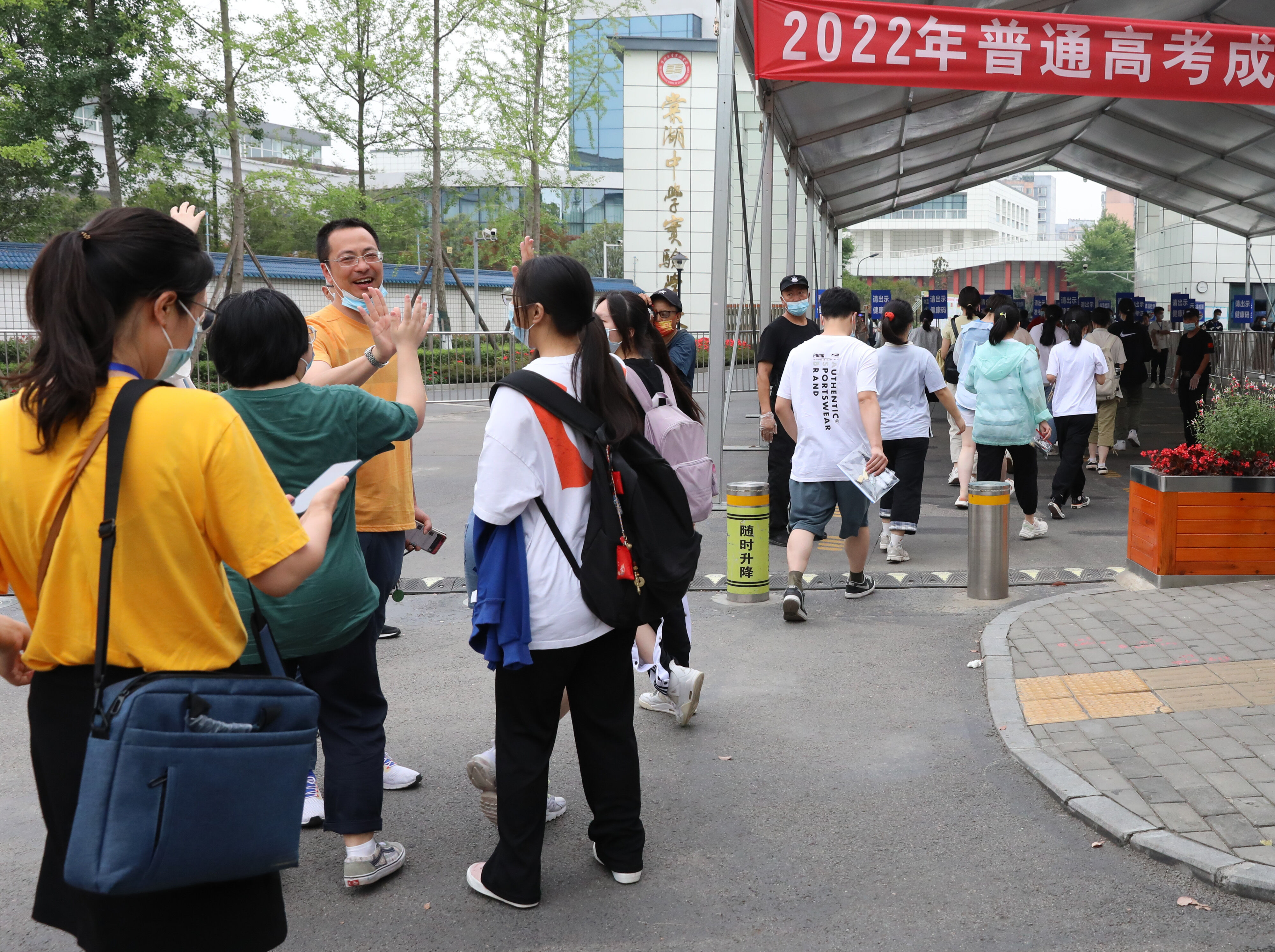 2022年6月8日早上,高三學(xué)生走出景賢樓,意氣風(fēng)發(fā),充滿自信,前往考場