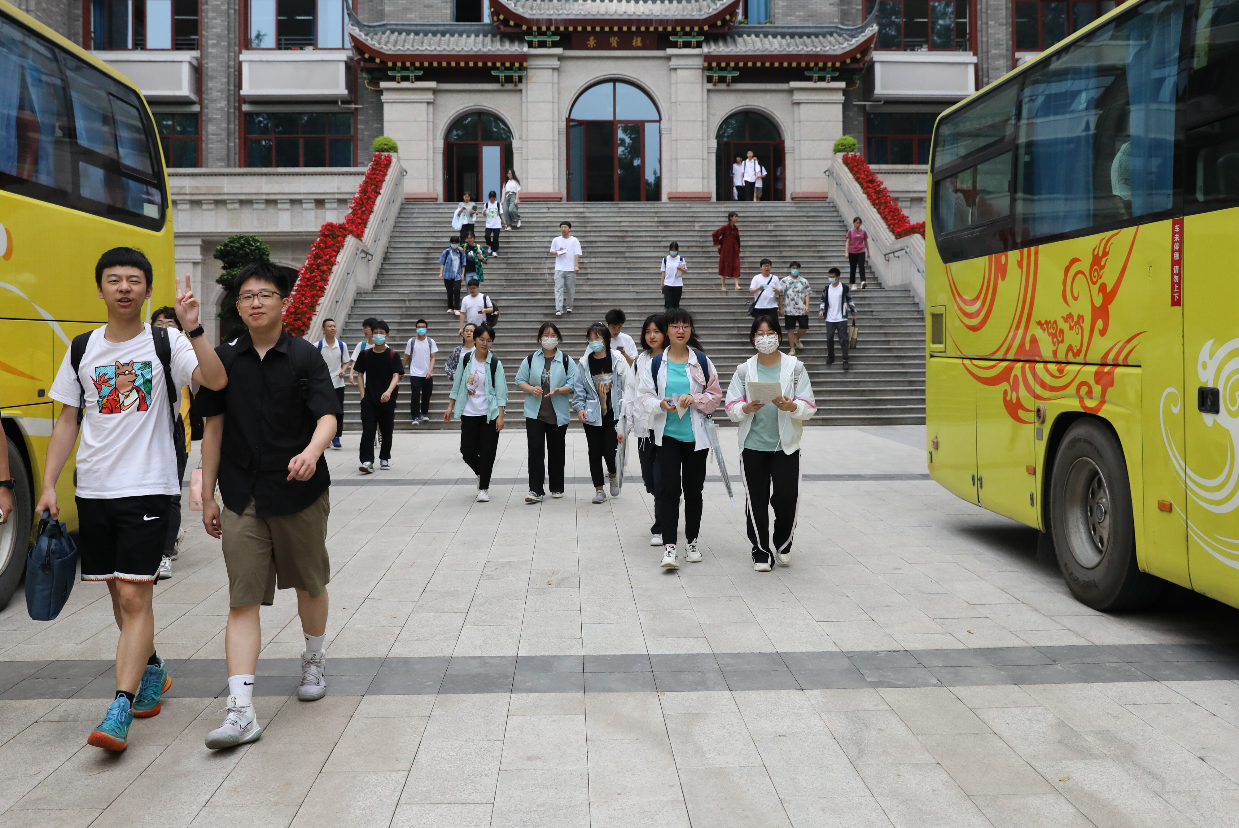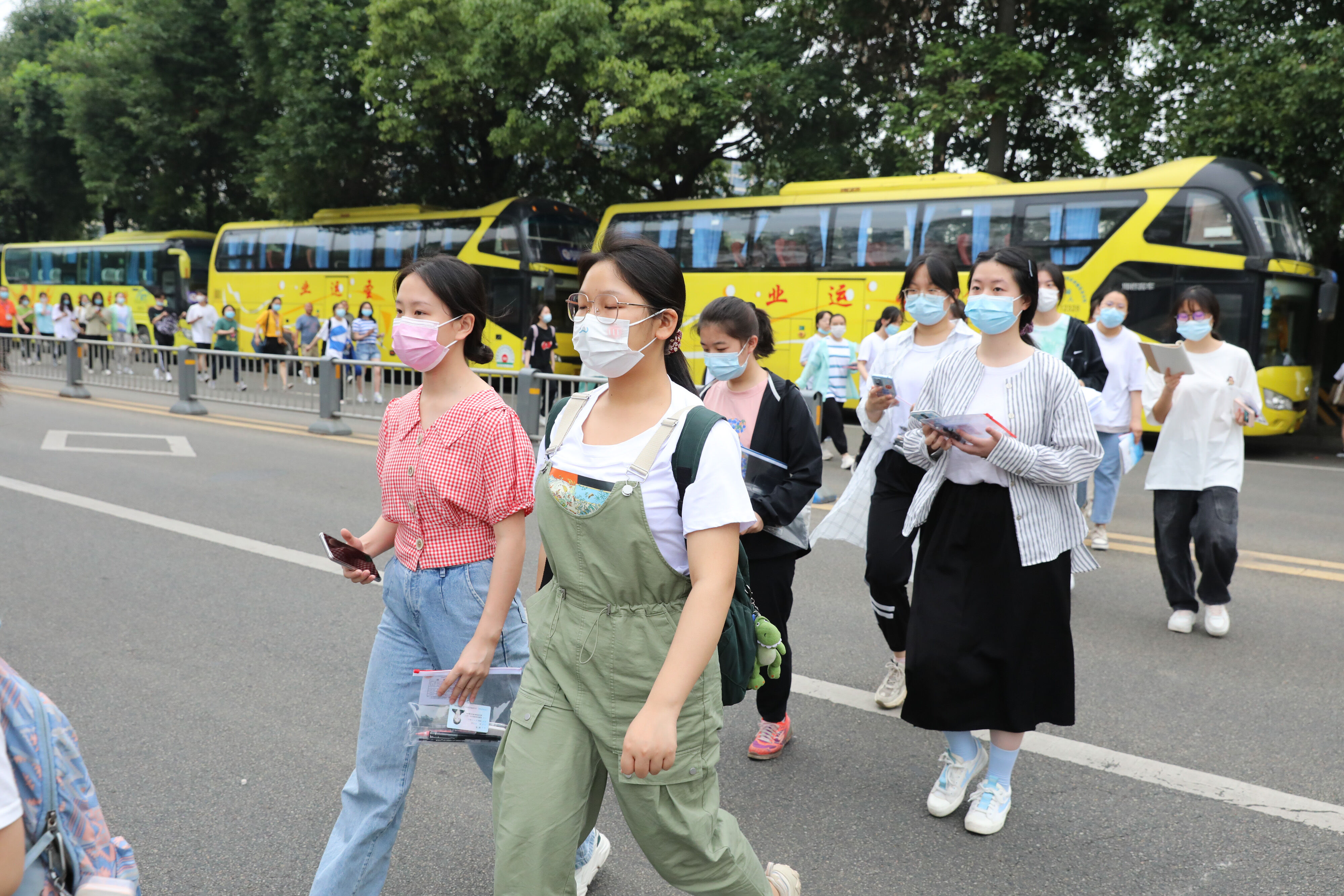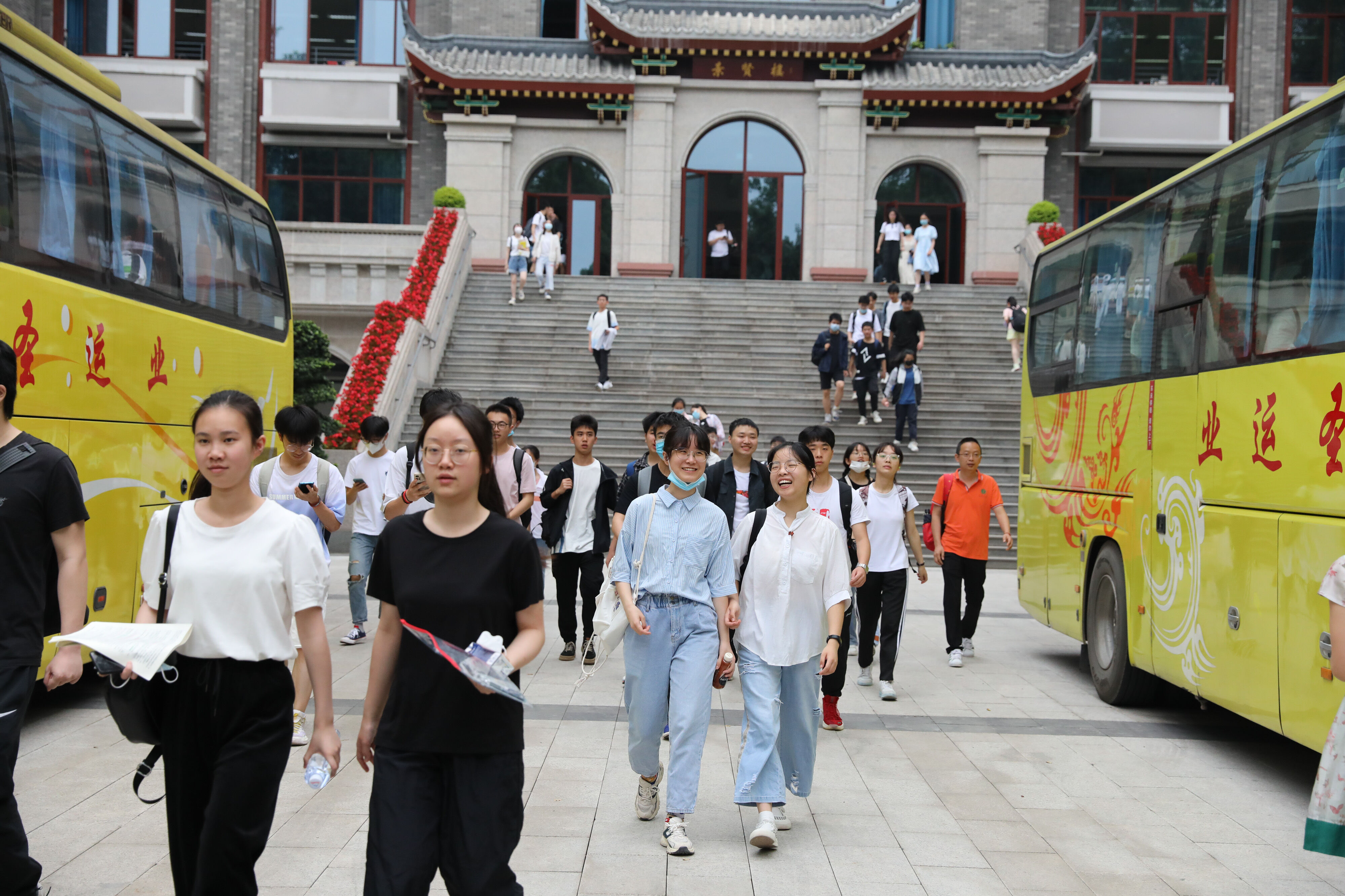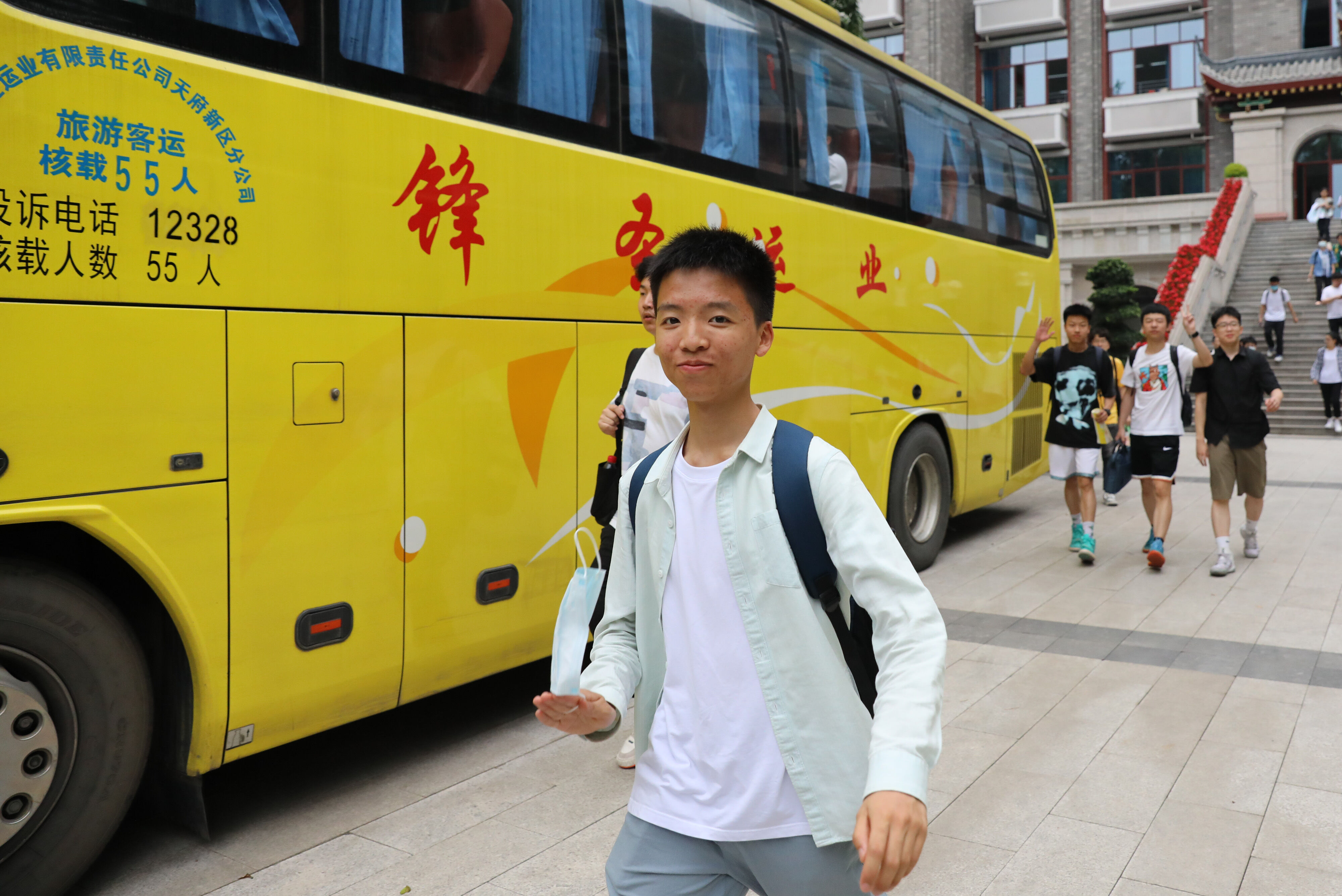 2022年6月8日早上,高三的學(xué)生陸續(xù)走出景賢樓,準(zhǔn)備乘大巴出發(fā),前往考場